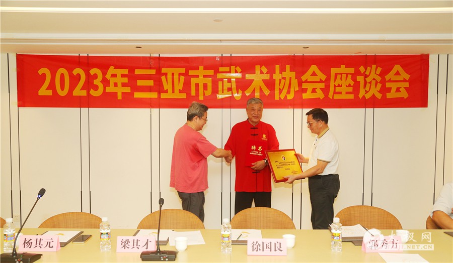 2023年11月16日上午11点,三亚市武术协会工作座谈会暨三亚市武术协会副主席聘任仪式于三亚金凤凰大酒店二楼会议厅成功举行。 出席本次活动的嘉宾有:原三亚市委常委、三亚警备区政委徐国良,三亚市体育总会主席梁其才,三亚市武术协会副主席郭秀方,原中国武术协会副主席、三亚市企业家联合会会长杨其元,三亚市武术协会副主席刘志玉,爱新觉罗生活馆馆长李孟宣,三亚国际文化交流中心主任姜东春,北京大学教授安金龙,原三亚市人大法制办主任任熙德,三亚市武术协会主席司品辉,原三亚市卫健委副主任邹宝仓,三亚市武术协会常务副主席兼秘书长卢帅,爱国拥军爱警委员会副秘书长、三亚市武术协会副主席满强,三亚市工笔画协会名誉主席韩义,著名影视演员张洪杰,三亚市武术协会副主席、三亚市搏击协会主席何俊材。社会各界嘉宾、各辅导站负责人及武术爱好者等。 三亚市武术协会常务副秘书长范翔宇作为主持人主持本次活动。范翔宇首先代表三亚市武术协会感谢各位嘉宾莅临参与此次活动,而后对三亚市武术协会的发展史进行了简单的介绍。 三亚市武术协会主席司品辉致欢迎词,首先对与会人员和来宾表示诚挚欢迎和感谢,并强调了武术在三亚市的重要性和影响力。 三亚市体育总会梁其才主席做了重要讲话,并对三亚市武术协会今后的发展方向提出了宝贵建议。 三亚市武术协会常务副主席兼秘书长卢帅向各位来宾做了三亚市武术协会的工作报告。 徐国良、司品辉主席共同向郭秀方副主席颁发聘任证书,来宾共同见证了三亚市武术协会副主席聘任仪式。 三亚市工笔画协会名誉会长韩义向三亚市武术协会赠画,由卢帅秘书长代表三亚市武术协会接受赠画。 原中国武术协会副主席、三亚市企业家联合会会长杨其元发表重要讲话,为武协今后的发展指明方向。 嘉宾张洪杰、徐国良也发表了讲话,祝贺三亚市武术协会取得的成绩,也祝愿三亚市武术协会再创辉煌。 三亚市武术工作座谈会暨三亚市武术协会副主席聘任仪式活动取得圆满成功,所有与会嘉宾移步一楼中餐厅,欢聚一堂,举杯畅谈。 责编:小田 |