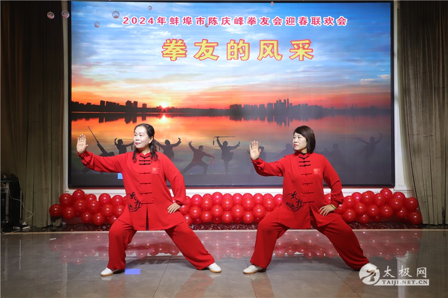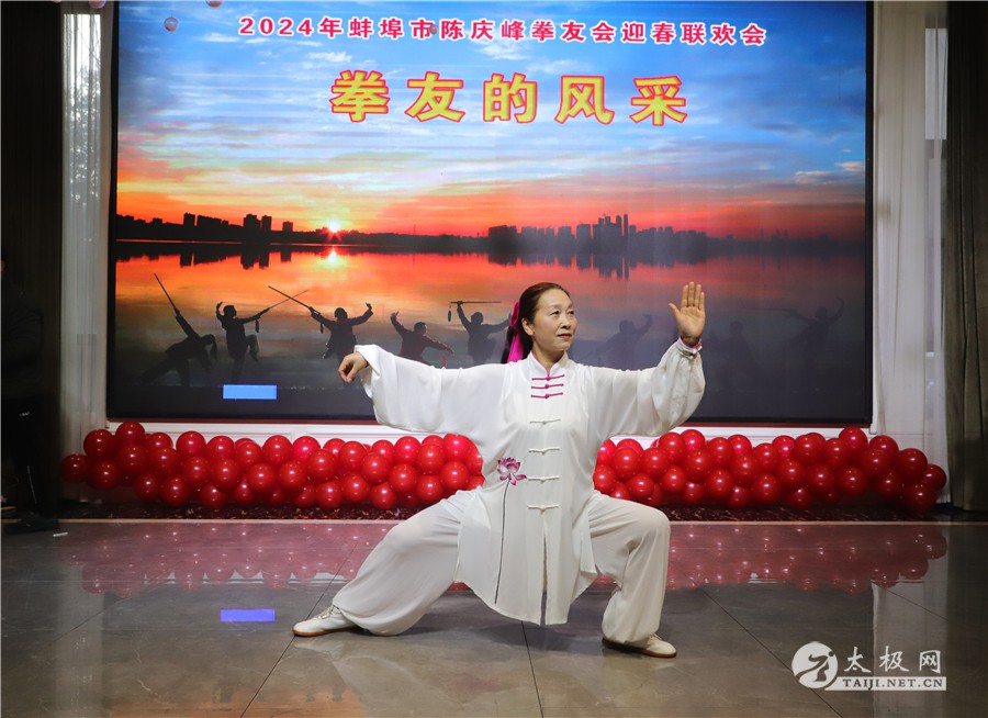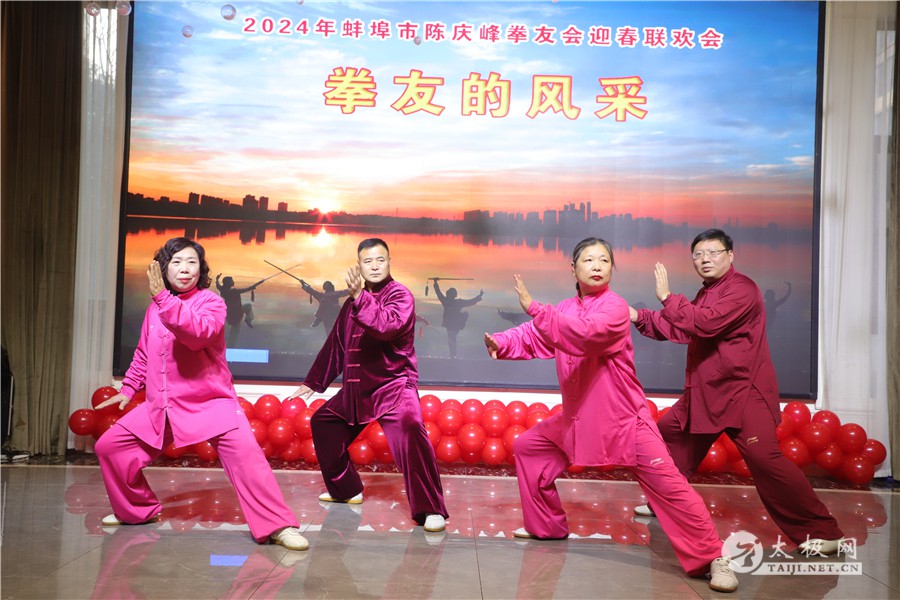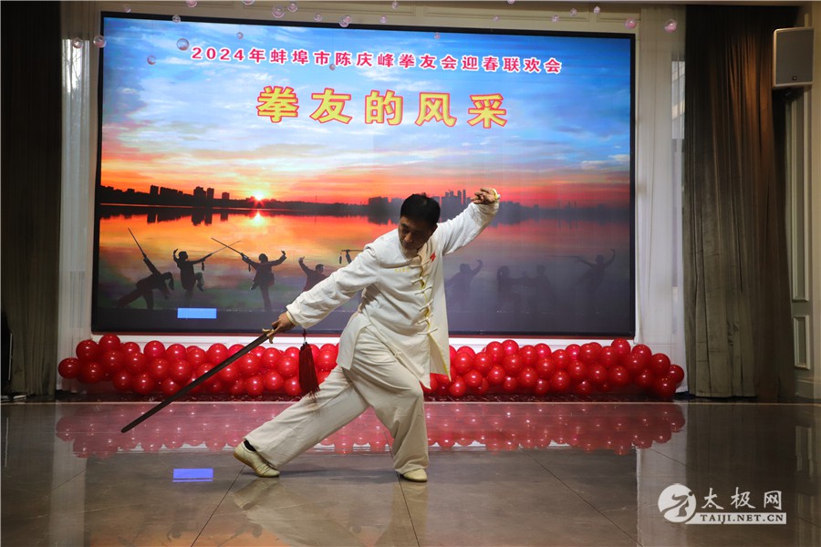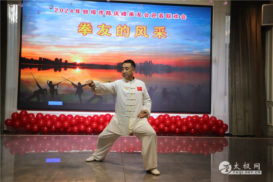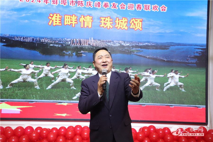 2024年1月1日,元旦佳节,安徽省蚌埠市晴空万里,阳光明媚,空气中弥漫着春天的气息。在这个美好日子里,陈庆峰拳友会在金满楼宴会厅内举行了盛大的迎春联欢年会。 随着一曲激情四溢的《我和我的祖国》舞蹈表演,联欢年会正式拉开序幕。首先由陈庆峰会长发表致辞。他满心喜悦地向全体拳友致以新年的祝福,并感谢各位嘉宾、歌唱家和舞蹈表演家的到来。在过去的一年里,陈庆峰拳友会取得了卓越的成绩,共参加了三次大赛,荣获二十一个壹等奖,还获得了大赛最佳组织奖。其中,一位拳友荣获榜样人物奖,四人获得形象大使奖,二人获得优秀传承奖。在党的生日、教师节和国庆节等重大节日,拳友会都举行了隆重的庆祝仪式,以此歌颂党的光辉历程、赞美祖国的繁荣昌盛,并表彰优秀拳友。2023年,陈庆峰拳友会在健康养生的道路上稳步前行,取得了令人瞩目的成绩。 联欢会的第二篇章是“拳友的风采”,共有十五位拳友登台表演太极拳、太极剑、太极扇和太极球等精彩节目。表演者包括孙克芳、赵元珍、张军、饶彩霞、蒋新明、高莉、陈永庆、孙克梅、史振杰、张茹、王寿先、魏飞鹏、张鎏、朱小弟和陈海英。他们精湛的技艺赢得了在场观众的阵阵掌声。 第三篇章“淮畔情珠城颂”中,陈庆峰拳友会邀请了蚌埠市优秀的歌唱家顾新华、曹文琴、王刚、王智、吴錫震和童丽梅。他们用美妙的歌声为联欢会增添了浓厚的艺术氛围。此外,童丽梅团队的舞蹈《汉韵》、拳友陆培燕的舞蹈《秋韵》以及拳友刘玉兰的诗歌朗诵也令在场观众陶醉其中。 联欢会的第四篇章是“名家表演”,太极拳名家陈庆峰为拳友们献上了精彩的太极拳表演,将整个年会的气氛推向高潮。在欢声笑语中,陈庆峰拳友会的新春联欢年会圆满落下帷幕。
