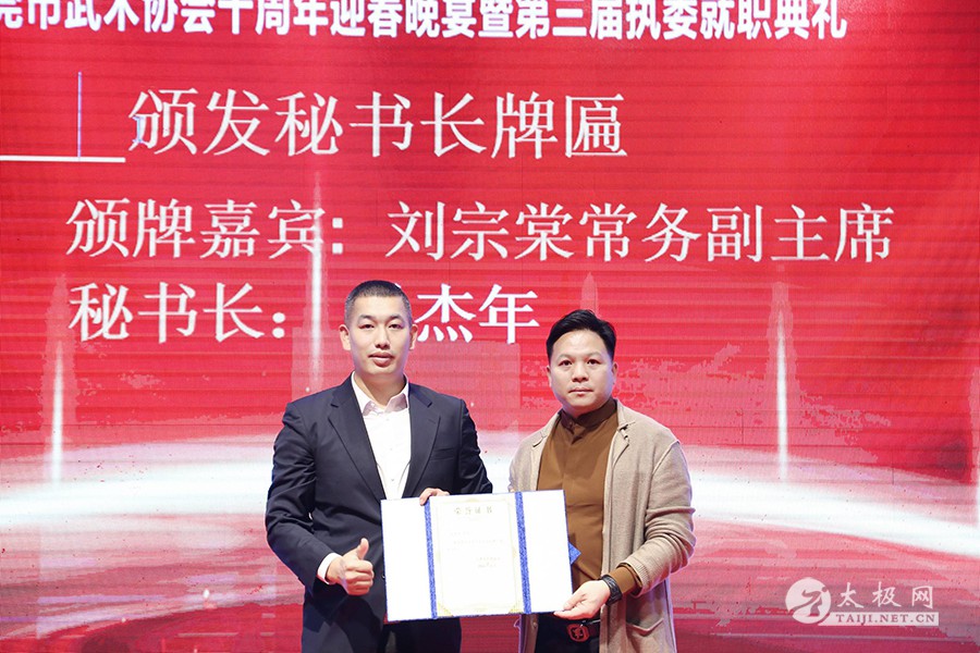 2024年1月15日,东莞市武术协会成立十周年迎春晚宴暨第三届执委就职典礼在康帝酒店成功举行。此次活动吸引了众多嘉宾和武术爱好者的参与,共同见证了这一重要时刻。通过举办迎春晚宴暨第三届执委就职典礼,向过去十年的辛勤付出和成就致敬。 活动在庄严的国歌声中拉开帷幕。出席活动的领队及嘉宾有原东莞市体育局副局长袁子健,中共南城街道非公有制经济和社会组织委员会副书记温秋海,东莞市文化广电旅游体育局群体科科长李敬东,东莞市武术协会创会主席张伟权,东莞市文化馆副馆长何超群,南城街道胜和社区党委副书记苏柏坚,东城体育管理服务中心主任章新宏,东莞市政协委员王庆余,桥头镇文化服务中心副主任莫小琼,佛山武术协会主席梁少宗,广东省武术协会副会长黄标,汕尾武术协会主席黄坤城,惠州武术协会主席黄小洪,香港大中华武术家协会主席黄宝锋,东莞市工商联(总商会)联络部部长李立华,福建商会党支部书记张旭岑,香港著名导演杨健武,原中国拳击国家队、全国青少年拳击锦标赛 51kg 级冠军招甜甜等。 在晚宴上,通过观看一段回顾武术协会十年历程的VCR,与会者共同回顾了协会从创立至今的辉煌成就。随后,创会主席张伟权发表了致辞,对新一届执委表示祝贺,并展望了协会未来的发展方向。 在庄严的印章交接仪式上,张伟权将印章传递给了新任主席梁华国。梁华国首先感谢了各地政府和体育局对协会的大力支持,并对创会主席张伟权十年来对协会的贡献表示了由衷的感谢。他表示将秉承前任主席的优良传统,继续推动协会的发展,并带领全体会员为弘扬中华武术文化贡献力量。 吴杰年作2023年工作总结及2024年展望 东莞市武术协会党支部揭牌仪式 晚会还举行了精彩的武术表演和文艺节目,包括国家级非遗项目莫家拳、双节棍等。表演者们技艺精湛,赢得了现场观众的阵阵掌声。此外,晚会还穿插了激动人心的抽奖环节,为嘉宾们带来了欢笑和惊喜。 在晚会的最后,新任执委们进行了集体亮相,并向所有出席嘉宾表示感谢。整个活动在和谐、欢乐的氛围中落下帷幕。 通过此次盛会,东莞市武术协会不仅回顾了过去十年的辉煌成就,也为未来的发展奠定了坚实基础。在全体执委和会员的共同努力下,协会将继续为传承和弘扬中华武术文化发挥积极作用。 责编:小田 |