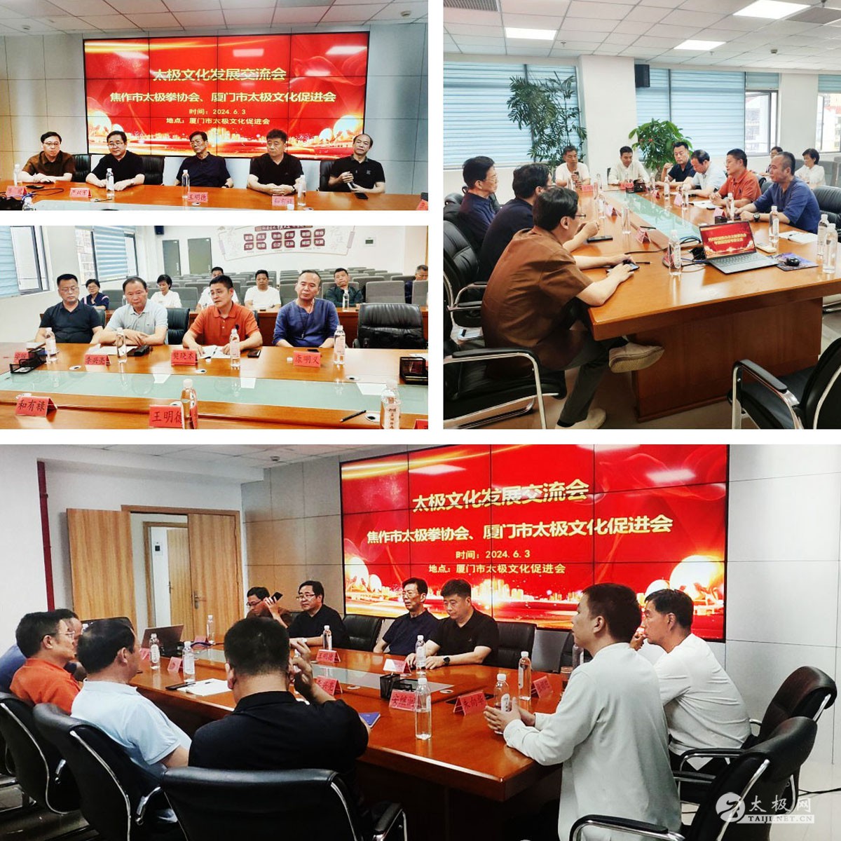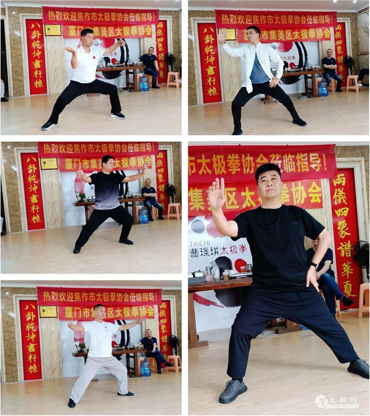 为学习先进,协商合作,共同推进太极拳对台、对侨、对海上丝绸之路沿线国家和地区的宣传推广,2024年5月31日,应厦门市太极文化促进会邀请,焦作市太极拳协会考察团赴厦门进行考察学习。 考察团成员有:焦作市太极拳协会会长王明德、协会技术顾问兼厦门市太极文化促进会高级顾问和有禄、协会副会长张福旺、陈斌、朱向华、著名太极文化学者严双军、协会副秘书长李兴亮及工作人员苏彦芬。 考察团一行走访考察了厦门陈国太太极拳馆、润和太极拳馆、陈会武太极拳馆、曹璟琪太极拳馆、太极禅武堂、张振龙太极拳馆等多家拳馆,看望慰问拳师、学员和太极拳爱好者。在走访活动中,考察团与拳师、学员进行了座谈交流,在观看了拳馆教练、学员的拳技展示后,随团太极名师还进行了拳艺表演,现场气氛热烈,其乐融融,亲如一家。