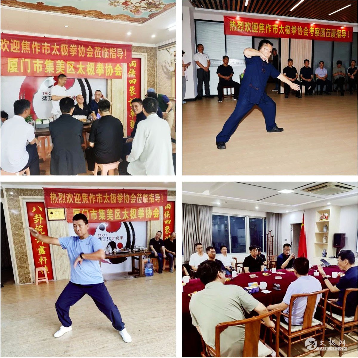 考察学习期间,焦作市太极拳协会与厦门市太极文化促进会进行了广泛深入的座谈交流。厦门市太极文化促进会创始人樊晓本介绍了厦门市太极拳发展的做法和经验,明确了两会合作、协同推动太极文化发展的思路,提出了组织举办海峡两岸太极盛典活动初步方案,并对厦焦两地以太极文化为主题开展文化旅游双向交流提出了许多具有前瞻性和可操作性的意见和设想。王明德会长对厦门市太极文化促进会推动太极拳发展的思路和做法给予高度评价,并对促进会发起人樊晓本为厦焦两地太极拳界的合作付出的努力及取得的成效表示敬佩和谢意。厦门市太极拳馆星罗棋布,习练者众多,氛围浓厚,是太极拳推广的先进地区,是很多台湾同胞的故乡、著名的侨乡,与台湾同胞、海外侨胞有着血浓于水的亲情联系,同时厦门又是海上丝绸之路的起点,对台、对侨、对一带一路沿线国家和地区开展太极拳推广活动有着独特优势和不可替代的作用。焦作作为太极拳发源地,国家级、省、市级和县级太极拳代表性传承人数量众多,具有对外推广太极拳的师资资源优势。焦作市太极拳协会愿与厦门市太极文化促进会建立战略合作关系,积极配合和参与打造海峡两岸太极盛典活动,积极参与和开展太极寻根和太极康养双向交流活动,为实现两地两会优势互补、资源共享、共同推进海峡两岸和对外太极文化交流做出我们应有的努力和贡献。