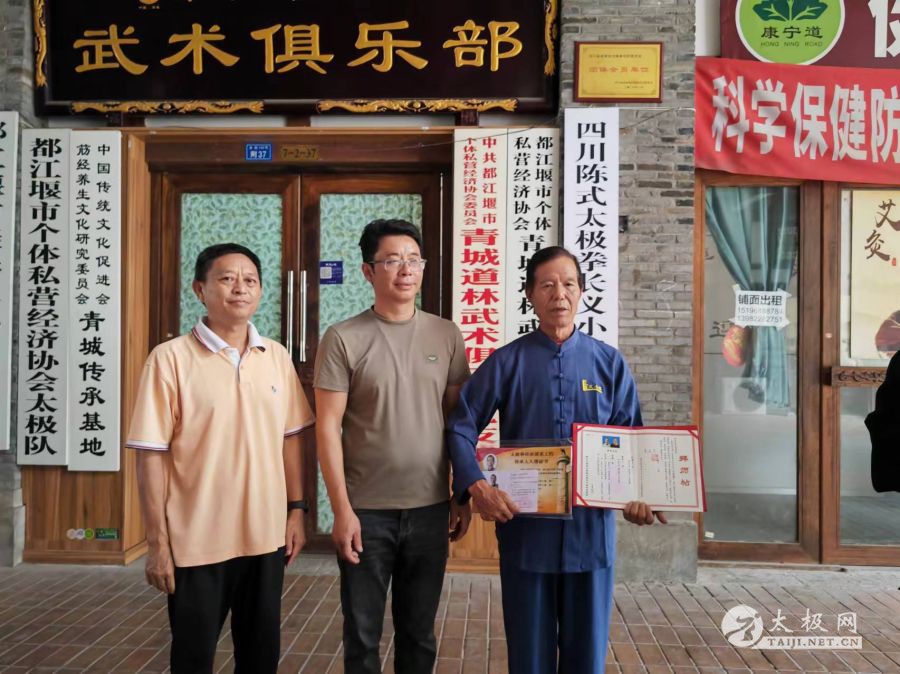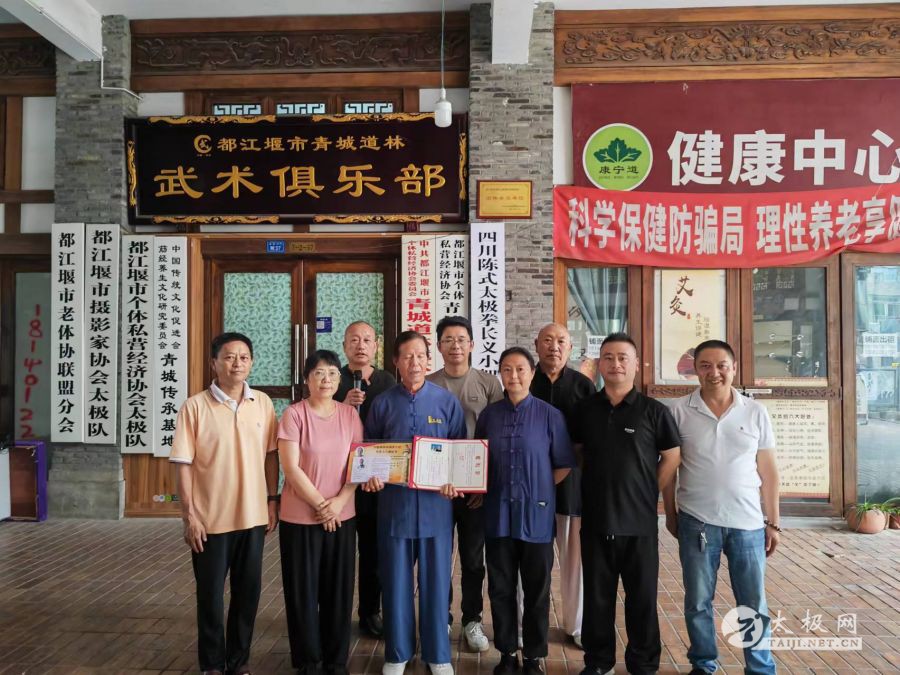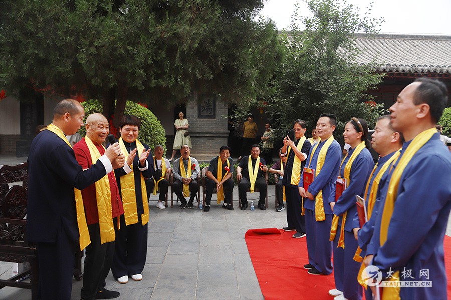 (太极网讯)2024年6月8日,在陈氏太极拳小架代表性传承人、太极拳名家陈长义体系的组织下,来自各地的众多弟子传人齐聚在温县陈家沟太极拳祖祠,举行太极拳祭祖及陈长义大师功德碑揭碑仪式。温县太极拳武术文化发展中心党组书记任海林,陈家沟太极拳学校校长陈小星,太极拳名家陈长流,太极网创始人刘洪奇等共同揭碑。陈克忠亲传弟子陈竹琴,陈长义功夫研究会会长吉国军、常务副会长职同文、秘书长张治国,陈家沟陈氏家族理事会秘书长陈国胜、陈长江、李鹏等嘉宾出席。在陈家沟太极拳祖祠立碑,彰显了太极界对陈长义老师太极拳德艺和成就的高度认可,亦是传承和发扬太极拳的标榜和激励。 陈长流致辞 刘洪奇致辞 职同文致辞 张治国致辞 陈小星与陈长义之女、活动组织者之一陈娜 祭祖仪式上,陈长义老师率众弟子向太极拳始祖陈王廷敬香行礼,追思缅怀。随后,来自北京的许烈、河南武陟李晶、陈家沟陈长江、陈乾坤等四名太极拳爱好者通过传统仪式,正式拜师陈长义老师成为入门弟子。仪式简洁而庄重,有序进行。 在庄严和谐的氛围中,仪式圆满礼成。随后,众弟子于陈长义老师家中欢聚,恭贺陈长义老师七十九岁寿诞庆典。 》》后续报道 弟子任开学因特殊情况未能到陈沟参加拜师仪式,经过师父允许由四川分会会长钟道钢主持,总会副会长吴明成代师父向其颁发传承证!希望入门后能勤学苦练,团结同门,将太极拳小架发扬光大! 颁证仪式由四川分会会长钟道刚主持,四川分会副会长项娅宣读陈娜师姐发的委托书,总会副会长吴明成向长义弟子任开学颁发传承证书,弟子代表李进荣祝贺发言。 责编:张婷 |