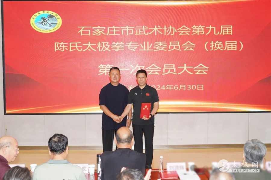 2024年6月30日上午,石家庄市武术协会陈氏太极拳第九届专业委员会会员代表大会在石家庄隆重召开。石家庄市武协主席、石家庄市武术协会陈氏太极拳第八届专业委员会会长杨合发,名誉会长郭彦芬,副会长刘建辉、赵立峰、刘富华、梁计桥、王梦强、孙迎春、杨虎山,顾问牛俊杰、王栓斗、聂新栋、王乃虎、张忠明、武常贵以及传授站和会员单位负责人、常务理事、理事等150余名代表参加了本次会议。本次会议由赵立峰副会长主持。 图1:石家庄市武术协会第九届陈氏太极拳专业委员会名誉会长兼总监杨合发先生(左)与第九届专委会会长刘建辉先生(右)合影 图2:石家庄市武术协会第九届陈氏太极拳专业委员会(换届)第一次会员代表大会现场 会议伊始,全体起立奏唱国歌,彰显了会议的庄严与神圣。随后,第八届专委会杨合发会长作了工作报告,详细回顾了第八届工作的成就与挑战。在过去的五年里,石家庄市武术协会陈氏太极拳专委会在各级领导的关心和支持下,致力于传承和推广传统陈氏太极拳。目前,专委会拥有43个传授站和会员单位,注册会员3600余人。 图3:石家庄市武术协会第八届陈氏太极拳专业委员会杨合发会长做工作总结 石家庄陈氏专委会在第八届班子成员的领导下,重视理论研究和传承创新,尤其是对“马虹传陈氏太极拳”的深度挖掘与整理,提升了其文化实力。此外,专委会还确定了“陈氏太极拳马虹支系”称谓,增强了“马虹传陈氏太极拳”的影响力。同时,申遗工作也取得了显著成果,“马虹传陈氏太极拳”获批为市级非物质文化遗产代表性项目。在推广方面,专委会组织了多场研讨会、讲座和培训班,如马虹先生传承太极拳精神研讨会和“挑战九九”冬季练拳活动,吸引了众多参与者并提高了拳艺水平。在赛事方面,成功举办了多场陈氏太极拳比赛和展示活动,如“马虹杯”陈氏太极拳网络联谊赛和“永昌杯”马虹陈氏太极拳联谊赛,激发了大家对太极拳的热情。展望未来,专委会将在新一届领导班子的带领下将继续坚守“忠诚继承,热诚传播”的理念,深化太极拳的传播与推广工作,为社会大众的健康福祉贡献更多力量。 图4:石家庄市武术协会第八届陈氏太极拳专业委员会赵君慧副秘书长做财务报告 在会议中,赵君慧副秘书长对财务报告进行了详尽的解读,确保透明度和责任性。赵立峰副会长宣读了专委会章程修改意见报告,提出了创新的思路和建议,为专委会的未来发展指明了方向。 图5:石家庄市武术协会第九届陈氏太极拳专业委员会选举环节 在选举环节中,大会严格遵循了公正、公平、公开的原则,确保了选举程序的合法性和有效性。经过举手表决,选举出了新一届的理事会成员及领导班子成员,他们的当选无疑为专委会注入了新的活力和希望。我们相信,在他们的带领下,专委会将迎来一个更加辉煌的未来。 图6:石家庄市武术协会第九届陈氏太极拳专业委员会会长刘建辉先生讲话 选举结束后,新任会长刘建辉先生发表了热情洋溢的讲话。他的声音铿锵有力,充满了对未来的期许与信心。刘建辉会长在发言中,表达了对前辈和同仁的敬意,对上届专委会取得的令人瞩目的成绩给予了高度评价,同时感谢领导和拳友们对他的信任。他提出了未来五年的工作计划,其中包括七个重点方面:加强组织建设,完善决策和工作制度;发挥监事会作用,保证决策的准确性;强化专委会管理能力,提升会员德行和政治素质;促进会员德能兼备,提高太极拳技艺水平;组织竞赛、表演和培训,提升会员拳技;举办研究和交流活动,挖掘陈氏太极拳的文化内涵;推进太极拳的传播,传承和发展马虹拳法精神。 图7:石家庄市武术协会第九届陈氏太极拳专业委员会名誉会长郭彦芬女士讲话 图8:石家庄市武术协会第九届陈氏太极拳专业委员会名誉会长、总监杨合发先生讲话 名誉会长郭彦芬女士,名誉会长兼总监杨合发先生也发表了讲话。两位领导的讲话不仅充满了深情,也对新团队表达了殷切的希望和鼓励。 图9:刘建辉先生当选石家庄市武术协会第九届陈氏太极拳专业委员会会长 图10:刘建辉会长与名誉会长郭彦芬女士合影 图11:刘建辉会长与名誉会长、总监杨合发先生合影 图12:刘建辉会长与顾问委员会主任杜国强先生合影 图13:刘建辉会长与顾问牛俊杰先生合影 图14:刘建辉会长与顾问王栓斗先生合影 图15:刘建辉会长与顾问聂新栋先生合影 图16:刘建辉会长与顾问王乃虎先生合影 图17:刘建辉会长与顾问张忠明先生合影 图18:刘建辉会长与顾问武常贵先生合影 图19:刘建辉会长与顾问刘建新先生合影 会议最后,为新一届理事、常务理事、名誉会长、总监、顾问以及会长、副会长、秘书长、副秘书长等颁发了聘书和证书。新任会长刘建辉先生为各传授站、会员单位颁发了站旗和牌匾。 图20-22:石家庄市武术协会第九届陈氏太极拳专业委员会新一届理事、常务理事、名誉会长、总监、顾问以及会长、副会长、秘书长、副秘书长等颁发聘书和证书 图23-27:石家庄市武术协会第九届陈氏太极拳专业委员会会长刘建辉先生为各传授站颁发站旗 在大会的尾声,全体代表齐聚一堂,通过合影留念的方式,将这一历史性的时刻永久定格。第九届专业委员会的成功换届标志着组织的成熟与专业水平的提升,为未来的发展奠定了坚实的基础。全体代表们将以更加团结的姿态,
