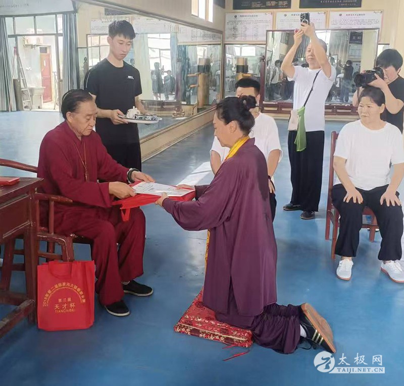 会后太极拳爱好者刘振岳,贺青二人成功拜入朱天才老师门下。仪式遵循传统,简洁庄重,在热烈和谐的氛围中圆满礼成。