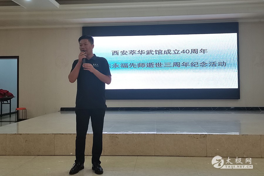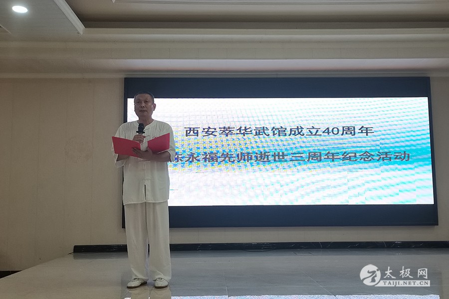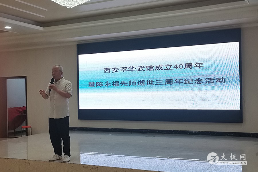 | (太极网讯)2024年8月18日上午,西安萃华武馆成立40周年暨陈永福大师逝世三周年纪念活动,在陈家沟太极拳祖祠成功举办。来自各地的众多嘉宾、亲朋、家属、弟子及太极拳爱好者参与此次活动。 陈立宪先师的子女陈沛林、陈沛菊,以及弟子、学生怀着无比崇敬的心情隆重纪念陈立宪先师诞辰一百周年,共同缅怀先师精神和贡献。 在陈家沟太极拳祖林祭拜了陈立清、陈永福先生,表达了对先辈的敬仰与怀念。 西安萃华武馆的学员和嘉宾在太极拳祖祠进行了陈氏太极拳小架三十六式、十三式、太极剑以及推手汇报表演。 祭拜活动结束后,西安市武术协会副主席、西安陈金鳌太极拳学会会长刘永强在纪念会上致辞,对西安萃华武术馆40年来的发展历程给予了高度评价,并对陈永福先生的贡献表示了深切缅怀。 西安萃华武术馆的总教练樊小勇、副秘书长陈蕊以及馆长樊小丽也分别致辞,他们从不同角度回顾了武馆的过去,展望了未来。 陈蕊深情缅怀父亲陈永福先生,表达了对父亲无尽的思念与敬仰。