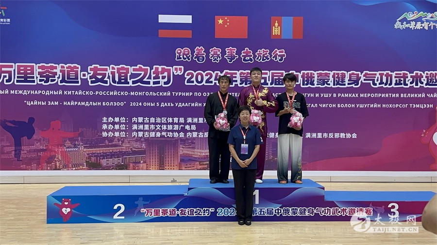 在万众瞩目与热切期盼中,2024年第五届中俄蒙健身气功武术邀请赛画上了圆满的句号。这场跨越国界的体育盛事,不仅见证了中俄蒙三国文化的深度交融,更以武会友,搭建了友谊的桥梁。赛场上,来自三国的武林高手们齐聚一堂,剑影交错,拳风呼啸,每一场对决都充满了紧张与刺激,展现出武术运动的独特魅力与非凡风采。 韩建民老师获得传统太极拳一等奖 韩建民学生张骋运太极剑获得一等奖 河南省韩建民代表队获得“体育道德风尚奖” 在这片高手云集的竞技场上,河南代表队的韩建民老师以超凡脱俗的表现,成为了众人瞩目的焦点。他如同一颗璀璨的明星,在太极气功的领域中熠熠生辉。韩建民的技艺卓越非凡,每一个动作都舒展自然,如同行云流水般流畅无阻;他的气息沉稳绵长,犹如江河之水滔滔不绝,尽显太极之精髓。在他的演绎下,太极不仅仅是一种武术技艺,更成为了一种艺术享受,让人为之倾倒。 韩建民老师代表中国队太极拳展演