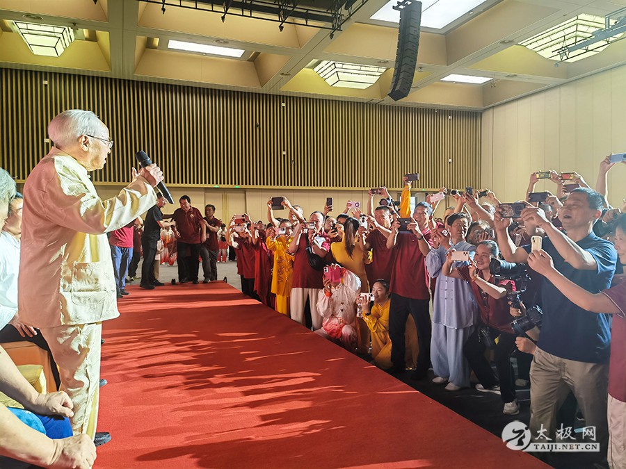 陈全忠大师是太极拳领域的杰出代表,年高德勋,太极长春。其一生致力于太极拳的传承、推广和普及,培养了一大批优秀的太极拳传承人,为太极拳文化传播走向世界作出了卓越贡献。百岁华诞庆典不仅是对陈老个人成就的颂扬,更是对太极文化生生不息、代代相传的美好见证。 活动现场,拳风阵阵,剑影翩翩,太极拳法、器械表演轮番上阵,不仅展现了太极拳的博大精深与独特魅力,更深刻体现了陈全忠大师一生致力于太极文化传承与发展的卓越成就,弟子传人们以武会友,以拳传情,共同庆祝这一意义非凡的时刻。