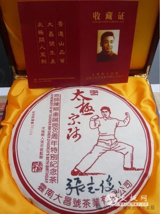 恩师爱茶 拳茶一味 跟随张志俊老师学拳路上 但凡跟随张志俊老师学拳的弟子和学生们都知道,老师爱茶,犹如爱拳,拳茶一味,理如一贯。 茶,无论是贤达、高雅之士,还是达官、民众之间,均有爱茶之说。我对茶的偏爱,无怪乎有“师父好茶,涉及徒孙”之感。以前沏茶,只为解渴或招待客人,总感觉有茶,无论好坏,比白开水好喝而已,从来没想过茶有好坏之分。现在每遇闲情之人或遇闲暇之时,谈茶就是情趣,品茶就是快乐,斗茶就是激情! 何谓茶,茶乃天地间之灵物,生于明山秀水之间,与青山为伴,以明月、清风、云雾为侣,得天地之精华,享光照之雨露。茶道属于东方文化,早在我国唐代就有了“茶道”。但是,历代茶人都没有给他下过一个准确的定义。老子说:“道可道,非常道;名可名,非常名”。同时,佛家也认为:“道由心悟”。如果一定要给茶道下一个定义,那么,所谓茶道,无外乎术。道是本,术是表;术源于道。术有技术与艺术之别,技术境界以“游刃有余”为至,艺术境界以“天人合一”为上。裨益身心,是茶之益生之道;颐养心神,则是“茶道情趣”之法。庄子云:“得鱼忘筌,得义忘言”。古人以得茶道而忘茶香,故以文载道,使茶道于字里行间之中彰显“物物而不物于物,明乎物物者而不非物,是谓至贵之治。在太极拳里,特别是在张志俊老师的太极拳理上,我们称之为“拳茶一味”。这与佛家讲的“禅茶一味”同出一辙! 老师爱茶,行同爱拳,所谓“拳茶一味”还得从2006年说起。张老师的师父是陈式太极拳第十代掌门人陈兆奎宗师。兆奎宗师于1981年5月7日因病仙逝,享年53岁。2008年是陈兆奎宗师诞辰80周年之际,张志俊老师想在同门弟子中为陈兆奎先师特制发行一套纪念茶饼,以此在太极拳界来缅怀陈兆奎宗师对中国太极拳的发展所做出的伟大贡献。此茶饼发行后,被太极拳界誉为“太极宗师第一饼”。 张志俊老师有此想法后就与有关人员联系,有些很顺利,当然也有没结果的事。张老师便独自下云南普洱市采茶,定制太极纪念茶饼。在当地普洱茶专家的引导下,选择了很多普洱茶做比较,并对普洱茶的出处、茶的质量等一一品尝。张志俊老师说:“我第一次喝云南普洱茶是在1984年,之前,喝茶有些年头了,但是没接触过云南普洱茶。当第一眼看到泡开的普洱茶汤,觉得色泽红艳明亮,非常好看”,没想到品不出真滋味,和不懂云南普洱茶的人一样就觉得是糟木头的味道,哪来什么沉香、荷香、兰香?”喝了也没啥感觉”。后来,张老师花了一年多的时间了解云南普洱茶,渐渐品出了味道和层次,随着时间推移,居然对云南普洱茶的感情越来越深。这次再来到云南古茶山,老师最大的感悟就是品茶与练拳都有相通之处,相通之处就是大凡任何人做任何事都要用心,品茶和练拳也一样要用心”。 普洱茶是“可以喝的古董”,一直以来就被茶界誉为“茶中人参,茶中虫草”的美誉。其越陈越香的独特品质是爱茶者所公认的,普洱茶经过一定时间的存放后,由于茶多酚氧化,酯性茶素减少,可溶性糖增多,苦涩味消除,甘甜味增加,呈现出特殊的陈香。可饮,可藏是普洱茶的双重特点。“价比黄金贵”是时间换来的效益,普洱茶不仅是光阴对细节的耐心塑造,而且更是一种在时光流逝中的静默。它在自然空气中呼吸,在空气中发酵,存放越久茶香越醇。随着时间的延伸,品质愈佳,口感愈好,价值愈高。而2004年—2010年正是云南普洱茶成本价格最高的几年;基本好一些的普洱茶价格太高,价格便宜一些的普洱茶又配不上“太极宗师第一饼”的美誉。张老师为感念师恩,他不遗余力,在云南普洱茶市,通过多种茶园渠道,亲自挑选极具收藏价值的云南景迈山千年古乔木茶叶,找到当地最有名的制茶大师亲自发酵,利用传统制茶工艺,铁锅杀青,选料上都是百年早春顶级的标准,石磨手工压制,内外一口料,决无拼配,松紧度适中,饼面色泽红润,金毫突显,牙尖粗壮,饼形圆润,口感醇厚,唇齿留香,绝对彰显百年古茶树的典范之作。 由于这批茶料是云南大昌号茶业有限公司老板2004年春采摘的,也是为自己备留自存自用的1000公斤早春茶料,恰好一饼一公斤,共可压制1000套纪念茶饼。这是张志俊老师给我们各地的弟子和学生们留下的纪念茶饼,同时也是一份宝贵的精神财富。为了尝其鲜,品其味,看其色,闻其茶香;经老师同意,我们自开一饼,以品其韵。太极宗师饼绝版仅剩999饼,而且在这太极饼茶的包装上,采取了有内胆、内心、内袋及收藏证书编号的四个编号相对照,从0001号到0999号,一个不多不少,每个都是唯一。同时又配备了精致的木盒,木盒外又有个皮提袋包装,古朴典雅,精致非凡,这是真正的绝版佳茗。 此茶无论从茶品的质量上(云南景迈山百年古乔木茶叶),还是从师生的情怀上(为纪念陈兆奎宗师诞辰80周年特制纪念茶饼),还是从历史文化的韵味上(天下太极宗师第一饼)都会留下极高而又深远的现实意义。只因在这个“太极宗师茶饼”的收藏证书上,印有一张陈照奎先师的生前照片;而就是因为这张陈兆奎先师生前赠予的照片(照片背面有陈兆奎老师亲笔签字),谁曾料到竟引发了一场震惊中外的“两位陈式太极拳大师级人物因太极茶饼上印刷的照片而对簿公堂。此官司互联网上刊发的比比皆是,中央电视台法制频道,山东卫视、浙江卫视、北京卫视、河南卫视等,一等一的新闻媒体相继报道。一时间“武林界