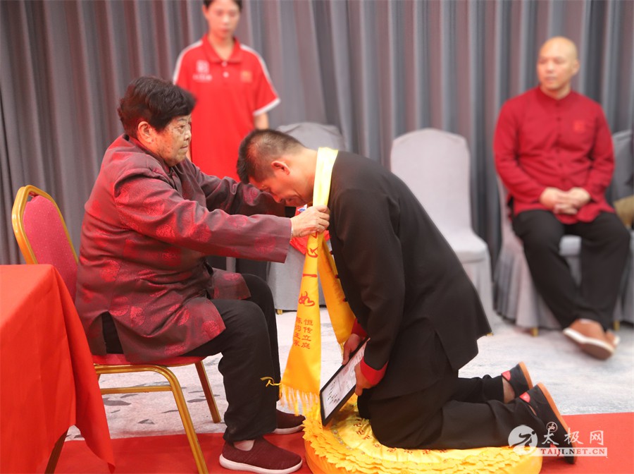 (太极网讯)2024年9月14日,太极拳名家、陈式太极拳第十一代传人、王西安大师夫人陈新意老师收徒仪式在温县举行。太极拳爱好者武京文通过传统仪式拜师,正式成为陈式太极拳第十二代传承人。 陈氏太极拳省级代表性传承人、河南省太极拳协会副会长王战军,王西安大师长孙、陈家沟武医堂堂主王祺斌,河南省太极拳协会副会长王天运,焦作市太极集团董事长王战平,保和堂堂主李旭,温县作家协会副秘书长武国财,太极网创始人刘洪奇等嘉宾以及王西安弟子李利清、陈大虎、原东升、宗建贵、金三、武国有、王书平、王希福等出席活动,收徒仪式王东红主持。 仪式遵循传统,简洁庄重。陈新意老师向历代太极拳先贤敬香祭酒,追忆先辈创拳之恩德,感念先贤传拳之辛劳。新入门弟子上前递交拜师帖、行拜师礼,师父为其颁发回帖,传承人绶带。随后师父陈新意对新弟子训诫,她激励新弟子刻苦钻研、精进武艺,同时,她也表达了对新弟子的期望和祝福。在众人的见证下,拜师仪式圆满礼成。 责编:小田 |
