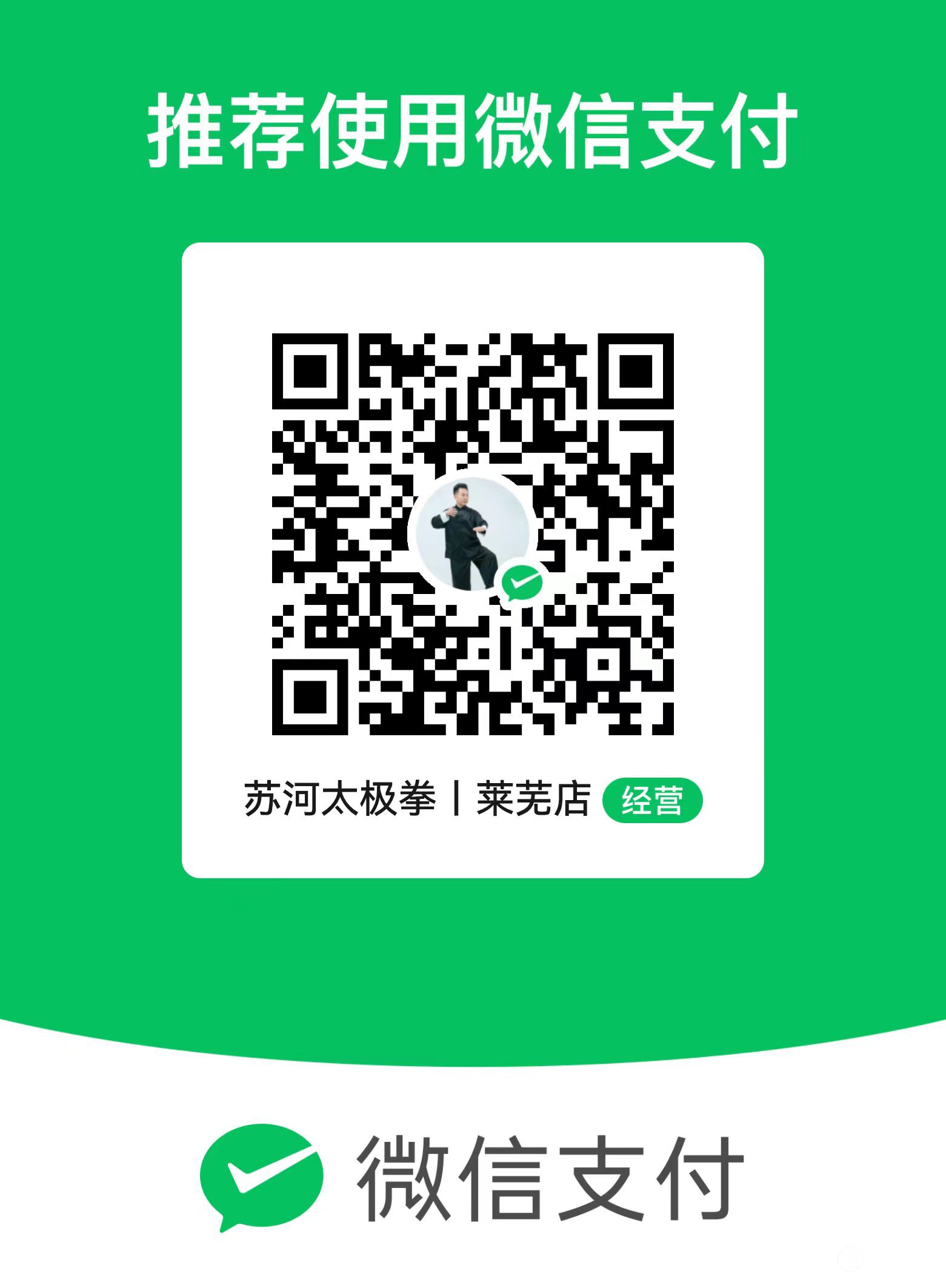 ![]() 八、培训费用及其它费用 (一)培训费用 1. 社会学员2000元/人;如果提前8天报名,可以享受优惠交费1800元/人; 2. 西安永年杨氏太极拳学会莱芜分会的会员及苏河杨氏太极拳传承培训中心所有参加苏河老师课的学员,参加过苏河老师公益课拳友可享受优惠价格1380元; 3. 苏河老师的弟子,学员终身卡,必须到报到组报名统计,不报名不能参加培训(谢绝空降)。 4. 培训费用包含课时费、结业证书费、学杂费、服务费。 (二)报到住宿事宜 报到酒店:全季酒店0531--7699888. 佳驿酒店济南莱芜鹏泉东大街裕丰家园店0531-76339666 吃住自理,培训这次不统一安排。 九、报名 (一)报名时间:从即日起开始报名至9月23日上午8:00(谢绝空降) (二)报名咨询:苏河老师13863426444 刘老师15163425464 十、报名缴费 |
