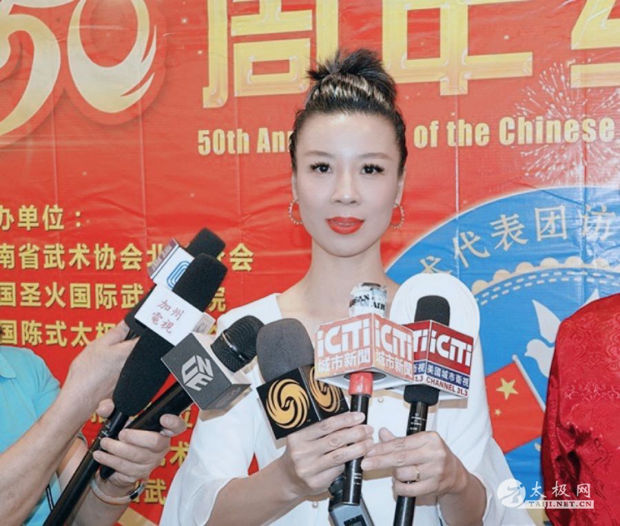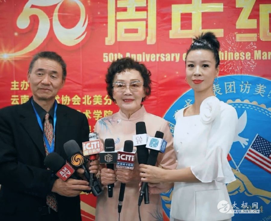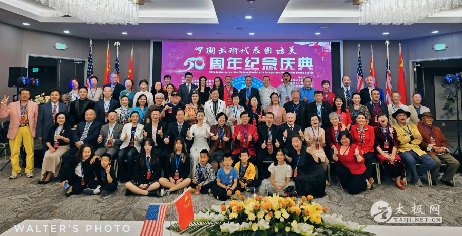 特邀上海武术院教练、武术国家级裁判、高级教练、中国武术八段、当年访美运动员郭佩女士到现场与大家分享了宝贵的回忆。 大会组委会特邀顾问张宝平,組委会委员王秀娥、张冶苓、林娜、杨陈雪源、Robin ding、琴格格、paul.郑、Anna、索秀华、杨文华、李跃云、Shen zhang.义工组长孙伟先生、黄艾女士及Andy、Alan Sheng ,queenie yang等全体义工,各社团翘楚,在花好月圆的日子里齐聚洛杉矶,共同见证这具有里程碑意义的历史时刻。大会还收到了美国加州财务长马世云的祝贺及为主办负责人颁发的奖状,同时蒙特利尔公园市市长Thomas wang、加州议员方树强等民选官员也给大会发来祝贺,中国武术协会、美国武术联合会吴廷贵主席、北京中国武术代表团访美50周年纪念庆典委员会、当年访美代表团副团长张山、中国云南省武术协会胡宝林主席、黄鑫秘书长、山东省女企业家商会及其它中国內地和香港、澳门武术团体和个人也纷纷发来贺函和视频祝贺,两国四地,八方同庆。  大会副主席、大会总策划杨际洲