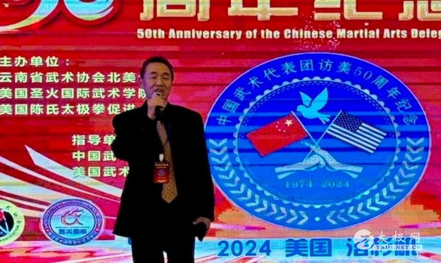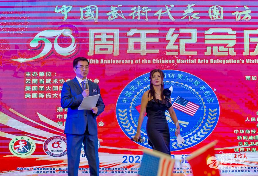 (钱承飞 报道)9月17日中秋佳节,欢聚团圆之日,中国武术代表团访美50周年纪念庆典洛杉矶大会在美国加州安大略万豪酒店隆重举行。当代十大武术名师、陈氏太极拳传承人陈正雷先生担任本次大会主席。本次洛杉矶大会发起人杨际洲先生担任副主席和总策划,盛丽娜担任副主席、总导演。中国武术代表团访美50周年纪念庆典洛杉矶大会是由云南武术协会北美分会、美国圣火国际武术学院、美国陈氏太极拳促进会联合主办,并由中国武术协会和北京《中国武术代表团访美50周年纪念庆典》组委会指导,美国武术联合会、原美国洛杉矶郡郡长安东尼诺维奇先生Michael Antonovich、美国洛杉矶侨领、美国华人社团联合会荣誉主席张素久女士,当年访美领队副团长张山先生,北京庆典组委会秘书长周亮先生,当年访美运动员郭佩女士,美国武术联合会副主席李书东先生,成家班、好莱坞工会武术指导、美国演員⼯会、导演⼯会、奧斯卡委员会委员ANDY CHENG郑继宗先生,国际武术冠军、好莱坞著名动作演员、武术指导、参与拍摄多部好莱坞电影并2023年获7项奥斯卡大奖的电影《瞬息全宇宙》中饰演杨紫琼师傅的李静女士、共同支持的中美武术文化交流盛会。庆典现场吸引了中美武术界和文化界、当地政界要员及社区领袖近300余名嘉宾悉数到场。云南省商务厅驻美国代表处主任陈旻靖、协办单位南加州华人联合总会理事长、大会副主席杨逸凡女士,协办单位美国华人社团联合会执行主席林连连女士,协办单位北美高校联合会主席、大会副主席陈峥女士,世界太极学院(香港)林文辉主席代表杨文华女士等嘉宾代表上主席台发言祝贺。支持本次庆典活动并親临会场的嘉宾还有洛杉矶华人体育家协位理事长高胜,世界体操冠军李小燕,洛杉矶台山体育协会会长垄灿尧、李忆非,国际摄影家协会荣誉会长王俭美、前会长毛幼荣、现任会长赵国庆、南加州云南同乡会会长许瑞、南加卅云南大学校友会会长张振刚以及银行家林日升先生、北奥会长、曹琳会长、蔡德贵教授、华蓝星教授、鲁安博士等。 洛杉矶武术名家及各门派掌门人胡耀武 、徐晓达、雷倩美、曹剑秋、郭熙辰 、张涛 、孙安军、周力等武林人士到场祝贺。  大会主席:陈正雷