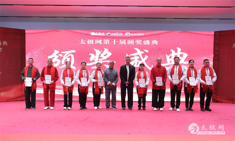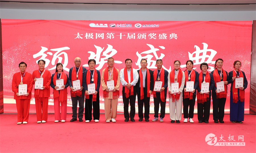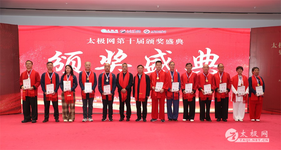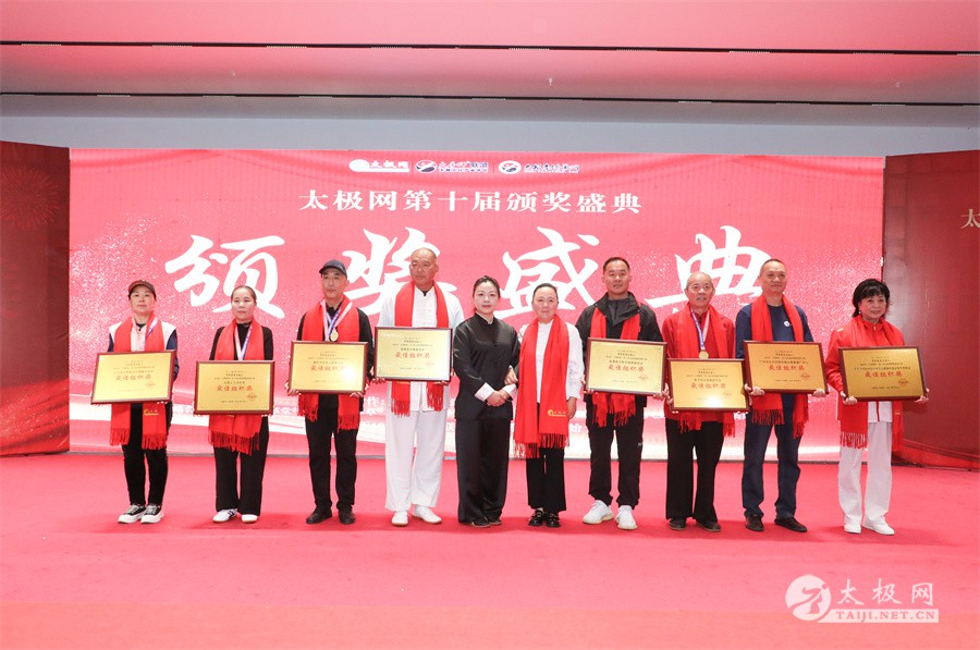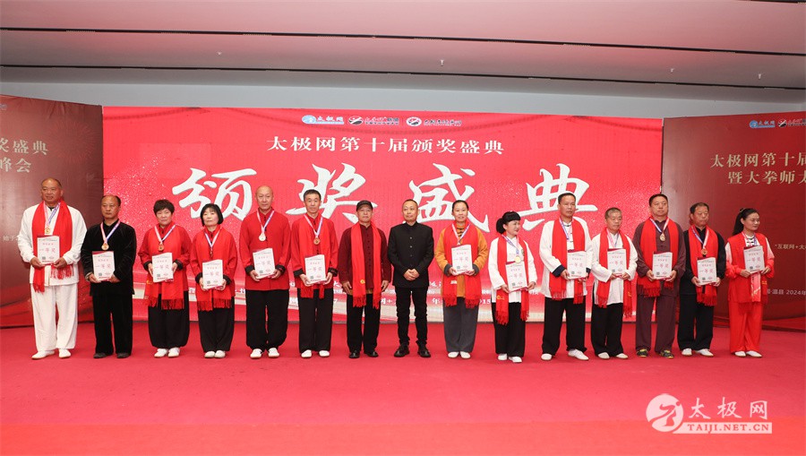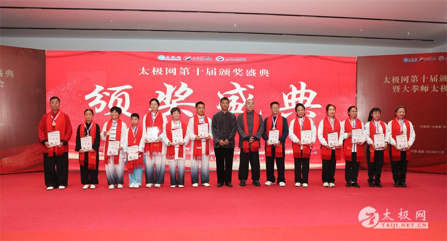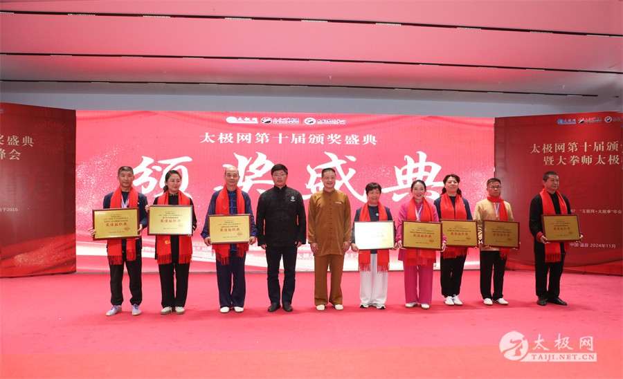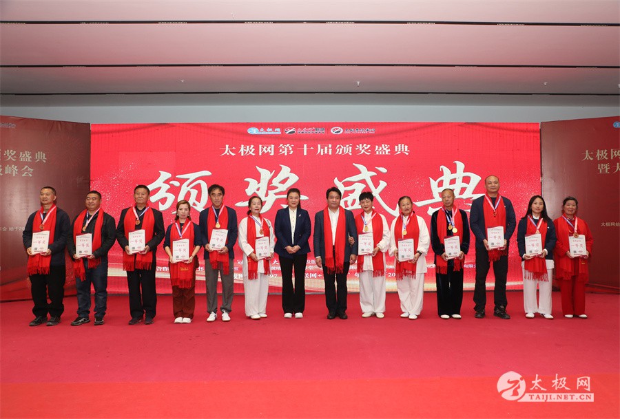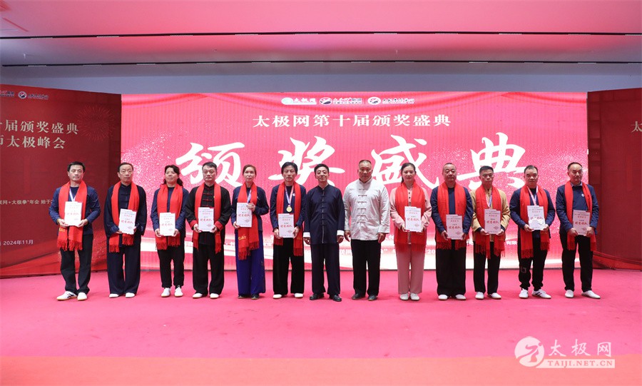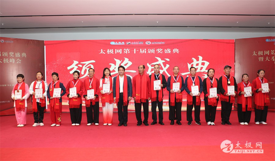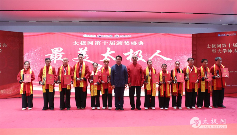 温县政协原主席郑爱珍,焦作市文化馆馆长、焦作市非物质文化遗产保护中心主任胡红兵,温县太极拳武术文化发展中心党组书记、县体育运动发展中心党支部书记任海林,温县太极拳武术文化发展中心主任王敏等领导嘉宾出席颁奖仪式。 河南大学武术学院院长洪浩,中国医学气功学会中医导引专委会主任吴金鹏,北京市武术运动协会主席杜德平,焦作市武术协会主席张治远等武术大咖及嘉宾出席活动。 赵幼斌、李树发、范德治、宋斌、赵现平、解礼德、陈西立、张勇刚、职永成、翟文胜、王仲文、苏河、周毕文、常子轩、陈庆峰、梁翠平、陈彦胜、张辉、张明、刘辉、杨阁明、杨成英、褚亚龙、史成和、王运宜、董丰电、吴永萍、罗永平、李保明、柯鸿信、陈金生、陈献忠、刘太多、崔法强、张永明、叶建国、何登田、葛红、史大华、蔡燕青、沈印年、郭钦星、刘火财、陈晖、台爱民、王华照、杨锦富、方帮助、孟现友、聂志刚、萧劲松等各流派名师名家及优秀传承人受邀从外地赶来共襄盛会。 陈氏太极拳国家级代表性传承人朱天才,和氏太极拳国家级代表性传承人和有禄,陈照森、张福旺、陈冲、陈桂珍、陈有则、陈有刚、陈有华、陈志强、陈大虎、陈二虎、陈三虎、陈朝霞、郑彩霞、段卫星、王国营、陈绍杰、陈志伟、翟全平、陈天森、晁前进、陈建强、张波、张世庆、李文权、陈小水、陈小芹、党绍静、陈娜、邓梦晓等温县籍名师名家及优秀传人到场助阵,向获奖选手颁奖、进行名家表演等。 太极网创始人刘洪奇,太极网总编、太极拳网络视频大赛组委会执行主任李超携太极汇酒业董事长周建军,多福源总经理史长流,五本草黄精茶公司总经理罗强,百养堂生物科技销售总经理石辰峰等合作方代表出席盛会。 太极网总编、大赛组委会执行主任李超向各位嘉宾的到来表示热烈欢迎,对获奖选手及团队表示诚挚祝贺,对支持大赛的各位名家及专家评委表示衷心感谢。李超用“缘分、初心、传承”三个词来分享和回顾了太极拳网络视频大赛的十年之路。他说,太极为媒,以网会友,很多拳友因太极网、太极网赛结缘太极,很多太极人也因此结下缘分,这些缘分太极网倍感珍惜。坚守初心,太极之路才会走的更长远,更踏实,太极网的初心就是要做好“太极拳的宣传员”,做好“太极人之家”。坚守太极拳传播推广这一事业传承近30载,太极网赛传承亦十载,愿与广大太极人携手,一起寻找、发现、创造更多太极之美。 温县太极拳武术中心主任王敏在致辞中向五湖四海太极人的到来表示欢迎,对太极网及太极拳网络视频大赛所取得的成绩给予了高度评价和充分肯定,大赛的成功举办不仅进一步扩大了太极拳的影响力,也为太极拳的传承与发展注入了新的活力与动力。 洪浩代表河南大学武术学院对本次大赛获奖选手及团队表示了热烈的祝贺,对太极网及太极拳网络视频大赛表示了高度赞赏。寄望太极网及大赛能够持续发挥其平台作用,为太极拳传播推广做出更多、更大的贡献。 颁奖环节在热烈和谐的氛围中紧张而有序地展开,本届大赛部分获奖选手、团队代表们精神饱满,怀着激动而兴奋的心情登台领奖,颁奖嘉宾为获奖者颁发了奖牌、奖杯及获奖证书等,并合影留念。 大赛荣誉桂冠大奖2024年度“最美太极人”“最美太极团队”命名表彰仪式上,获奖选手们身着“最美太极人”服装,意气风发登台领奖,鲜红的荣誉证书、闪亮的水晶杯奖杯、金灿灿的绶带,庄重而热烈的仪式感无限拉满。 为表彰和鼓励大赛中涌现出的太极拳杰出人物和团队,组委会颁发“最佳组织奖”“优秀领队奖”“太极新秀”“太极新星”“传播大使”“榜样人物”“十拳十美”等特别大奖。 朱天才名家表演 和有禄名家表演 洪浩名家表演 赵幼斌、陈照森名家表演 张福旺、范德治名家表演 陈志伟、张波、褚亚龙名家表演 陈小芹、党绍静、常明月、邓梦晓名家表演 陈三虎、段卫星、王国营、王运宜名家表演 常子轩、张勇刚、陈绍杰、张世庆名家表演 梁翠平、吴永萍、陈娜、葛红名家表演 陈大虎、陈西立、宋斌名家表演 陈冲、陈志强、陈二虎、陈有华名家表演 陈有刚、赵现平、解礼德名家表演 陈桂珍、陈朝霞、郑彩霞名家表演 职永成、翟文胜、王仲文名家表演 陈彦胜、刘辉、杨阁明、李保明名家表演 陈庆峰、董丰电、崔法强、苏河名家表演 陈天森、张明、晁前进、李文权名家表演 蔡燕青、沈印年、郭钦星、王华照名家表演 柯鸿信、陈金生、台爱民名家表演 陈晖、何登田、聂志刚、朱誉名家表演 各流派太极拳名师名家展演 颁奖盛典现场大咖云集、星光闪耀。来自全国各地的太极拳名家及优秀传承人轮番登台献上了精彩绝伦的表演,天下太极是一家的和谐画面在此生动彰显,一场视觉盛宴散发出太极拳的无限魅力。 大赛主办方太极网创立于1997年,专注太极文化网络传播和武术产业运营近30载,平台粉丝近千万。多年来,组织举办大型武术文旅赛事活动数十起、武术网络赛事百余起,累计参与人数达30万。 太极网自2015年首创“寻找最美太极人——太极拳网络视频大赛”,连续十届的“互联网+太极拳”赛事活动吸引了数以万计的太极人参与,2024年第十届大赛线上参赛选手4000余人。 颁奖盛典是该赛事的线下颁奖表彰活动,也是各流派太极人交流