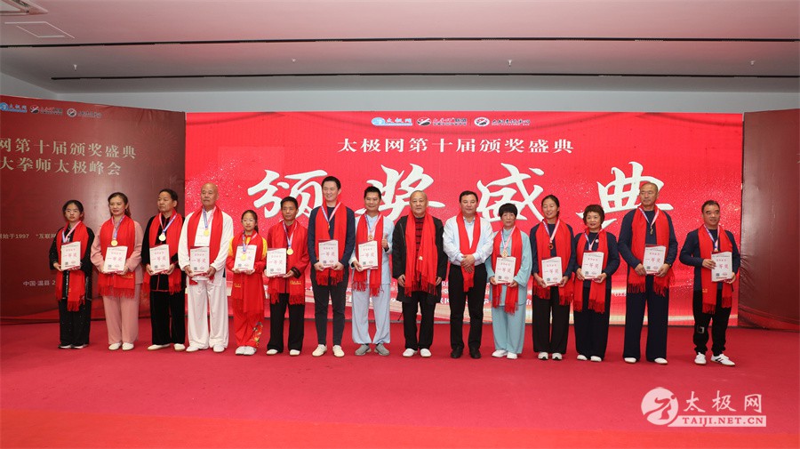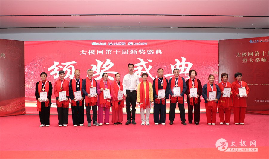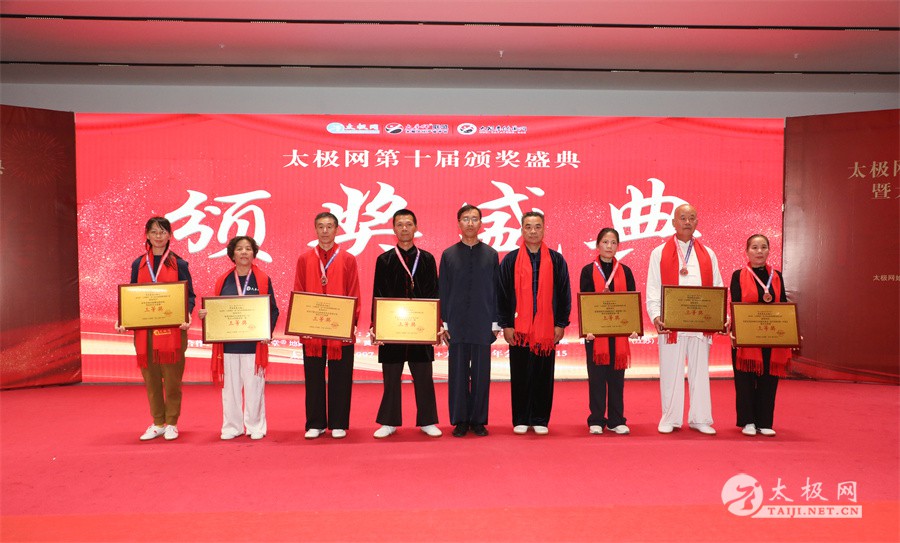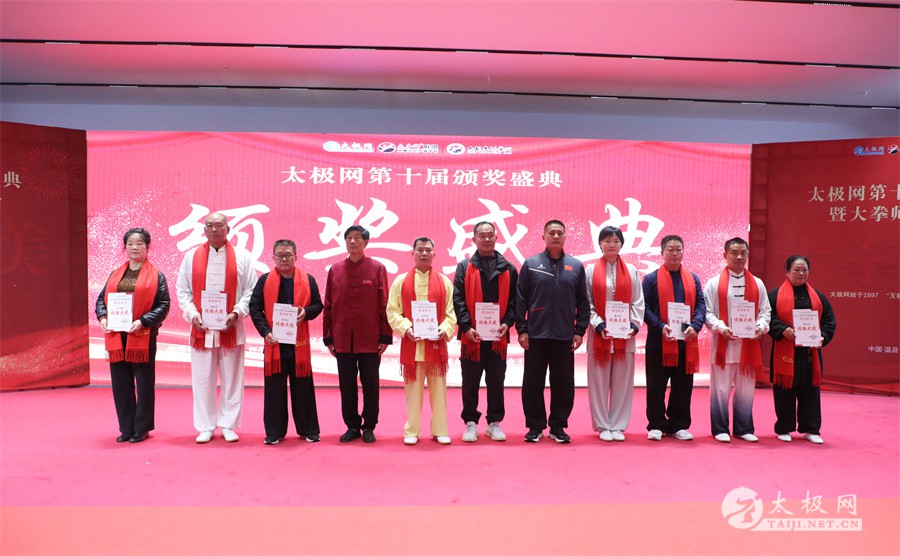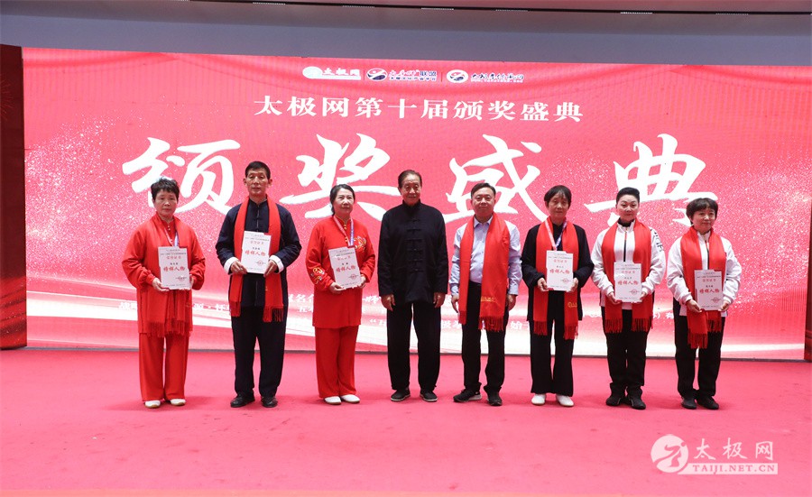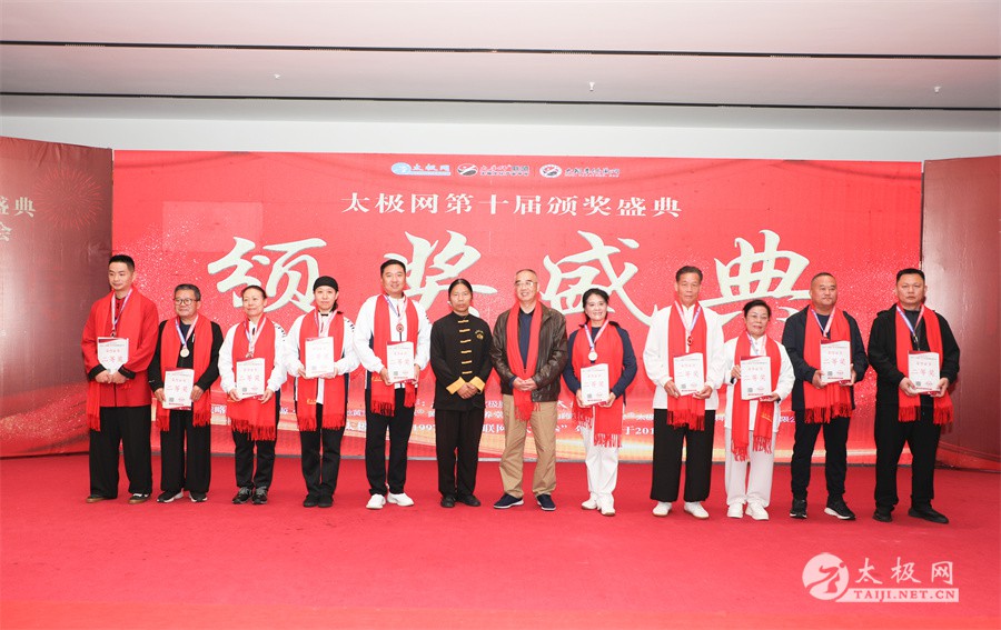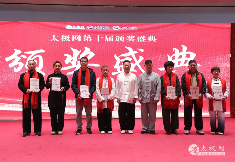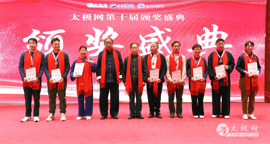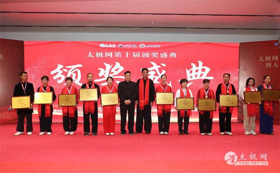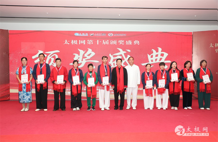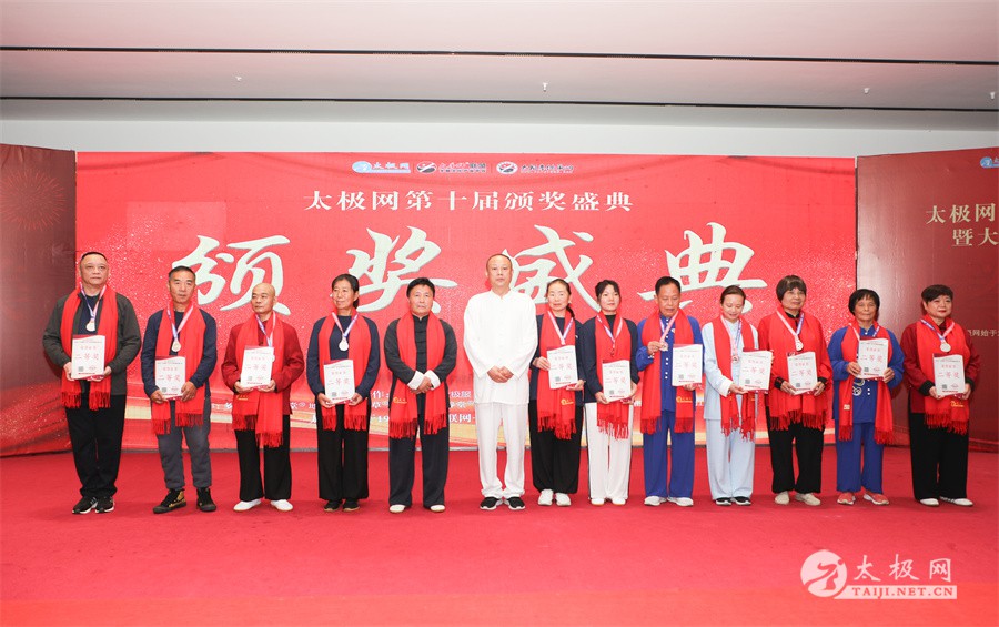 温县政协原主席郑爱珍,焦作市文化馆馆长、焦作市非物质文化遗产保护中心主任胡红兵,温县太极拳武术文化发展中心党组书记、县体育运动发展中心党支部书记任海林,温县太极拳武术文化发展中心主任王敏等领导嘉宾出席颁奖仪式。 河南大学武术学院院长洪浩,中国医学气功学会中医导引专委会主任吴金鹏,北京市武术运动协会主席杜德平,焦作市武术协会主席张治远等武术大咖及嘉宾出席活动。 赵幼斌、李树发、范德治、宋斌、赵现平、解礼德、陈西立、张勇刚、职永成、翟文胜、王仲文、苏河、周毕文、常子轩、陈庆峰、梁翠平、陈彦胜、张辉、张明、刘辉、杨阁明、杨成英、褚亚龙、史成和、王运宜、董丰电、吴永萍、罗永平、李保明、柯鸿信、陈金生、陈献忠、刘太多、崔法强、张永明、叶建国、何登田、葛红、史大华、蔡燕青、沈印年、郭钦星、刘火财、陈晖、台爱民、王华照、杨锦富、方帮助、孟现友、聂志刚、萧劲松等各流派名师名家及优秀传承人受邀从外地赶来共襄盛会。 陈氏太极拳国家级代表性传承人朱天才,和氏太极拳国家级代表性传承人和有禄,陈照森、张福旺、陈冲、陈桂珍、陈有则、陈有刚、陈有华、陈志强、陈大虎、陈二虎、陈三虎、陈朝霞、郑彩霞、段卫星、王国营、陈绍杰、陈志伟、翟全平、陈天森、晁前进、陈建强、张波、张世庆、李文权、陈小水、陈小芹、党绍静、陈娜、邓梦晓等温县籍名师名家及优秀传人到场助阵,向获奖选手颁奖、进行名家表演等。 太极网创始人刘洪奇,太极网总编、太极拳网络视频大赛组委会执行主任李超携太极汇酒业董事长周建军,多福源总经理史长流,五本草黄精茶公司总经理罗强,百养堂生物科技销售总经理石辰峰等合作方代表出席盛会。 太极网总编、大赛组委会执行主任李超向各位嘉宾的到来表示热烈欢迎,对获奖选手及团队表示诚挚祝贺,对支持大赛的各位名家及专家评委表示衷心感谢。李超用“缘分、初心、传承”三个词来分享和回顾了太极拳网络视频大赛的十年之路。他说,太极为媒,以网会友,很多拳友因太极网、太极网赛结缘太极,很多太极人也因此结下缘分,这些缘分太极网倍感珍惜。坚守初心,太极之路才会走的更长远,更踏实,太极网的初心就是要做好“太极拳的宣传员”,做好“太极人之家”。坚守太极拳传播推广这一事业传承近30载,太极网赛传承亦十载,愿与广大太极人携手,一起寻找、发现、创造更多太极之美。 温县太极拳武术中心主任王敏在致辞中向五湖四海太极人的到来表示欢迎,对太极网及太极拳网络视频大赛所取得的成绩给予了高度评价和充分肯定,大赛的成功举办不仅进一步扩大了太极拳的影响力,也为太极拳的传承与发展注入了新的活力与动力。 洪浩代表河南大学武术学院对本次大赛获奖选手及团队表示了热烈的祝贺,对太极网及太极拳网络视频大赛表示了高度赞赏。寄望太极网及大赛能够持续发挥其平台作用,为太极拳传播推广做出更多、更大的贡献。 颁奖环节在热烈和谐的氛围中紧张而有序地展开,本届大赛部分获奖选手、团队代表们精神饱满,怀着激动而兴奋的心情登台领奖,颁奖嘉宾为获奖者颁发了奖牌、奖杯及获奖证书等,并合影留念。 大赛荣誉桂冠大奖2024年度“最美太极人”“最美太极团队”命名表彰仪式上,获奖选手们身着“最美太极人”服装,意气风发登台领奖,鲜红的荣誉证书、闪亮的水晶杯奖杯、金灿灿的绶带,庄重而热烈的仪式感无限拉满。 为表彰和鼓励大赛中涌现出的太极拳杰出人物和团队,组委会颁发“最佳组织奖”“优秀领队奖”“太极新秀”“太极新星”“传播大使”“榜样人物”“十拳十美”等特别大奖。 朱天才名家表演 和有禄名家表演 洪浩名家表演 赵幼斌、陈照森名家表演 张福旺、范德治名家表演 陈志伟、张波、褚亚龙名家表演 陈小芹、党绍静、常明月、邓梦晓名家表演 陈三虎、段卫星、王国营、王运宜名家表演 常子轩、张勇刚、陈绍杰、张世庆名家表演 梁翠平、吴永萍、陈娜、葛红名家表演 陈大虎、陈西立、宋斌名家表演 陈冲、陈志强、陈二虎、陈有华名家表演 陈有刚、赵现平、解礼德名家表演 陈桂珍、陈朝霞、郑彩霞名家表演 职永成、翟文胜、王仲文名家表演 陈彦胜、刘辉、杨阁明、李保明名家表演 陈庆峰、董丰电、崔法强、苏河名家表演 陈天森、张明、晁前进、李文权名家表演 蔡燕青、沈印年、郭钦星、王华照名家表演 柯鸿信、陈金生、台爱民名家表演 陈晖、何登田、聂志刚、朱誉名家表演 各流派太极拳名师名家展演 颁奖盛典现场大咖云集、星光闪耀。来自全国各地的太极拳名家及优秀传承人轮番登台献上了精彩绝伦的表演,天下太极是一家的和谐画面在此生动彰显,一场视觉盛宴散发出太极拳的无限魅力。 大赛主办方太极网创立于1997年,专注太极文化网络传播和武术产业运营近30载,平台粉丝近千万。多年来,组织举办大型武术文旅赛事活动数十起、武术网络赛事百余起,累计参与人数达30万。 太极网自2015年首创“寻找最美太极人——太极拳网络视频大赛”,连续十届的“互联网+太极拳”赛事活动吸引了数以万计的太极人参与,2024年第十届大赛线上参赛选手4000余人。 颁奖盛典是该赛事的线下颁奖表彰活动,也是各流派太极人交流