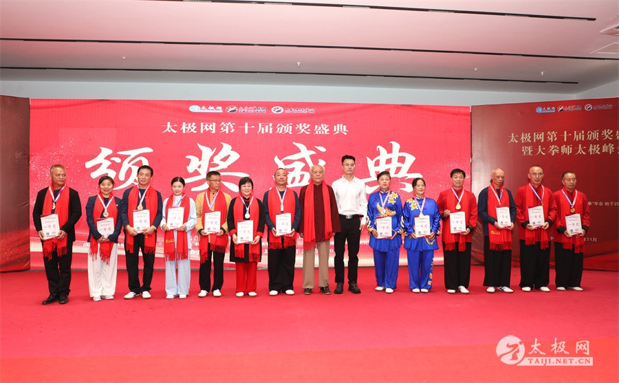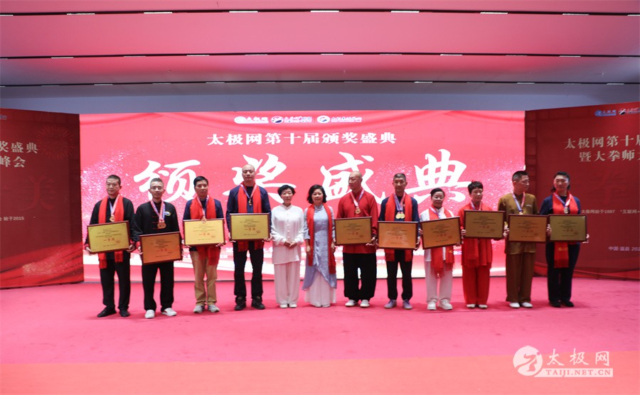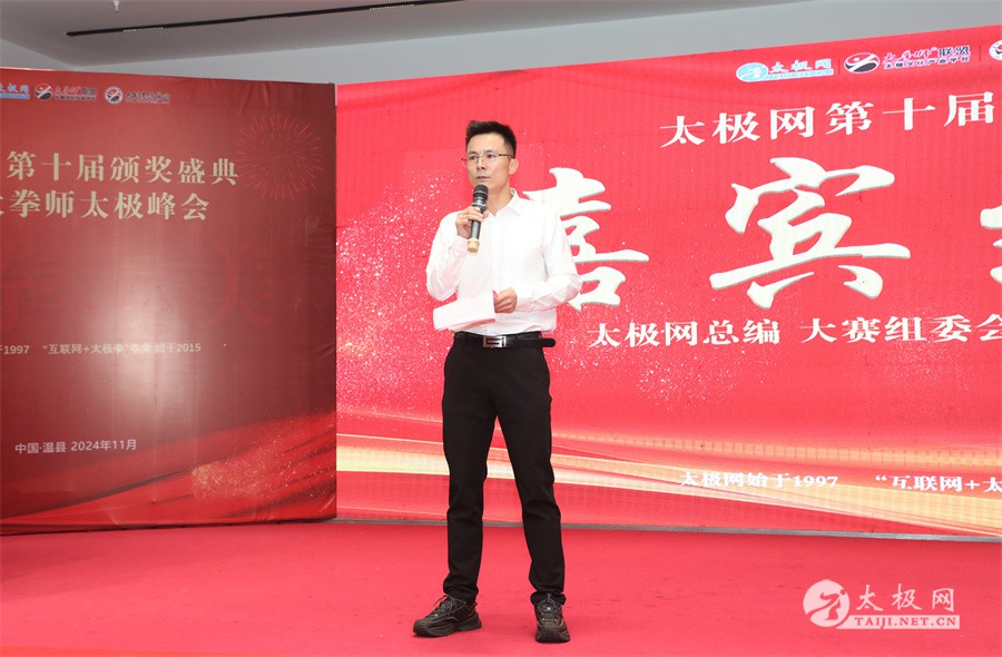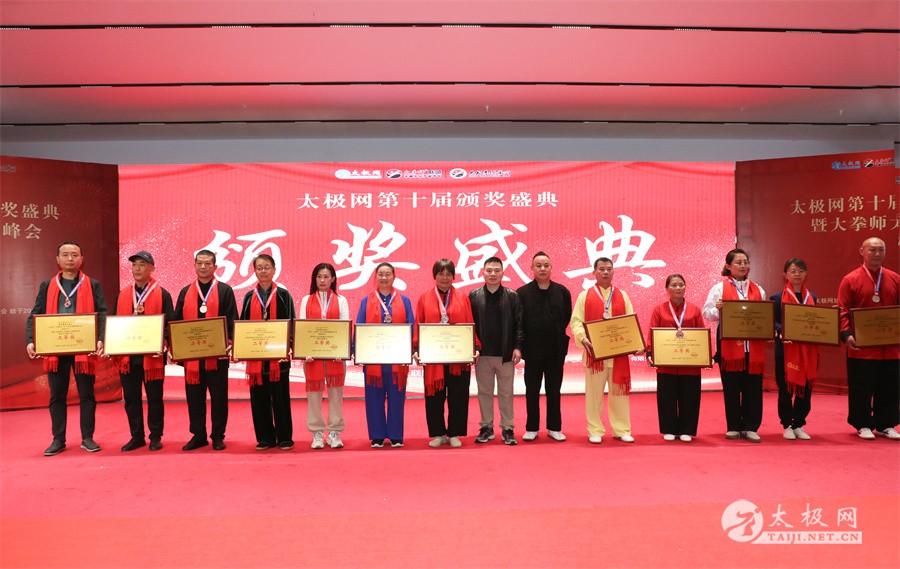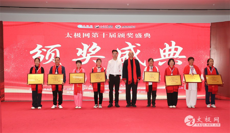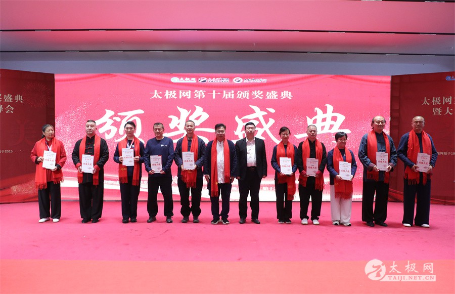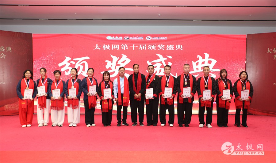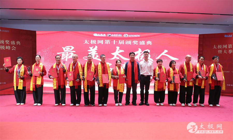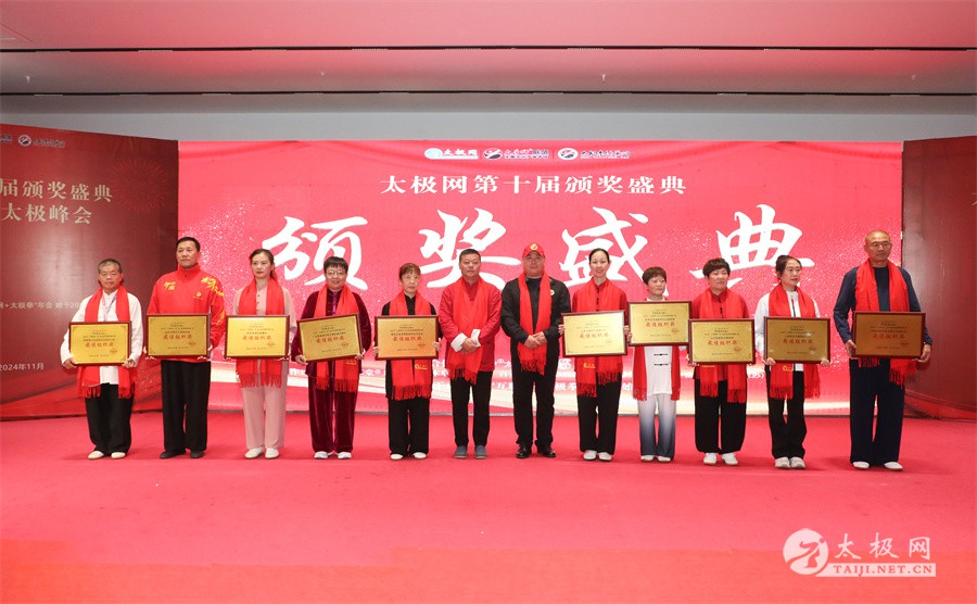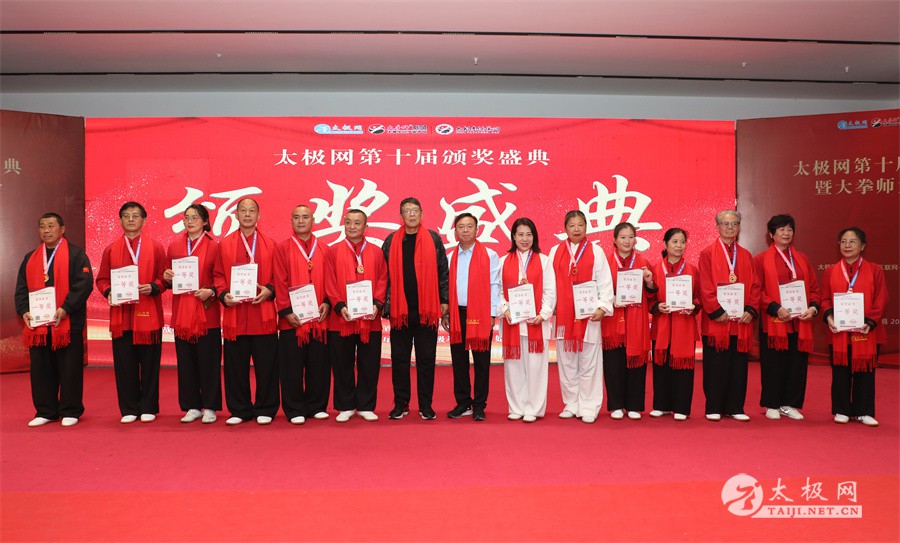温县政协原主席郑爱珍,焦作市文化馆馆长、焦作市非物质文化遗产保护中心主任胡红兵,温县太极拳武术文化发展中心党组书记、县体育运动发展中心党支部书记任海林,温县太极拳武术文化发展中心主任王敏等领导嘉宾出席颁奖仪式。 河南大学武术学院院长洪浩,中国医学气功学会中医导引专委会主任吴金鹏,北京市武术运动协会主席杜德平,焦作市武术协会主席张治远等武术大咖及嘉宾出席活动。 赵幼斌、李树发、范德治、宋斌、赵现平、解礼德、陈西立、张勇刚、职永成、翟文胜、王仲文、苏河、周毕文、常子轩、陈庆峰、梁翠平、陈彦胜、张辉、张明、刘辉、杨阁明、杨成英、褚亚龙、史成和、王运宜、董丰电、吴永萍、罗永平、李保明、柯鸿信、陈金生、陈献忠、刘太多、崔法强、张永明、叶建国、何登田、葛红、史大华、蔡燕青、沈印年、郭钦星、刘火财、陈晖、台爱民、王华照、杨锦富、方帮助、孟现友、聂志刚、萧劲松等各流派名师名家及优秀传承人受邀从外地赶来共襄盛会。 陈氏太极拳国家级代表性传承人朱天才,和氏太极拳国家级代表性传承人和有禄,陈照森、张福旺、陈冲、陈桂珍、陈有则、陈有刚、陈有华、陈志强、陈大虎、陈二虎、陈三虎、陈朝霞、郑彩霞、段卫星、王国营、陈绍杰、陈志伟、翟全平、陈天森、晁前进、陈建强、张波、张世庆、李文权、陈小水、陈小芹、党绍静、陈娜、邓梦晓等温县籍名师名家及优秀传人到场助阵,向获奖选手颁奖、进行名家表演等。 太极网创始人刘洪奇,太极网总编、太极拳网络视频大赛组委会执行主任李超携太极汇酒业董事长周建军,多福源总经理史长流,五本草黄精茶公司总经理罗强,百养堂生物科技销售总经理石辰峰等合作方代表出席盛会。 太极网总编、大赛组委会执行主任李超向各位嘉宾的到来表示热烈欢迎,对获奖选手及团队表示诚挚祝贺,对支持大赛的各位名家及专家评委表示衷心感谢。李超用“缘分、初心、传承”三个词来分享和回顾了太极拳网络视频大赛的十年之路。他说,太极为媒,以网会友,很多拳友因太极网、太极网赛结缘太极,很多太极人也因此结下缘分,这些缘分太极网倍感珍惜。坚守初心,太极之路才会走的更长远,更踏实,太极网的初心就是要做好“太极拳的宣传员”,做好“太极人之家”。坚守太极拳传播推广这一事业传承近30载,太极网赛传承亦十载,愿与广大太极人携手,一起寻找、发现、创造更多太极之美。 温县太极拳武术中心主任王敏在致辞中向五湖四海太极人的到来表示欢迎,对太极网及太极拳网络视频大赛所取得的成绩给予了高度评价和充分肯定,大赛的成功举办不仅进一步扩大了太极拳的影响力,也为太极拳的传承与发展注入了新的活力与动力。 洪浩代表河南大学武术学院对本次大赛获奖选手及团队表示了热烈的祝贺,对太极网及太极拳网络视频大赛表示了高度赞赏。寄望太极网及大赛能够持续发挥其平台作用,为太极拳传播推广做出更多、更大的贡献。 颁奖环节在热烈和谐的氛围中紧张而有序地展开,本届大赛部分获奖选手、团队代表们精神饱满,怀着激动而兴奋的心情登台领奖,颁奖嘉宾为获奖者颁发了奖牌、奖杯及获奖证书等,并合影留念。 大赛荣誉桂冠大奖2024年度“最美太极人”“最美太极团队”命名表彰仪式上,获奖选手们身着“最美太极人”服装,意气风发登台领奖,鲜红的荣誉证书、闪亮的水晶杯奖杯、金灿灿的绶带,庄重而热烈的仪式感无限拉满。 为表彰和鼓励大赛中涌现出的太极拳杰出人物和团队,组委会颁发“最佳组织奖”“优秀领队奖”“太极新秀”“太极新星”“传播大使”“榜样人物”“十拳十美”等特别大奖。 朱天才名家表演 和有禄名家表演 洪浩名家表演 赵幼斌、陈照森名家表演 张福旺、范德治名家表演 陈志伟、张波、褚亚龙名家表演 陈小芹、党绍静、常明月、邓梦晓名家表演 陈三虎、段卫星、王国营、王运宜名家表演 常子轩、张勇刚、陈绍杰、张世庆名家表演 梁翠平、吴永萍、陈娜、葛红名家表演 陈大虎、陈西立、宋斌名家表演 陈冲、陈志强、陈二虎、陈有华名家表演 陈有刚、赵现平、解礼德名家表演 陈桂珍、陈朝霞、郑彩霞名家表演 职永成、翟文胜、王仲文名家表演 陈彦胜、刘辉、杨阁明、李保明名家表演 陈庆峰、董丰电、崔法强、苏河名家表演 陈天森、张明、晁前进、李文权名家表演 蔡燕青、沈印年、郭钦星、王华照名家表演 柯鸿信、陈金生、台爱民名家表演 陈晖、何登田、聂志刚、朱誉名家表演 各流派太极拳名师名家展演 颁奖盛典现场大咖云集、星光闪耀。来自全国各地的太极拳名家及优秀传承人轮番登台献上了精彩绝伦的表演,天下太极是一家的和谐画面在此生动彰显,一场视觉盛宴散发出太极拳的无限魅力。 大赛主办方太极网创立于1997年,专注太极文化网络传播和武术产业运营近30载,平台粉丝近千万。多年来,组织举办大型武术文旅赛事活动数十起、武术网络赛事百余起,累计参与人数达30万。 太极网自2015年首创“寻找最美太极人——太极拳网络视频大赛”,连续十届的“互联网+太极拳”赛事活动吸引了数以万计的太极人参与,2024年第十届大赛线上参赛选手4000余人。 颁奖盛典是该赛事的线下颁奖表彰活动,也是各流派太极人交流