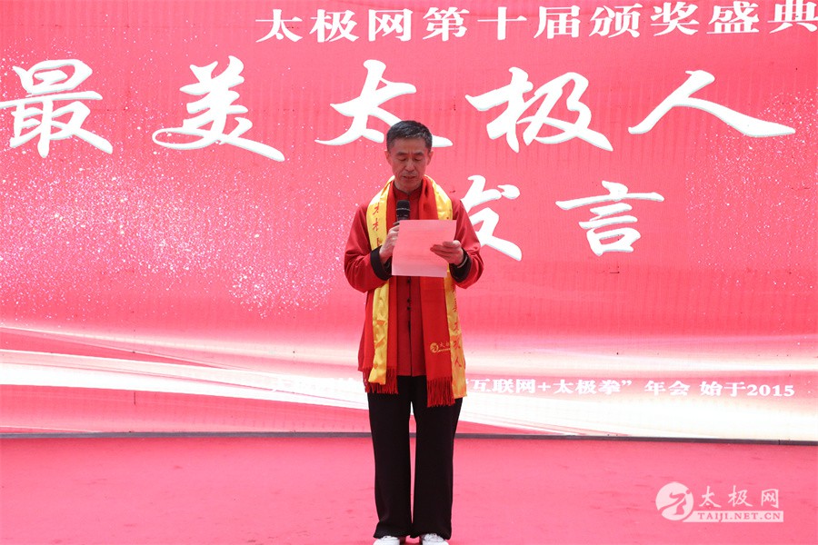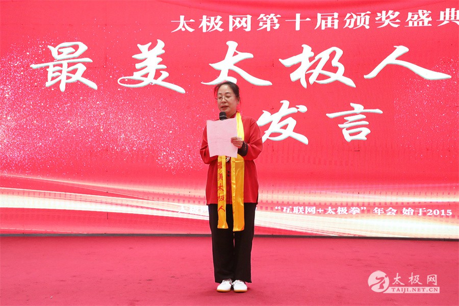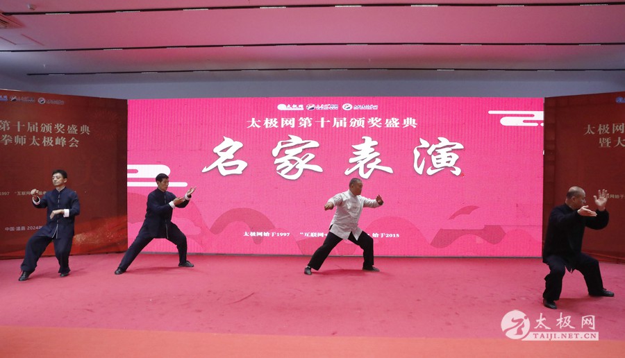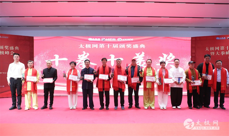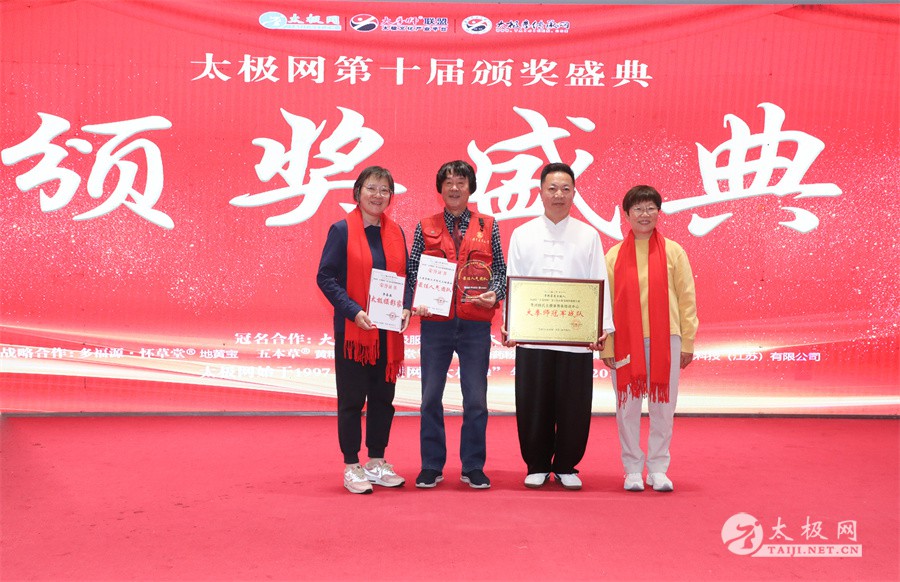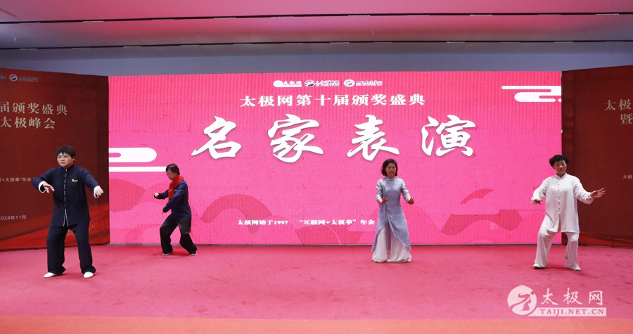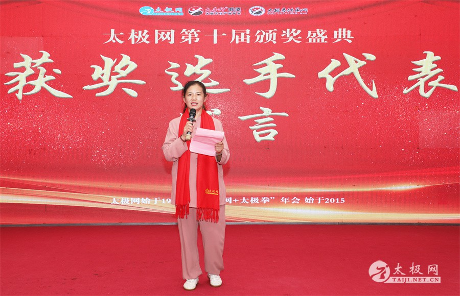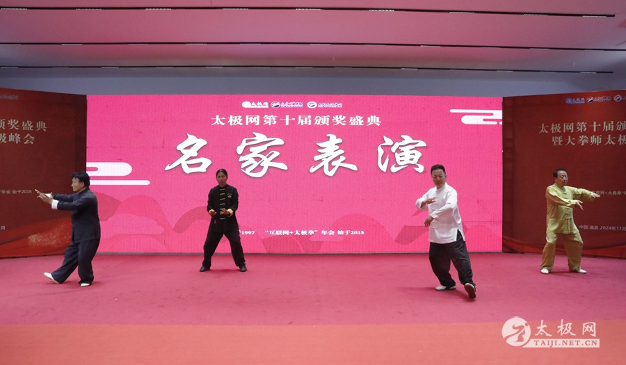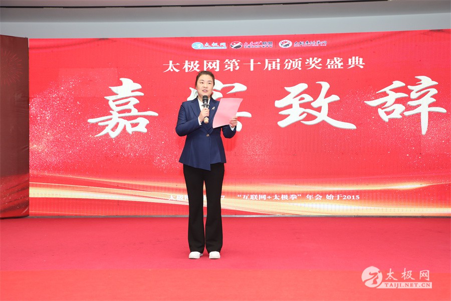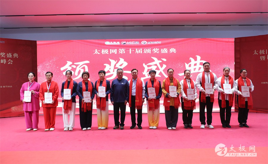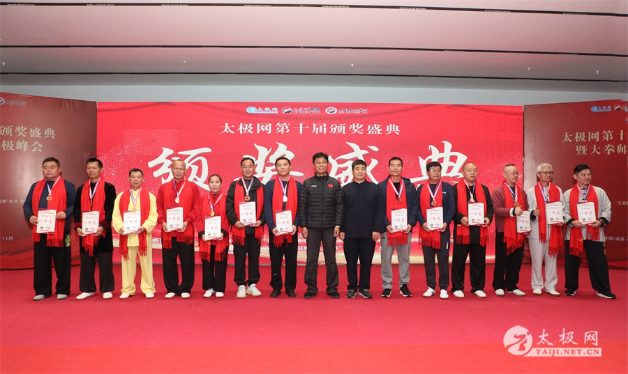 温县政协原主席郑爱珍,焦作市文化馆馆长、焦作市非物质文化遗产保护中心主任胡红兵,温县太极拳武术文化发展中心党组书记、县体育运动发展中心党支部书记任海林,温县太极拳武术文化发展中心主任王敏等领导嘉宾出席颁奖仪式。 河南大学武术学院院长洪浩,中国医学气功学会中医导引专委会主任吴金鹏,北京市武术运动协会主席杜德平,焦作市武术协会主席张治远等武术大咖及嘉宾出席活动。 赵幼斌、李树发、范德治、宋斌、赵现平、解礼德、陈西立、张勇刚、职永成、翟文胜、王仲文、苏河、周毕文、常子轩、陈庆峰、梁翠平、陈彦胜、张辉、张明、刘辉、杨阁明、杨成英、褚亚龙、史成和、王运宜、董丰电、吴永萍、罗永平、李保明、柯鸿信、陈金生、陈献忠、刘太多、崔法强、张永明、叶建国、何登田、葛红、史大华、蔡燕青、沈印年、郭钦星、刘火财、陈晖、台爱民、王华照、杨锦富、方帮助、孟现友、聂志刚、萧劲松等各流派名师名家及优秀传承人受邀从外地赶来共襄盛会。 陈氏太极拳国家级代表性传承人朱天才,和氏太极拳国家级代表性传承人和有禄,陈照森、张福旺、陈冲、陈桂珍、陈有则、陈有刚、陈有华、陈志强、陈大虎、陈二虎、陈三虎、陈朝霞、郑彩霞、段卫星、王国营、陈绍杰、陈志伟、翟全平、陈天森、晁前进、陈建强、张波、张世庆、李文权、陈小水、陈小芹、党绍静、陈娜、邓梦晓等温县籍名师名家及优秀传人到场助阵,向获奖选手颁奖、进行名家表演等。 太极网创始人刘洪奇,太极网总编、太极拳网络视频大赛组委会执行主任李超携太极汇酒业董事长周建军,多福源总经理史长流,五本草黄精茶公司总经理罗强,百养堂生物科技销售总经理石辰峰等合作方代表出席盛会。 太极网总编、大赛组委会执行主任李超向各位嘉宾的到来表示热烈欢迎,对获奖选手及团队表示诚挚祝贺,对支持大赛的各位名家及专家评委表示衷心感谢。李超用“缘分、初心、传承”三个词来分享和回顾了太极拳网络视频大赛的十年之路。他说,太极为媒,以网会友,很多拳友因太极网、太极网赛结缘太极,很多太极人也因此结下缘分,这些缘分太极网倍感珍惜。坚守初心,太极之路才会走的更长远,更踏实,太极网的初心就是要做好“太极拳的宣传员”,做好“太极人之家”。坚守太极拳传播推广这一事业传承近30载,太极网赛传承亦十载,愿与广大太极人携手,一起寻找、发现、创造更多太极之美。 温县太极拳武术中心主任王敏在致辞中向五湖四海太极人的到来表示欢迎,对太极网及太极拳网络视频大赛所取得的成绩给予了高度评价和充分肯定,大赛的成功举办不仅进一步扩大了太极拳的影响力,也为太极拳的传承与发展注入了新的活力与动力。 洪浩代表河南大学武术学院对本次大赛获奖选手及团队表示了热烈的祝贺,对太极网及太极拳网络视频大赛表示了高度赞赏。寄望太极网及大赛能够持续发挥其平台作用,为太极拳传播推广做出更多、更大的贡献。 颁奖环节在热烈和谐的氛围中紧张而有序地展开,本届大赛部分获奖选手、团队代表们精神饱满,怀着激动而兴奋的心情登台领奖,颁奖嘉宾为获奖者颁发了奖牌、奖杯及获奖证书等,并合影留念。 大赛荣誉桂冠大奖2024年度“最美太极人”“最美太极团队”命名表彰仪式上,获奖选手们身着“最美太极人”服装,意气风发登台领奖,鲜红的荣誉证书、闪亮的水晶杯奖杯、金灿灿的绶带,庄重而热烈的仪式感无限拉满。 为表彰和鼓励大赛中涌现出的太极拳杰出人物和团队,组委会颁发“最佳组织奖”“优秀领队奖”“太极新秀”“太极新星”“传播大使”“榜样人物”“十拳十美”等特别大奖。 朱天才名家表演 和有禄名家表演 洪浩名家表演 赵幼斌、陈照森名家表演 张福旺、范德治名家表演 陈志伟、张波、褚亚龙名家表演 陈小芹、党绍静、常明月、邓梦晓名家表演 陈三虎、段卫星、王国营、王运宜名家表演 常子轩、张勇刚、陈绍杰、张世庆名家表演 梁翠平、吴永萍、陈娜、葛红名家表演 陈大虎、陈西立、宋斌名家表演 陈冲、陈志强、陈二虎、陈有华名家表演 陈有刚、赵现平、解礼德名家表演 陈桂珍、陈朝霞、郑彩霞名家表演 职永成、翟文胜、王仲文名家表演 陈彦胜、刘辉、杨阁明、李保明名家表演 陈庆峰、董丰电、崔法强、苏河名家表演 陈天森、张明、晁前进、李文权名家表演 蔡燕青、沈印年、郭钦星、王华照名家表演 柯鸿信、陈金生、台爱民名家表演 陈晖、何登田、聂志刚、朱誉名家表演 各流派太极拳名师名家展演 颁奖盛典现场大咖云集、星光闪耀。来自全国各地的太极拳名家及优秀传承人轮番登台献上了精彩绝伦的表演,天下太极是一家的和谐画面在此生动彰显,一场视觉盛宴散发出太极拳的无限魅力。 大赛主办方太极网创立于1997年,专注太极文化网络传播和武术产业运营近30载,平台粉丝近千万。多年来,组织举办大型武术文旅赛事活动数十起、武术网络赛事百余起,累计参与人数达30万。 太极网自2015年首创“寻找最美太极人——太极拳网络视频大赛”,连续十届的“互联网+太极拳”赛事活动吸引了数以万计的太极人参与,2024年第十届大赛线上参赛选手4000余人。 颁奖盛典是该赛事的线下颁奖表彰活动,也是各流派太极人交流