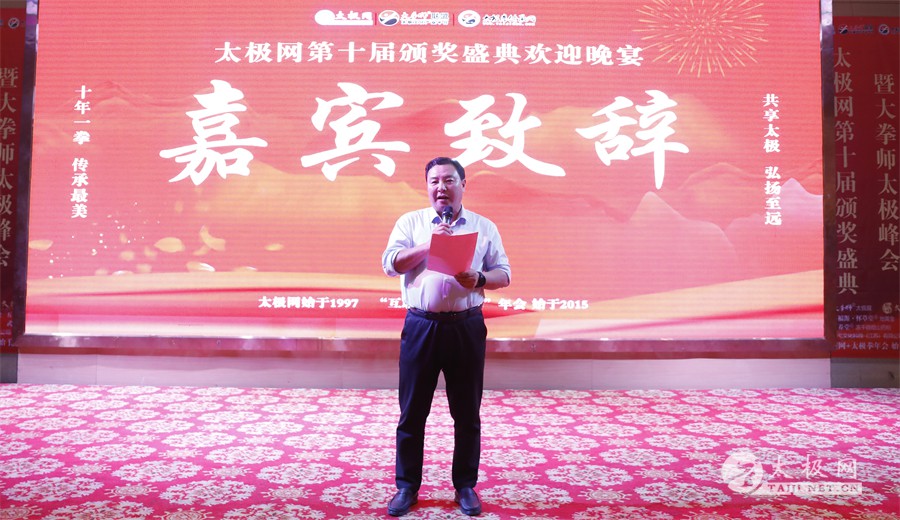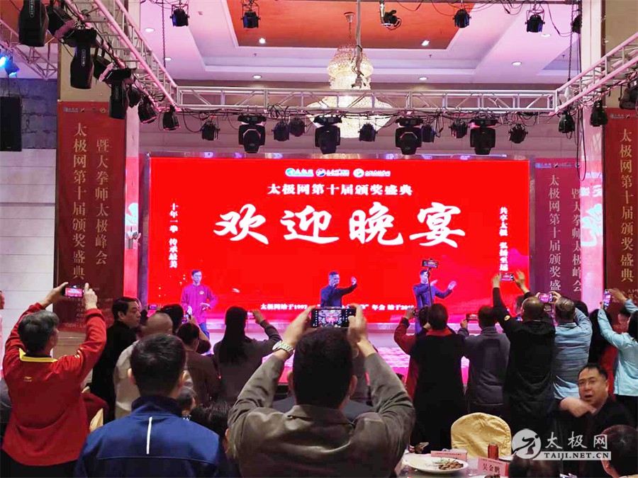 太极为媒,以网会友。11月1日晚,太极网第十届颁奖盛典暨大拳师太极峰会即将召开之际,为迎接来自全国各地的拳师拳友们,太极网、太极拳网络视频大赛组委会举办了隆重而盛大的欢迎晚宴,款待五湖四海的太极来宾,晚宴现场,华灯初上,璀璨夺目,近700名太极人欢聚一堂,人声鼎沸,一片热闹和谐的景象。此次晚宴不仅是对来自各地的太极拳爱好者的热情欢迎,更是一次太极拳交流联谊的盛宴。 太极网总编、太极拳网络视频大赛组委会执行主任李超主持活动 太极网总编、太极拳网络视频大赛组委会执行主任李超主持欢迎晚宴。晚宴开始前,由三位老师领衔的参会队伍进行了精心准备的太极拳集体表演,分别是来自山西太原的范德治、广东湛江的王华照、河南驻马店的翟文胜太极团队,现场气氛一路高涨,欢呼声不绝入耳。三位老师所率队伍均是本届大赛上耀眼的精英战队,参赛成绩遥遥领先,同时每支队伍都组织了多人参加本次颁奖盛典,神采飞扬的太极形象,在太极圣地的大舞台上向各地拳友进行了精彩展示。温县的青年拳师代表陈志伟、张波、秦大装等联袂登台演武,刚柔相济的表演迅速燃爆氛围,舞台前方被围堵的水泄不通,现场“几近失控”,大家纷纷拿起手机记录下精彩瞬间。 温县政协原主席郑爱珍致辞 陈氏太极拳国家级代表性传承人朱天才致辞 杨氏太极拳代表性传承人、中国武术九段赵幼斌致辞 杨氏太极拳代表性传承人宋斌致辞 太极汇酒厂市场总监杨芠萱致辞 晚宴现场 晚宴得到了本次活动冠名合作方太极汇酒业的大力支持和赞助,“太极人,就喝太极汇”,醇厚甘美的太极汇酱酒受到与会拳友的高度认可与好评。 太极网赛,十年一拳,传承最美,弘扬至远。觥筹交错间,众人品尝美酒美食、愉快交流,一场专属太极人的“武林群英宴”在热烈和谐的氛围中徐徐展开。 相关阅读: 责编:张梦瑶 |