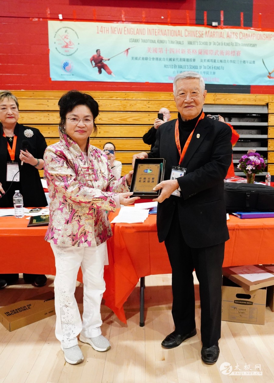 接着,陈思坦老师又说起表演“醉剑”的事儿,“这个视频是我于1991年9月应邀参加郑州“首届少林国际武术节开幕式”上做嘉宾表演,当年24周岁。”  国际神探李昌钰博士赠送"卓越贡献,真诚感谢"牌匾给本届赛事组委会主席许玛丽