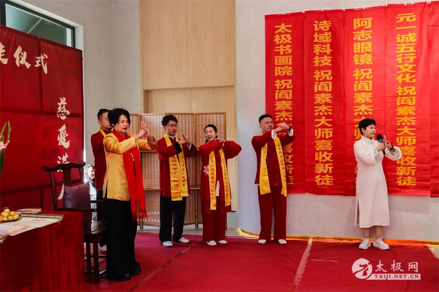 太极拳爱好者周青、颜伟、梅竞放、吴东润爱好传统文化,仰慕阎素杰道通法明,师从身畔,潜心修习,经阎素杰全面考察,玉尺量才,此次有幸列入师门。 在太极拳、太极剑、诵读素禅心语等环节之后,阎素杰老师及新入门弟子分别祭拜武圣关公及太极拳祖师陈王廷。准弟子们先后高声诵读并恭敬呈递敬表文、拜师帖,并虔敬奉茶。阎素杰依次为弟子披弟子服,赐名赐印,宣读师训及门规。仪式最后,师徒共同再次祭拜,同表传承弘扬素禅的初心。新晋弟子周青、颜伟、梅竞放、吴东润激动地表达了拜师入门的初心。因感念师恩,弟子梅竞放在台上一度哽咽难言;弟子周青对师父的慈悲接引也表达了感恩之情。 众来宾共同祝贺师父喜得爱徒,恭贺弟子喜得名师,恭贺素禅开枝散叶,收徒仪式完满结束。 责编:张梦瑶 |