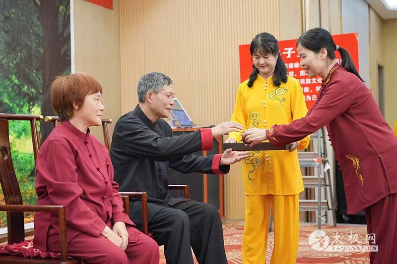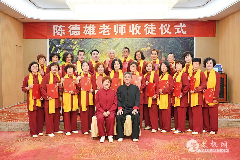 2024年12月9日,陈氏太极拳第十二代传人陈德雄老师的收徒仪式在广东吴川市福满楼酒家隆重举行,23名太极拳爱好者通过传统的拜师仪式正式拜入陈德雄老师门下,正式成为陈氏太极拳第十三代传承人。 江西省武术协会太极拳专业委员会副主任、陈式太极拳王西安大师弟子、八卦掌名家刘敬儒大师弟子方华;耿见峰太极拳馆馆长,王西安拳法研究会深圳分会会长耿见峰;广东湛江市陈式太极拳协会原会长,中国武术七段,湛江市陈式太极拳总教练苏道生等出席收徒仪式,共同见证这一神圣而庄严的时刻。 拜师仪式上,众弟子依次向师父、师母递交拜师帖并行拜师礼。师父、师母分别为新入门弟子颁发入门证书,披挂绶带。新入门弟子与师父、师母合影留念,共同记录下这一珍贵时刻。 陈德雄师父训诫:希望弟子们以太极的思想理念修炼自身、完善自身,包容、宽厚处事待人。弘扬太极拳,坚持文化自信,为健康社会、文化强国作出自己的一点贡献。最后新弟子代表给师父、师母敬茶礼成,宣示陈式太极第十三代传人又添新丁。 最后,出席本次收徒仪式的全体嘉宾和陈德雄老师及其弟子大合影。陈德雄老师收徒仪式圆满礼成! |