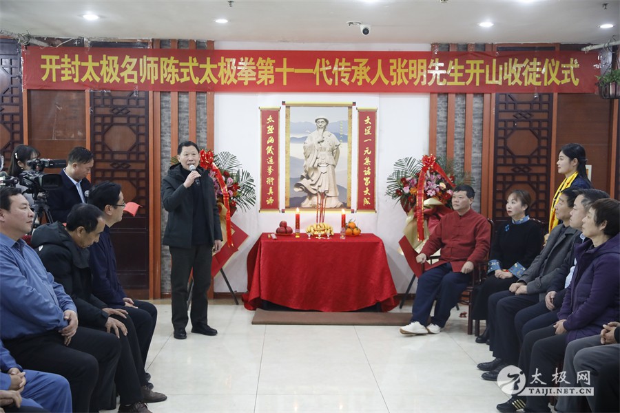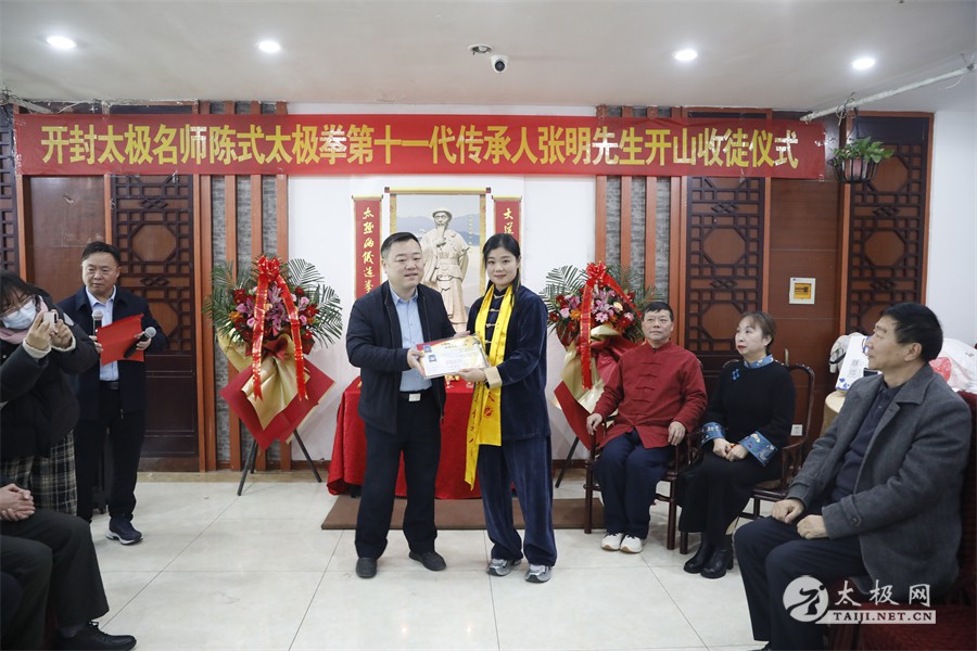 太极薪火,传承有序。2024年12月14日,陈氏太极拳第十一代传承人张明开山收徒仪式于开封又一新饭店举行,太极拳爱好者周芹通过传统仪式拜入其门下,为弘扬和传承太极拳非遗文化增添新生力量。太极网创始人刘洪奇受邀主持收徒仪式。 河南省武术协会执委、开封市武术协会主席、河南省太极拳协会副会长吕玉中,开封禹王台区文联主席、文化馆馆长蔺晓旭,《少林与太极》杂志社原总编、河南广播电视台武术世界频道首席顾问、河南省太极拳协会特邀副会长赵国华,温县政协副主席、中国作协会员、中国电视艺术家协会会员严双军,温县太极拳武术文化发展中心党组书记任海林,原温县体育局局长原福全,西安市武协常务副主席、西安陈金鳌太极拳学会会长刘永强,开封市武术协会副主席卜秋风、执行秘书长郭海成,一代太极宗师陈公克忠之嫡孙、温县陈伯祥拳术研究会副会长陈天祥,陈氏太极拳省级代表性传承人、陈家沟太极拳武校校长兼总教练陈冲,陈氏太极拳第十一代传承人、陈家沟陈氏太极拳小架研究会副会长陈天森,陈氏太极拳市级代表性传承人、陈清平太极拳代表性传承人张世庆,开封范鸿信陈式太极拳学会会长范新林,副会长赵国杰、刘素云、白海龙、刘国富,王西安拳法研究会开封分会会长张世飞,中国广电开封公司副总经理郑春升,中国烹饪大师杜守义,开封鹏祥科技有限公司董事长李彬,开封市田家炳高级中学武术队总教练朱誉等出席收徒仪式,共同见证这一神圣而庄严的时刻。 刘洪奇主持仪式 张明上香祭拜太极拳始祖 弟子净手 张明带领弟子周芹上香祭拜太极拳始祖 张明致辞 收徒仪式遵循传统、简洁庄重。张明老师向太极拳始祖陈王廷及历代先师敬香行礼,告示传承有序薪火有继。随后,新入门弟子周芹向师父递交拜师帖、行拜师礼、敬拜师茶,师父回礼。在众人的见证之下,收徒仪式圆满礼成。 吕玉中致辞 赵国华致辞 严双军致辞 陈天祥致辞 赵国杰致辞 刘永强致辞并宣读中国武术协会副主席田苏辉贺信 蔺晓旭致辞并颁发传承人证书 宣读嘉宾贺信 开封市武术协会赠送书法作品 西安陈金鳌太极拳学会名誉会长、太极拳名家李树发,执行会长张勇刚、副会长刘凤兰,范鸿信太极拳学会美国分会、中国台北分会会长李炯,开封市武术协会名誉主席、东莞市武术协会监事长张辉,兰州市武协副主席、范鸿信太极拳学会兰州分会会长张新龙等嘉宾发来贺电,开封市武术协会主席吕玉中、兰州市武协主席李永忠、原温县体育局局长原福全赠送书法作品,祝贺张明喜收周芹为爱徒。 这场仪式不仅是一次文化技艺的传承,更是一次太极精神的传递。相信在张明老师的悉心教导和榜样力量的感召下,新入门弟子周芹能够在太极拳的道路上砥砺前行,为推动太极拳事业的传承与发展贡献自己的力量。 张世庆太极拳展演 刘永强太极拳展演 陈冲太极拳展演 太极拳展演 张明,开封市人,中国武术六段,陈氏太极拳第十一代优秀传承人,师承陈氏太极拳大家范鸿信先生。现为开封范鸿信陈式太极拳学会副会长兼秘书长,太极网首席武术导师,太极网开封分站负责人,开封市武术协会副秘书长,开封市武协太极拳专业委员会主任。省、市太极拳发展工作先进个人。 责编:张梦瑶 |