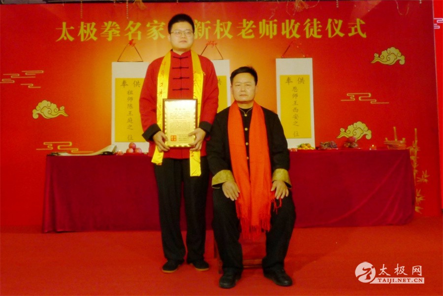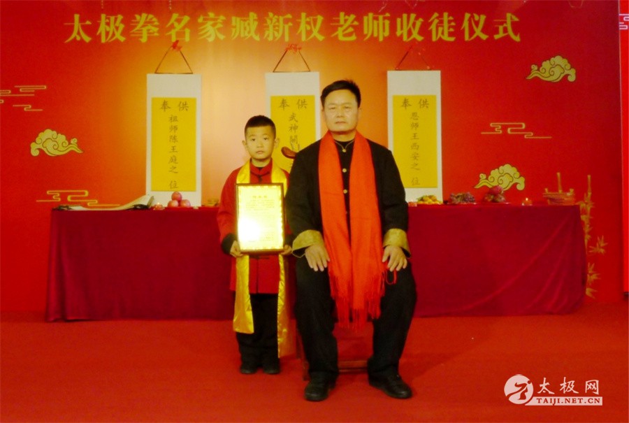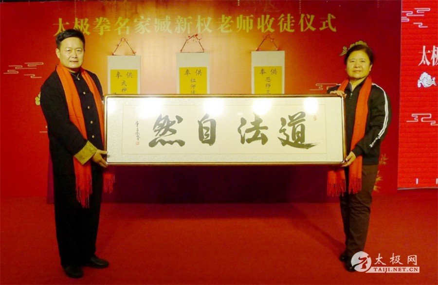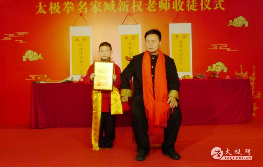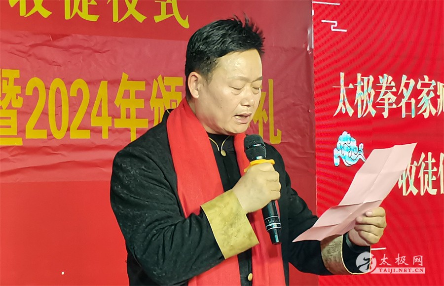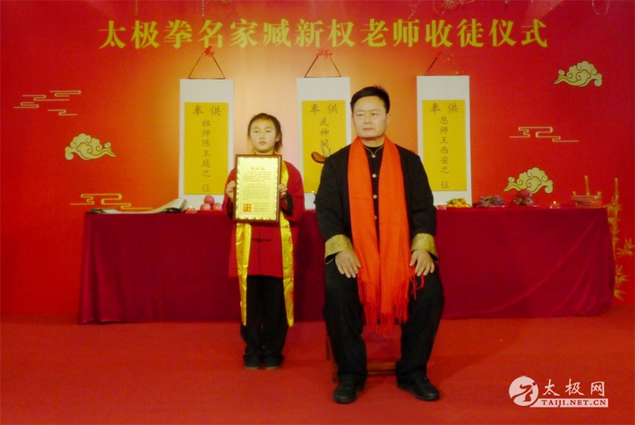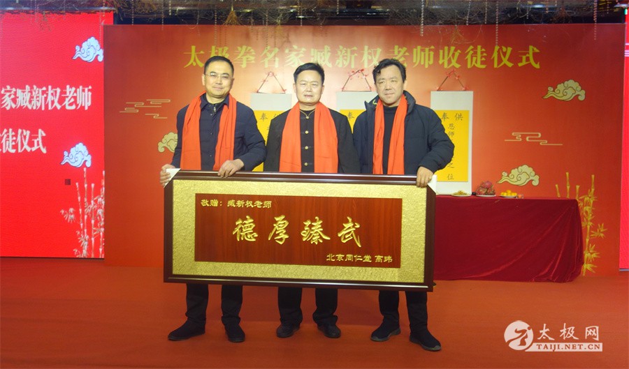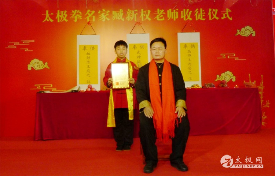 | (太极网讯)太极文化薪火相传,生生不息。2024年12月22日,王西安拳法研究会临汾分会会长、山西临汾臧新权武院院长臧新权收徒仪式在美仑国际酒店举行。宋文艺、邢桂花、尉丽娜、韩宝丽、臧辉、晋梓睿、文丞昕、白依鑫、成艺玮、王炜智10名太极拳爱好者被臧新权接纳为弟子,通过传统拜师仪式成为陈式太极拳第十三代传人。 臧新权,湖北天门臧家湾人,陈氏太极拳第12代传人,王西安大师亲传弟子。临汾市《臧新权武院》创始人,王西安拳法研究会临汾分会会长,山西省临汾市武术协会副秘书长,国家武术六段,国家一级武术裁判员,一级社会体育指导员,北京体育大学中级运动康养师,陈家沟太极拳高级教练,河南省高级拳师。