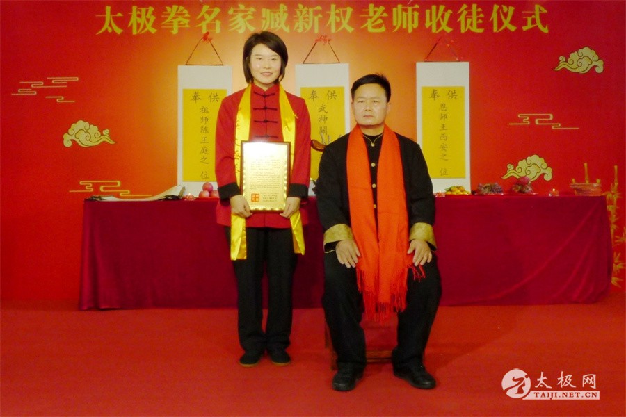 收徒仪式遵循传统、庄严古朴。臧新权老师向武圣关公、太极拳祖师陈王廷、恩师王西安敬香行礼,以告收徒传承再续薪火。新入门弟子集体诵读敬表文,向师父臧新权及师母文新爱交拜师贴、行拜师礼、敬拜师茶,师父臧新权亲自为新入门弟子披挂传承人绶带、披弟子服,颁发传承人证书。仪式在众嘉宾的见证之下圆满礼成。 责编/邓豪杰 |
