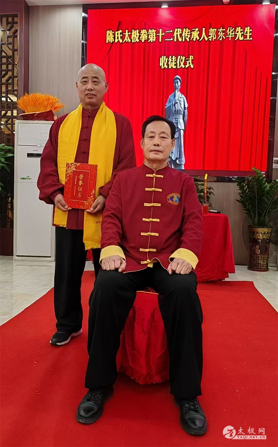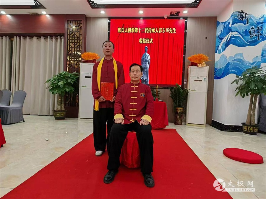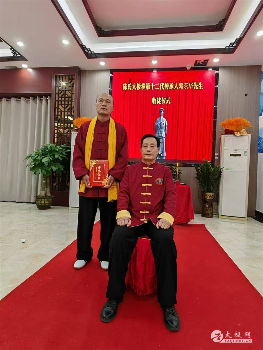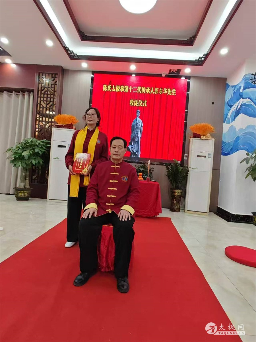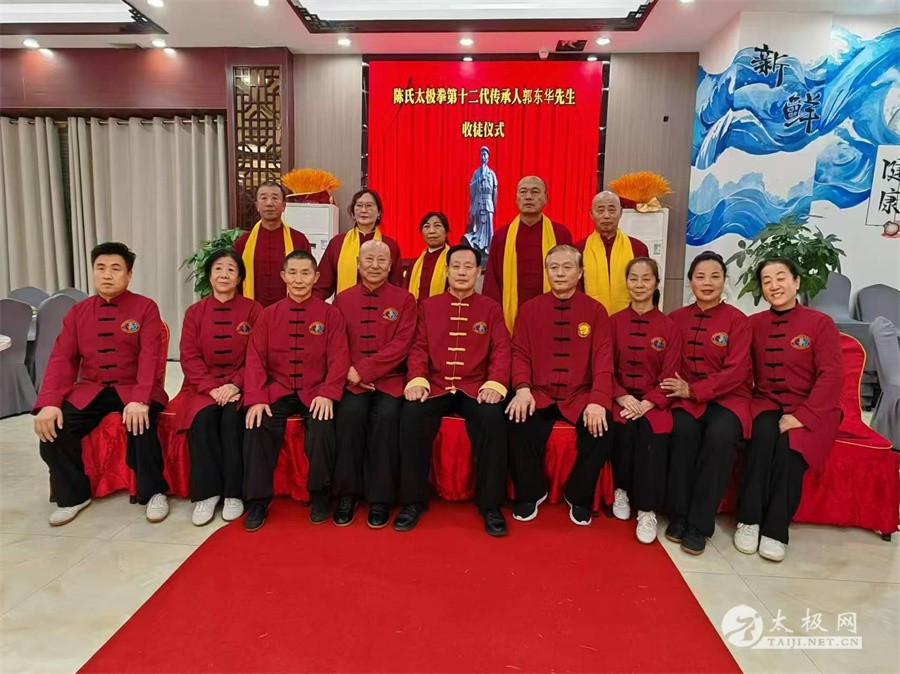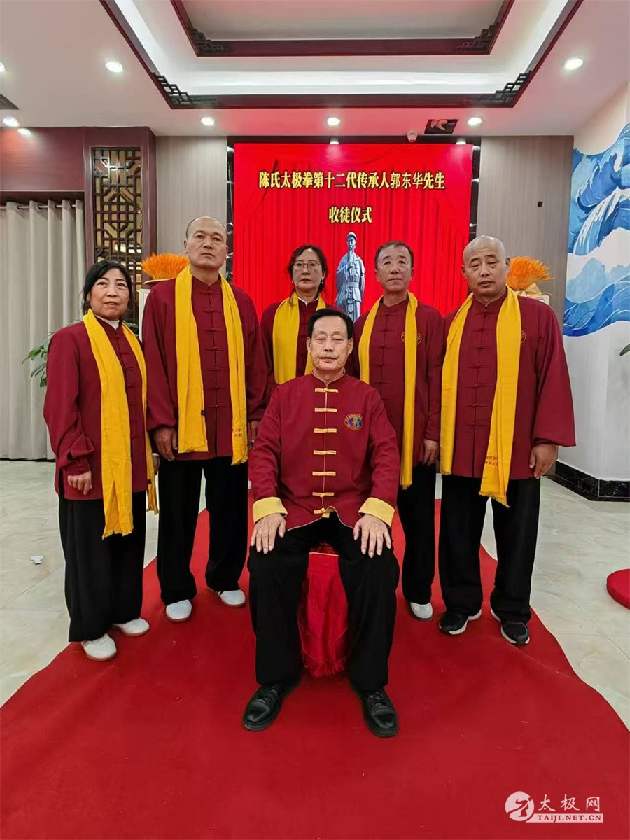 2025年1月5号,陈氏太极拳第十二代传承人郭东华收徒仪式在广西防城港市举行。宫建国、王兴松、史文燕、孙德江、孙广鹏等五名太极拳爱好者经过师门考验并拜师,成为陈式太极拳第十三代传承人,不断延续太极之光。 防城港市武术专委会会长陈庆,陈氏太极拳传承人李小鹏,北部湾太极队队长何国芝等嘉宾出席拜师仪式。 崔静主持此次收徒仪式。收徒仪式遵循传统、简洁庄重。郭东华老师向太极拳始祖陈王廷及历代宗师敬香行礼,以告慰传承有序薪火有继。随后,新入门弟子依次向师父递交拜师帖、行拜师礼、敬拜师茶,师父回礼。在众人的见证之下,收徒仪式圆满礼成。