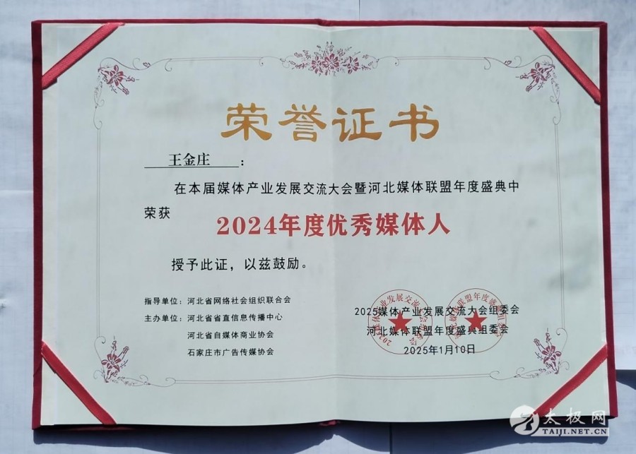 2025 年 1 月 10 日,由河北省网络社会组织联合会、河北省政府省直信息传播中心、河北省自媒体商业协会主办的“河北2025 媒体产业发展交流大会暨河北媒体联盟年度盛典”盛大举办。 此次大会以“媒媒与共,巳巳如意”为主题,汇聚了河北媒体行业精英,共同探讨媒体产业的发展与未来。 来自新华社、河北日报集团、长城新媒体等媒体领导分享媒体行业国家政策发展与未来。 河北媒体产业发展交流大会,举行了荣誉颁发环节,表彰了2024 年度优秀媒体人10名、优秀媒体单位10家,激励广大媒体从业者再接再厉、继续奋进。 著名武术文化学者、太极网全媒体首席武术导师王金庄先生被大会被授予:“2024年度优秀媒体人”。 王金庄,河北保定人。六岁学习家传武术已传200多年传至十代的《王氏武学》,稍长学习保定家乡拳械、摔跤。中学时学习八极拳名家“神枪李书文”1903年传入保定一支的八极拳。1986年赴河南武校专业学习少林拳。1990年学习陈式太极拳。后留校任教,武校升级大学学院后,担任武术学院首任保卫宣传科科长,负责武术学院保卫安全与文稿文件起草撰写,并发挥写作特长开展武术拳论、武术历史、武术人物的研究写作。积极与北方流行的武术拳种戳脚、查拳、华拳等交流学习,兼收并蓄,优势互补,被誉为八极拳名家、陈式太极拳名家、少林拳名家。国际八极拳技艺交流大会、海峡两岸八极拳交流赛事组委会授予:“金牌教练”、“杰出贡献奖”。考评获得国家体育总局武术管理中心、中国武术协会颁发“武术中级教练员”证书。一级武术段位考评员、指导员、裁判员。 与全国众多武术杂志、武术专业网站密切联系研究互动。多年来投稿发表在《武当》杂志、《搏击》杂志、《中华武术》杂志、《武魂》杂志和《中国体育报》、《河北青年报》等国家媒体报社纸媒发稿。河北电视台《精武门》聘为栏目顾问。 与全球最大的太极拳专业平台、成立于1997年的《太极网》较早联系发稿,2014年2月25日,中国武术协会第七次换届大会召开,中午撰稿成文《太极网》为专稿发稿,《太极网》是最早最快报道中国武术协会换届文稿和照片的全媒体。 2015年,任总编出版《中华武术通鉴》。历经八年参与写作编撰的《吴钟八极拳总谱》于2018年出版,吴钟八极拳总谱一书,流传到世界34个国家和地区。 后做武术研究会组织管理工作,深度研究武术知识。被国家媒体称为武术文化学者。并在筹划武术赛事、武术书籍出版等方面成绩斐然。 |