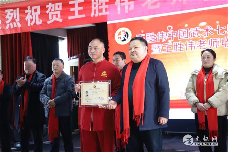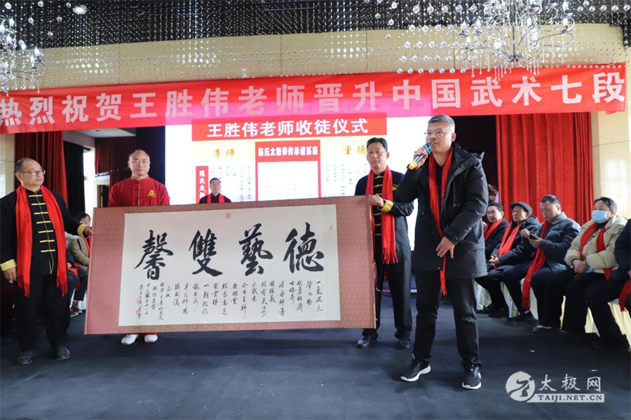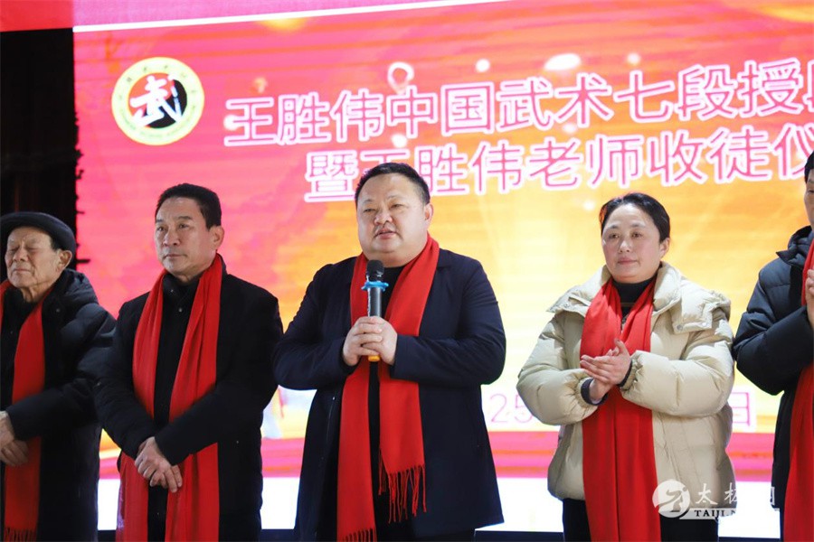 2025年1月20日,王胜伟中国武术七段授段暨收徒仪式于长垣市滨河酒店举行。此次活动嘉宾云集,由吴清龙担任主持,共同见证这一武术界的重要时刻。 长垣市体育运动中心主任付刚,河南省武术协会副主席、新乡市武术协会会长、长垣市武术协会会长高显伟,新乡市武术协会名誉主席、中国武术七段王相勤,河南省武协副会长、长垣体育场武馆馆长高国全,滑县陈式太极拳协会副会长、太极拳名家宋成囤,滑县陈式太极拳协会秘书长、太极拳名家张怀仁,林州市陈式太极拳协会会长、太极拳名家崔法强,长垣市武协副主席、佛汉拳传承人崔卫东,长垣市大红拳训练基地馆长宋博士,河南港方建设有限公司董事长张振忠,长垣市东关小学校长陈国泉,长垣市健身气功协会会长韩士强,长垣市太极拳推广中心副会长、六福会馆总经理魏保峰,长垣市兰亭书画院院长王战涛,以及王胜伟老师的长垣师兄弟秦国学、付援之等众多嘉宾出席。 高显伟致辞 授段仪式上,高显伟发表热情洋溢的致辞。他首先对王胜伟老师成功晋升中国武术七段表示热烈祝贺,高度肯定了王胜伟老师在推广普及太极拳工作中所付出的努力,并殷切期望他能够再接再厉,为武术界培育更多优秀人才。 付刚致辞 付刚在发言中指出,太极拳作为世界级非物质文化遗产,不仅体现了中华民族独特的性格气质,更以其刚柔相济、内外兼修的特点,成为兼具运动与文化双重价值的瑰宝。他赞誉王胜伟老师始终严格要求自己,拳技精湛,追求卓越,尤其在培养文武双全、德才兼备的人才方面不遗余力,为长垣市的各类文化体育活动做出了积极贡献。 王胜伟致辞 王胜伟在发言中,满怀感激之情。他特别感谢长垣市体育运动中心多年来的大力支持与帮助,长垣市武术协会的悉心指导与关心,以及长垣著名武术家王相勤老师的谆谆教诲与提携。同时,他对师父、陈家沟陈式太极拳大师陈照森多年的栽培与教育表达了深深的谢意。王胜伟强调,晋升七段并非终点,而是武术征程上的新起点。他将怀揣更加坚定的信念,在充满挑战与机遇的武术之路上奋勇前行,不断突破自我,为武术事业全力以赴,培养更多优秀弟子和武术人才,激励更多年轻人踏上这充满荣耀与梦想的道路。 本次收徒仪式,冯晨涛、韩一鸣、孙智宸、付书来四位优秀少年,通过重重考核,如愿拜入王胜伟门下。 新入门弟子共同诵读拜师帖,向师父递交拜师帖、行拜师礼、敬茶,师父向新入门弟子回收徒帖、师母为新入门弟子披挂绶带。在众人的见证之下,收徒仪式圆满礼成。 弟子代表冯晨涛发言 王胜伟大弟子李泽林宣读门规戒律 见证人宋成囤发言 见证人宋成囤全程见证此次收徒仪式,希望师父爱护弟子如同子女,弟子尊敬孝敬师父如父母,共同传承弘扬太极文化,将太极事业不断发扬光大。 王占涛贺赠墨宝 此次王胜伟中国武术七段授段暨收徒仪式,不仅是王胜伟个人武术生涯的重要里程碑,更是长垣市武术界的一次盛会,对弘扬中华武术文化、传承太极精神起到了积极的推动作用。 责编:张梦瑶 |