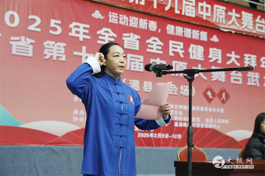 开幕式由温县太极拳武术发展中心主任王敏主持。开幕仪式上,《中华人民共和国国歌》奏响,全场人员庄严肃立,激昂的旋律拉开了活动的序幕。任海林在致辞中强调了本次武术展演活动对传承武术文化、推动全民健身的重要意义,并向所有参与人员表示欢迎与感谢。