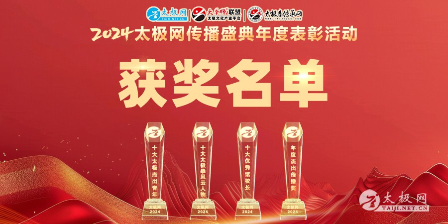 太极网创立于1997年,领衔太极文化传播推广近30载。为积极挖掘、表彰、宣传每年度在太极拳传播推广领域表现突出的传承人、拳师,连续多届发起举办“太极网传播盛典年度表彰活动”,依托“互联网+太极拳”,与广大拳友共同见证太极拳发展的蓬勃生机。 太极风靡世界,离不开广大优秀传承人、拳师的辛勤耕耘和付出,他们是太极的使者,将太极的种子播撒各地,开花结果。太极青年军彰显着朝气和能量,塑造太极拳的年轻态与时尚化。各地太极拳馆校长依旧是太极拳的中坚力量,传拳育人,造福大众。功名兼备的太极风云人物,矢志不渝传承与推广,享誉拳界。在太极的大千世界里,因为有了楷模和榜样,传承有序,推广有方,弘扬正能量。 传播盛典既是对过去一年杰出传播者的褒奖与鼓励,也是对榜样的树立、文化的弘扬。活动经过线上申报和推荐,组委会累计收到报名人数百余人,依照参评条件进行严格审核和筛选,确定入围名单,再综合考量拳师武德、传拳成绩及推广贡献等,最终择优评选出“年度十大”荣誉,保证活动的权威性和严谨性。 根据审核结果,经组委会慎重研究决定,评选出2024年度“太极拳风云人物”10人、“年度杰出传播奖”10人、“优秀太极拳馆校长”5人、“太极杰出青年”5人。颁奖仪式定于太极网第十一届颁奖盛典期间。现将2024太极网传播盛典年度表彰人物名单公布如下(排名不分先后): 太极拳风云人物 陈小春:陈氏太极拳第十二代传人,师承陈小旺。主编了《兴文武术•太极拳画册》一书,其个人事迹和拳照被收录在《当代太极拳名家》《中国武林人物志》《武行天下》《中华民间武师名录》之中。具有近20年的太极拳、武术教学经历,培训学生近700余人,许多学生和弟子曾获得过全国、省、市太极拳、武术比赛取得优异成绩。 张天鸾:杨氏太极拳第六代传人,师承陈龙骧、李敏弟。武氏太极拳第6代传人,师承钟振山。中国武术七段,2005年8月成立了烟台武协世秀太极苑,被大家誉为“武林名拳坊”。2015年,创建“正道传统太极拳馆”,几次到过美国、新加坡、马来西亚等国进行拳术交流。经她教授的太极拳爱好者已经达上万人。 杨成英:陈氏太极拳第十二代传人,师承万文德。太仓市非物质文化遗产项目代表性传承人,国家一级社会体育指导员,中国武术六段。太仓市武术协会原副主席,太仓市陈式太极拳研究会常务副会长,江苏省太极拳专业委员会委员。2001年7月获江苏省百名优秀社会体育指导员。在全国武术之乡建设中,被评为金牌教练员。曾在国际、国内的各类武术比赛中荣获大奖,并多次担任市武术比赛及国家老年太极拳观摩比赛的裁判长及裁判工作。 张 见:陈氏太极拳第十二代传人,师承陈小旺。现任北京陈小旺太极拳研究总会会长,陈家沟陈氏太极拳协会北京分会会长,正鼎太极馆馆长。善于将太极拳与中医融合,被太极拳习练者公认为“太极医生”。 李万国:杨氏太极拳第六代传人,师从丁水德。国家武术一级裁判员,中国武术六段。曾任黑龙江省齐齐哈尔市武术协会副主席,现任黑龙江省国云轩德太极拳俱乐部主任兼总教练,海南省三亚市营养学会太极拳养生顾问,现有北京通州国云轩德太极队、北京朝阳国云轩德太极拳队,海南省陵水国云轩德太极拳队,黑龙江省齐齐哈尔市劳动湖、尚德公园国云轩德太极拳队。公益性传播太极拳受众近9万人。快手国云太极粉丝8万多人。 张 军:陈氏太极拳第十三代传人,师承陈沛菊。孙氏太极拳第五代传人,师承张子臣。国家一级武术裁判员,一级社会体育指导员,中国武术段位制考评员,太极拳高级拳师。现任鹤壁市太极拳协会主席、鹤壁市武术协会副主席兼秘书长、市健身气功协会执行主席兼秘书长、鹤壁太极拳传习馆馆长。已授学员千余人。 李家魁:陈氏太极拳第十二代传人,师承陈庆州。中国武术六段。现担任上海铁路局陈氏太极拳陈庆州功夫研究会副会长兼教练。 屈永升:陈氏太极拳第十二代传人,师承李雨樵。中国武术六段、国家一级武术裁判员、中国武术协会段位制考评员。现任香港雨樵太极研究会副会长、苏州市校园武术专委会副秘书长、吴中区校园武术专委会秘书长、吴中区武术协会、健身气功协会副秘书长、吴中武协东山分会会长。已授学员三万余人。 王 蓝:杨氏太极拳第六代传人,师承丁水德。中国武术六段,国家一级武术裁判员,国家级社会体育指导员,黑龙江省专业太极拳一级教练员。2016年8月参加香港第十一届国际武术比赛。共荣获五项“全能冠军”。在全场比赛12个全能冠军决赛中,勇夺“王中王”称号等。现任齐齐哈尔市德蓝轩德太极队的创办人兼总教练。 简拥军:陈氏太极拳第十三代传承人,先后师承万明群、张鹏老师。国家级社会体育指导员,中国武术六段,一级教练员,一级裁判员。高安市太极拳协会创始人、副会长兼秘书长,高安市简易太极功守道健身俱乐部创始人兼总教练,高安市总工会太极拳培训中心总教练。在太极拳界享有较高声誉,20年的传拳经历,传授学员13000余人,入室弟子众多。 优秀太极拳馆校长 董志鸿:陈氏太极拳大架第十二代传承人,师承朱天才;陈式太极拳小架第十三代传承人,师承陈永福。中国武术六段,中国武术段位制考评员及指导员。南宁市南宗乐道太极文化传播有限公司董事长、广西南宗乐道太极院院长