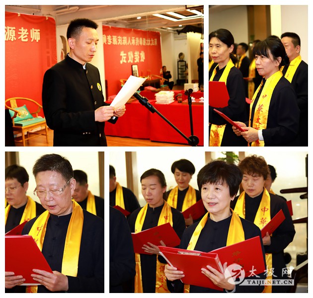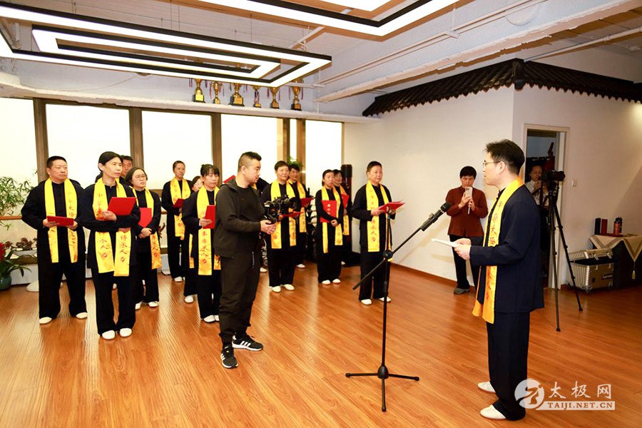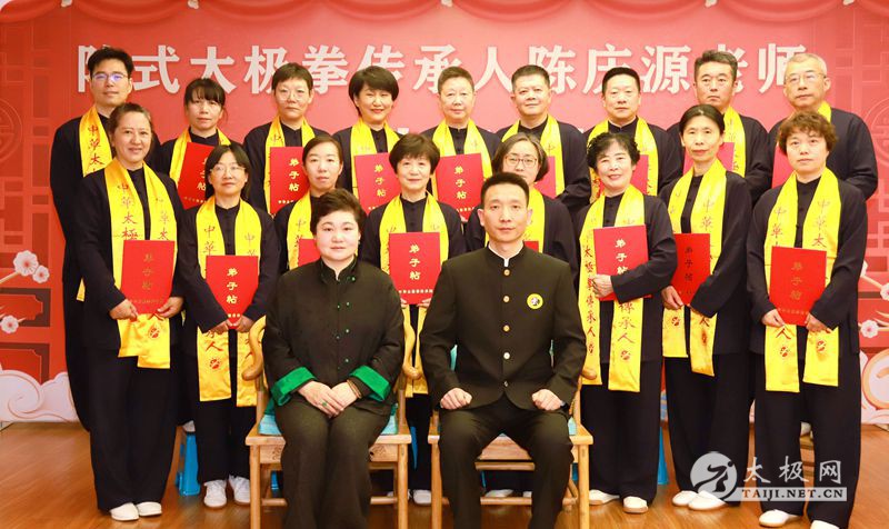 2025年3月2日,陈氏太极拳第十二代传人陈庆源老师开山收徒仪式于北京举行,邓小永、王丽、张雪超、李立萍、李颖、郑玉兰、张咏梅、冯亚男、闫娜、王倩、吴茜、龙淑清、温静、徐认文、县银霞、沈永彬、洪楚南等17位太极拳爱好者拜入陈庆源老师门下,成为陈氏太极拳第十三代传人,为陈氏太极拳的传承与发展注入新的活力! 仪式在庄重典雅的氛围中拉开序幕。陈庆源老师偕同夫人,怀揣着对先辈的深切敬仰,向太极拳始祖陈王廷及历代先师敬香行礼,告慰祖师收徒授艺,香火有继,传承有序。拜师仪式上,新弟子们按照传统礼仪,依次上前向师父陈庆源递拜师贴、行拜师礼,敬拜师茶,师父回帖、披挂绶带。 弟子张勿急代表发言,情真意切地表达了对陈老师的感激之情,并表明了努力学习太极拳、传承太极文化的坚定决心。 陈老师的发言饱含深情且意味深长,他深刻剖析了太极拳的文化内涵与精神价值,对弟子们提出了严格的要求并指明了清晰的学习方向。随后他带领弟子们一同宣读门规戒律,进一步增强了弟子们作为太极拳传承者所肩负的责任与使命。 仪式尾声,陈老师与夫人带领众弟子向先祖郑重叩首,在众人的见证下,收徒仪式圆满礼成。本次收徒仪式简洁庄重,每个环节都洋溢着对太极拳文化的深厚热爱与与传承的责任感。相信在陈老师的悉心教导下,弟子们定能在太极拳的道路上不断精进,将陈式太极拳的精髓传承并发扬光大。