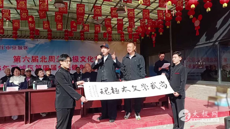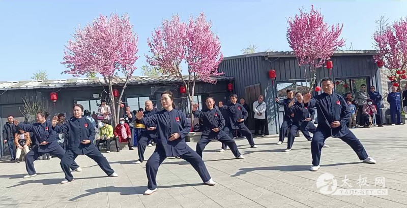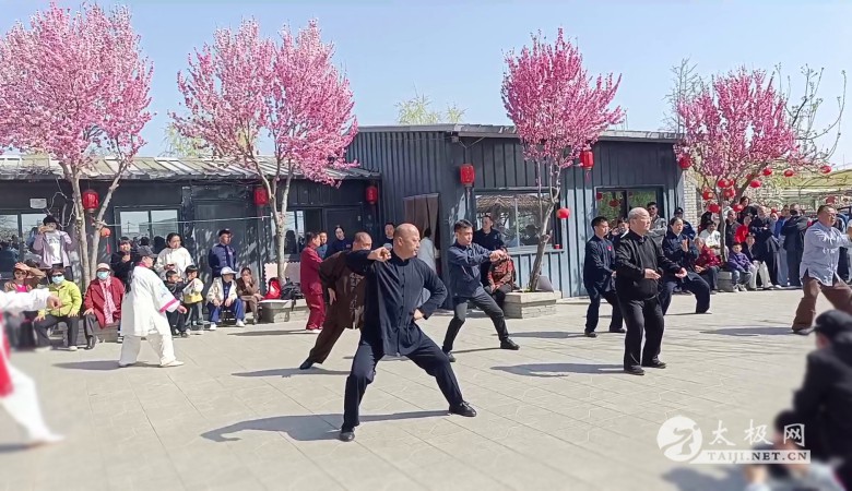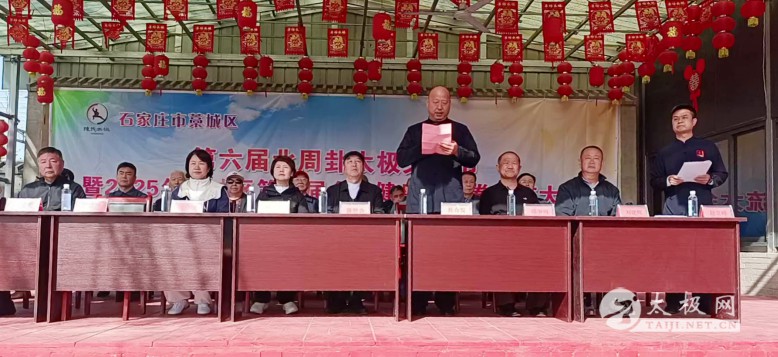 2025年4月6日,清晨的北周卦太极禅林内国歌嘹亮,第六届北周卦太极文化节暨藁城区第四届全民健身太极拳交流大会于上午9时正式拉开帷幕。五百余名太极拳爱好者齐聚千年古邑,以拳会友,共襄传统文化与全民健身的盛会。 北周卦村作为太极拳的重要传承地,历史悠久、底蕴深厚。这里不仅是地方戏曲“乱弹”的发源地,更孕育了登山家何玉龙(曾是太极学子)、北大才子刘振文等杰出人物。近年来,村庄依托深厚的文化积淀,发展为华北地区最大的变压器生产基地,实现了传统与现代的交融。活动现场,古韵悠长的太极文化与蓬勃发展的现代产业交相辉映,彰显出“人杰地灵、活力迸发”的乡村新貌。 藁城区人民政府副区长刘宇岚、中国硬笔书法协会副主席陈联合、石家庄市卫健委纪委书记马广英、 石家庄市经济开发区建设局局长杨建辉、藁城区常安镇人民政府镇长兰禾、原藁城区政协副主席邓文明、原藁城区融媒体中心主任李文凯等。陈氏太极拳第十二代传承人杨合发、牛俊杰、项争鸣、杜国强、张瑞峰、刘富华、孙迎春、夏建刚、马军林、张金戈及杨氏太极拳传人范云雪等出席开幕式。大会由石家庄武术协会陈氏太极拳专委会副会长、副秘书长赵立峰主持。 本届文化节以“踏春赏花练太极,相互交流增友谊”为主题,开幕式上刘建辉致欢迎词,对来宾表示热烈欢迎并展望活动。石家庄市武术协会主席杨合发讲话,强调太极拳在全民健身和文化传承中的重要作用。刘宇岚副区长宣布活动正式开始。新时代鼓舞团与藁城区实验小学的《好日子》《武韵山河》等节目点燃全场热情;石家庄武术协会主席杨合发、承德市武协主席项争鸣等太极名家及陈氏、杨氏传人同台献艺,为观众呈现了精彩绝伦的集体展演与名家表演,一招一式尽显太极神韵。随后的集体展演中,太极拳爱好者们以行云流水的招式展现刚柔并济之美,赢得阵阵喝彩。 活动特设文化大讲堂,石家庄市武术协会主席杨合发以《浅谈修炼太极拳的重要途径》、承德市武协主席项争鸣以《太极拳运动规律与螺旋缠绕、避实就虚之关系》为题,深入浅出地解析太极哲理,为爱好者们奉上一场理论与实践交融的太极盛宴。