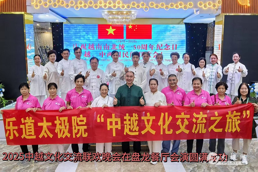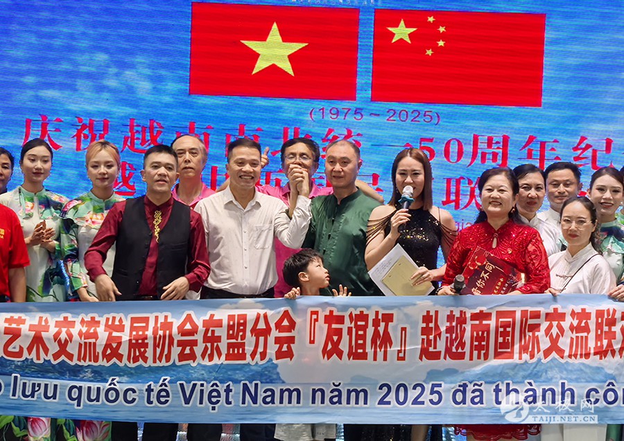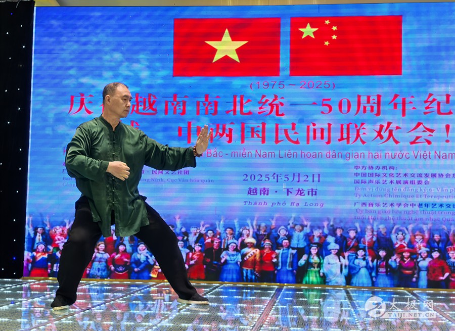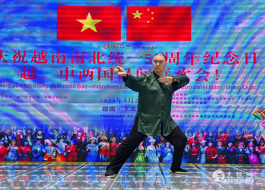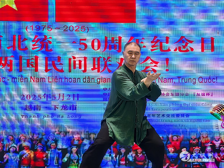 2025年5月1日至3日,在“五一”国际劳动节与越南南北统一50周年纪念日之际,为庆祝2025年“中越人文交流年”,应越南河内对外友好交流办公室邀请,中国广西南宗乐道太极院代表团应邀赴越南开展“太极传韵·中越同心”主题文化交流活动。两国艺术家与民众齐聚越南下龙市与河内,以太极为媒,共叙友好情谊,续写中越传统友谊新篇章。 5月1日,越南下龙湾景区游船之上,广西南宗乐道太极院院长董志鸿带领代表团成员展演太极功夫。碧波荡漾间,刚柔并济的太极招式与山水相映成趣,吸引越南民众与国际友人驻足观赏。沙滩树荫下,代表团随机表演的太极扇舞更是赢得阵阵喝彩,展现中华传统文化的独特魅力。 5月2日,中越两国民间文化交流活动在下龙市盛大举行。山水秀美的下龙湾景区迎来了数百名文化和体育爱好者。越南派出高规格文艺团体参与表演,越南下龙湾港口区相关领导阮青山也出席了此次盛会。 活动现场,广西南宗乐道太极院的成员们与越南民众一同沉浸在欢乐的氛围中。在游船上,广西南宗乐道太极院院长董志鸿老师与越南民众及国际友人深入交流中华太极文化,分享太极的哲学思想与健身功效。而在下龙湾景区的沙滩上、树荫处,代表团成员随机展演精湛的太极功夫,行云流水的动作赢得围观人群阵阵掌声,让越南民众近距离感受到了太极的独特魅力。 当晚华灯初上,中方代表团与越南文艺团体开展文艺交流会演。董志鸿老师登台献艺,一套大气沉稳、刚柔并济的太极拳功夫,令现场观众纷纷举起手机抢拍摄录,大家翘起大拇指连连称赞。太极院的其他代表团成员随后进行的太极功夫扇展演,同样赢得掌声如潮。太极功夫与越南文艺表演相互辉映,将现场气氛推向高潮,进一步加深了两国人民对彼此文化的欣赏与理解。 5月3日,广西南宗乐道太极院代表团来到越南首都河内。他们参观了越南军事博物馆,了解越南的历史与军事文化;在巴亭广场,代表团与当地热爱太极的民众一起交流,共同弘扬中华传统文化。董老师还接受了中越文化交流活动组织方的采访,分享此次交流活动的感受与体会。在河内的行程中,代表团深切感受到了越南社会经济发展的美好前景,也让太极文化在越南首都的土地上播撒下新的种子。 董志鸿老师接受中越文化交流活动组织方采访 此次广西南宗乐道太极院赴越南开展的文化体育交流活动,通过太极表演、文艺联欢和民间互动等多种形式,进一步深化了中越两国的传统文化交流,受到越南民众的热烈欢迎。中越两国山水相连,传统友谊源远流长。此次交流活动为 “中越人文交流年” 增添了浓墨重彩的一笔,也必将推动中越友谊在新时代不断向前发展,续写新的华章。 责编:小田 |