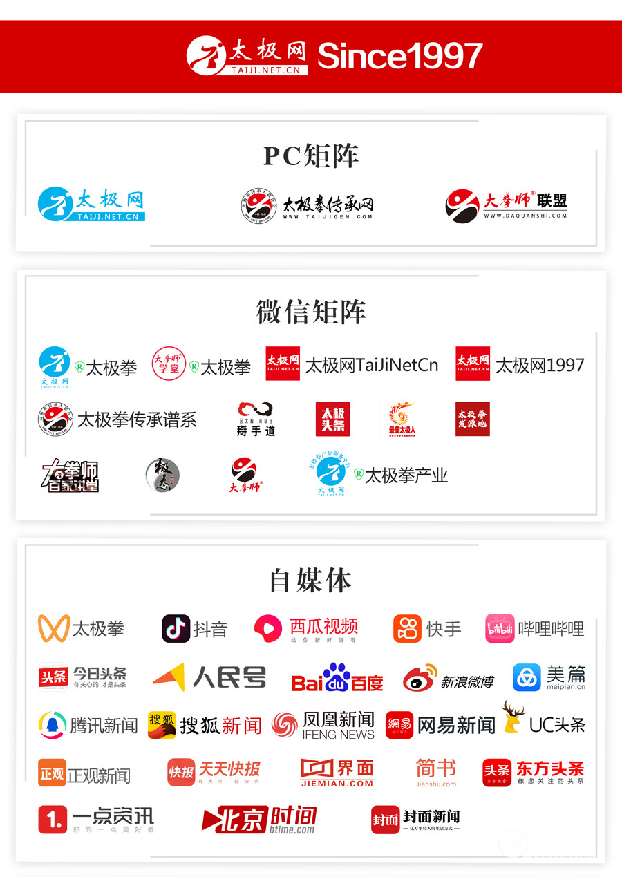 太极网微信矩阵粉丝数百万,官微“太极拳”,每日更新太极拳资讯、文章、视频。