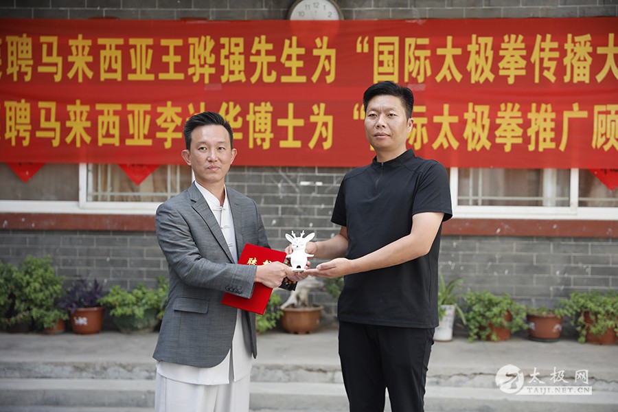 2025 年 6 月 4 日,太极拳发源地河南温县陈家沟迎来文化交流盛事,来自中马两国的文化界、武术界代表相聚太极圣地,在陈家沟国际太极院共同见证 “国际太极拳传播大使”“国际太极拳推广顾问” 等荣誉称号的授予时刻,以实际行动推动太极文化在 “一带一路” 框架下的国际化传播。 马来西亚方面,槟城州文具纸品商公会会长、马来西亚文具书业联合总会副总会长王骅强,清华大学人文学院绿色世界公众史学研究中心顾问、马来西亚[环环相扣]生态文明传播中心会长李达华博士,马来西亚陈炳太极拳学院院长、国家太极拳总会理事长高丞鸿,吉隆坡武术总会副秘书长谭敬贤等组成访问团;太极拳发源地温县方面出席的嘉宾有温县县委统战部副部长张兵,县太极拳武术文化发展中心党组书记任海林,陈家沟村党支部书记陈冲,以及陈家沟太极拳协会会长、国际太极院院长陈炳等太极拳代表。 马来西亚槟城州文具纸品商公会会长王骅强因长期致力于中马文化交流、推动太极拳在马来西亚的传播,被授予“国际太极拳传播大使”称号,温县统战部副部长张兵为其颁发证书并合影。李达华博士则因在生态文明与太极文化融合领域的贡献,获颁“国际太极拳推广顾问”证书,陈家沟村党支部书记陈冲为其颁发证书并合影。 仪式上,陈家沟国际太极院优秀学员带来精彩太极拳表演,刚柔并济的招式尽显太极魅力。此次仪式不仅是对马来西亚方面太极文化传播者的肯定,更架起中马文化交流新桥梁,推动太极文化走向更广阔舞台,期待未来太极文化在国际交流中绽放更耀眼光芒。 责编:小田 |