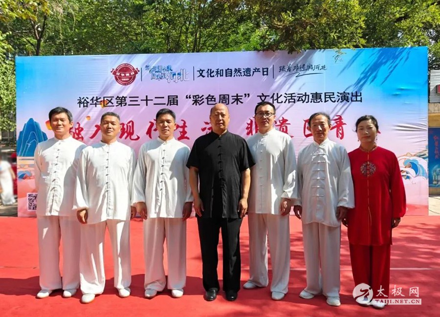 2025 年6月17日,由石家庄市裕华区文化广电体育和旅游局主办,裕华区文化馆、裕华区图书阅览中心、东苑街道办事处、尖岭小区社区、裕华区非物质文化遗产保护协会承办的裕华区第三十二届 “彩色周末” 文化活动惠民演出,在石家庄尖岭小区广场精彩上演。本次活动以 “融入现代生活,非遗正青春” 为主题,非遗项目【马虹传陈氏太极拳】倾情参与,为这场文化盛宴注入了独特魅力。 当传统的非遗文化邂逅充满活力的现代生活,一场别开生面的文化传承之旅就此启程。河北省虹发太极拳研究院受邀前来,其精心组织的精英表演队以精湛技艺与饱满热情,为观众带来《太极神韵》展演这一视觉与心灵的双重盛宴,一招一式间尽显太极拳的刚柔并济与深邃内涵。与此同时,石家庄陈氏太极拳专业委员会建华城市广场传授站也应邀助力,其带来的陈氏太极剑展示精彩绝伦,剑影翻飞间尽显灵动飘逸,让现场观众仿佛置身武侠世界,深切领略到太极文化的博大精深。 本次活动秉持 “非遗正青春” 的创新理念,推动【马虹传陈氏太极拳】走出传统武馆的局限,融入市井生活的脉络。它不再是教科书里凝固的传统符号,而是变身为跃动在烟火人间的青春节拍,以贴近市民生活的姿态吸引着年轻群体的关注。这一实践既践行了 “文化惠民” 的初心,又为非遗传承开拓了现代路径,让传统文化与现代生活深度交融,焕发出蓬勃的生机与活力。