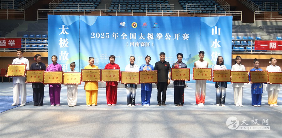 2025年6月22日,为期3天的2025年全国太极拳公开赛(河南赛区)在完成所有赛程后,于今日上午在陈家沟举行颁奖仪式。国家体育总局武术运动管理中心社会活动部副主任张路平、竞赛纠纷解决委员会主任康戈武、竞赛纠纷解决委员会委员栗胜夫、和有禄,以及总裁判长李艳君等领导嘉宾出席仪式,共同见证各奖项的揭晓。 出席颁奖仪式领导嘉宾 总裁判长李艳君宣布比赛成绩 竞赛纠纷解决委员会主任康戈武宣布优秀裁判员、体育道德风尚运动队名单 李艳君为“优秀裁判员”颁发证书 张路平颁发“体育道德风尚运动队” 康戈武颁发“集体项目一等奖” 栗胜夫颁发“集体项目二等奖” 和有禄颁发“集体项目三等奖” 本次公开赛吸引了来自全国各地的80支太极拳代表队共1000余名运动员参赛,选手们在多种太极拳套路及器械项目中展开激烈比拼。赛场上,运动员们动作行云流水、刚柔并济,既展现了太极拳 “以柔克刚” 的传统哲学内涵,也体现了现代竞技体育的规范性与专业性。赛事的成功举办,为太极拳爱好者搭建了交流展示的平台,进一步推动了太极拳运动在全国范围内的普及与发展。 2025 年全国太极拳公开赛(河南赛区) 体育道德风尚奖裁判员 宋绍鹏、牛 龙、孙 博、霍亚丽 徐家合、郑彩霞、郭巾钶 体育道德风尚奖运动队 河南省三队 温县陈正雷太极拳馆 莘县太极拳馆 郑州绿城太极拳馆 贵阳太极拳分会祥瑞太极健身队 延安市太极拳协会 范县太极协会 河南交通投资集团有限公司信阳分公司 2025年全国太极赛公开赛(河南赛区) 成绩公告单 集体24式太极拳 一号场地 第1组 河南省二队 一等奖 绵阳清风太极辅导中心 二等奖 河南交通投资集团有限公司信阳分公司 三等奖 安徽宣城太极拳协会敬亭之春太极队 三等奖 集体42式太极拳 一号场地 第2组 河南三队 一等奖 巩义市太极拳协会 二等奖 集体八法五步 一号场地 第3组 河南一队 一等奖 商丘工学院 二等奖 集体32式太极剑 一号场地 第4组 河南五队 一等奖 绵阳清风太极辅导中心 二等奖 安徽宣城太极拳协会敬亭之春太极队 三等奖 商丘工学院 三等奖 集体42式太极剑 一号场地 第5组 河南省六队 一等奖 巩义市太极拳协会 二等奖 集体太极扇 一号场地 第6组 河南省四队 一等奖 温县朝霞太极拳推广中心 二等奖 贵阳太极拳分会祥瑞太极健身队 三等奖 集体其他太极拳 二号场地 第1组 河南省太极拳协会 一等奖 温县王战军太极协会 一等奖 温县陈家沟国术馆 一等奖 温县郑彩霞太极拳馆 一等奖 博爱县武术之乡 二等奖 东武太极研修院济宁分院 二等奖 温县老年人体育协会太极拳队 二等奖 温县朝霞太极拳推广中心 二等奖 巩义太极文化研究会 三等奖 贵阳太极拳分会祥瑞太极健身队 三等奖 天武极太极院 三等奖 淇胜太极 三等奖 河南省四队 弃权 集体其他太极器械(含器械和拳术混编) 二号场地 第2组 南阳市太极拳代表队 一等奖 河南省郑州金水区军怡郑大刀辅导站 一等奖 先天太极联盟八队 一等奖 温县陈正雷太极拳馆 一等奖 先天太极联盟十队 二等奖 巩义太极文化研究会 二等奖 先天太极联盟十一队 二等奖 先天太极联盟三队 二等奖 先天太极联盟五队 三等奖 先天太极联盟二队 三等奖 先天太极联盟西宝丰学校 三等奖 温县老年人体育协会太极拳队 三等奖 温县和式太极拳学院 三等奖 责编:豪杰 |
