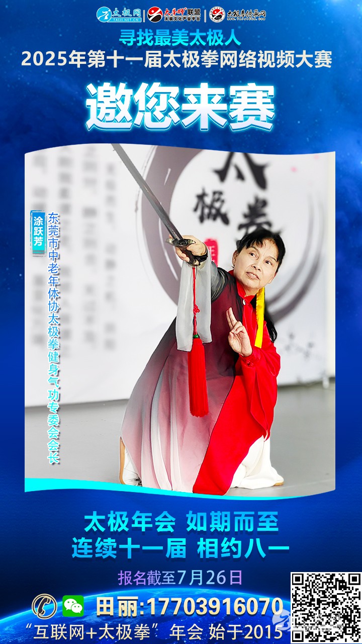 ![]() 随着“寻找最美太极人——2025年第十一届太极拳网络视频大赛”展播日益临近,东莞市中老年体协太极拳健身气功专委会在涂跃芳老师的带领下,正紧锣密鼓筹备参赛作品,以太极之韵展现中老年群体的风采与活力。 太极网于2015年首创“寻找最美太极人——国际太极拳网络视频大赛”,至今已连续成功举办十届,作为互联网 + 太极拳领域的标杆赛事,去年第十届便吸引了超 4000 名参赛者,线下颁奖典礼更是 700 余人齐聚,盛况空前。2025 年第十一届赛事全面升级,不仅涵盖个人项目、集体项目、对练项目,更增设创意表演项目,为不同层次、风格的太极爱好者提供了多元展示舞台。 涂跃芳老师拥有丰富的太极拳教学经验和深厚的武术功底。在备战过程中,她根据每位成员的特点和基础,制定了个性化的训练方案,从基本动作的规范到拳法套路的连贯流畅,再到精气神的展现,都进行了细致入微的指导。专委会成员们热情高涨,积极投入训练,大家相互交流、相互学习,力求在比赛中展现出最佳状态。