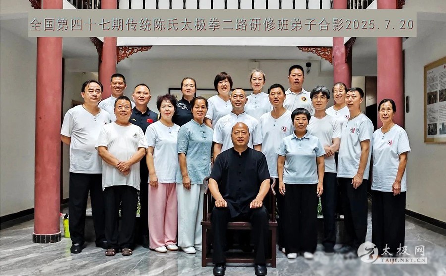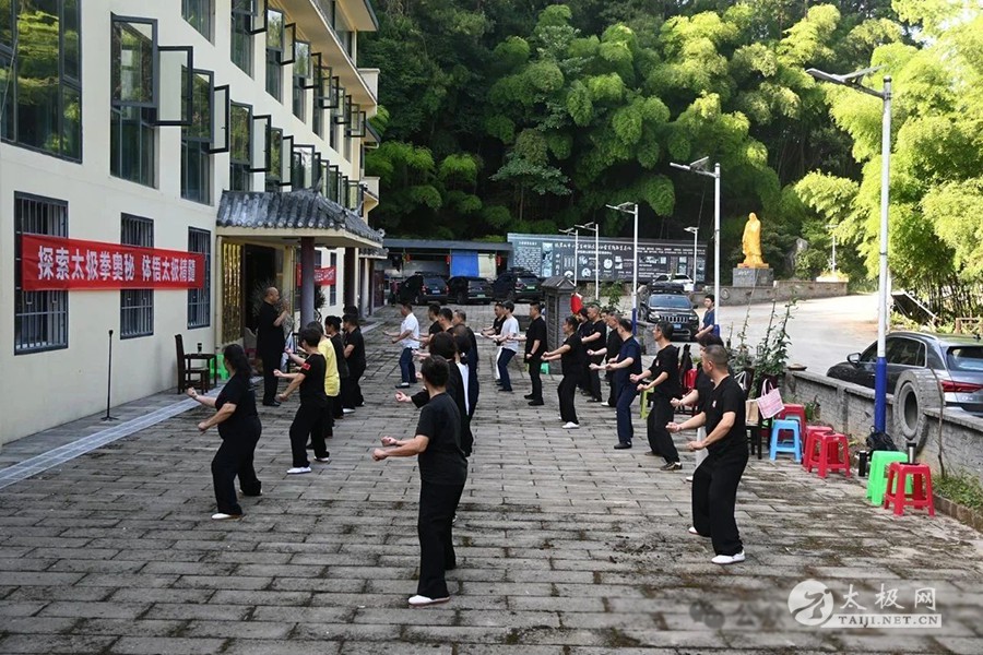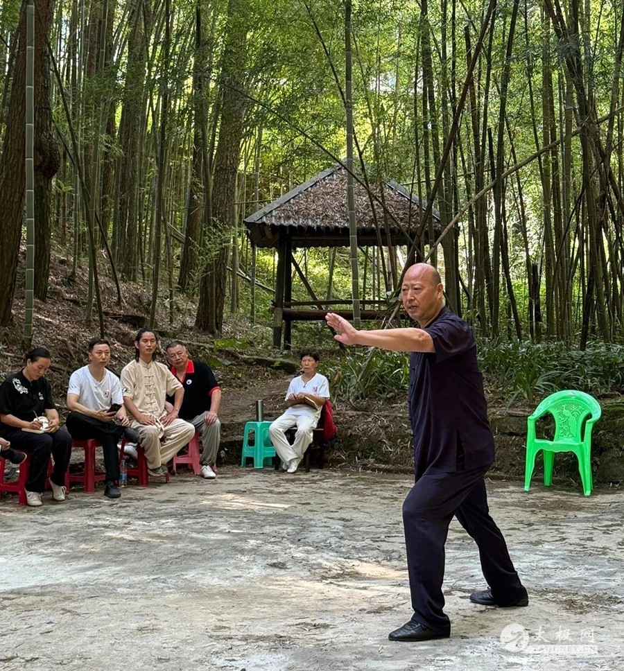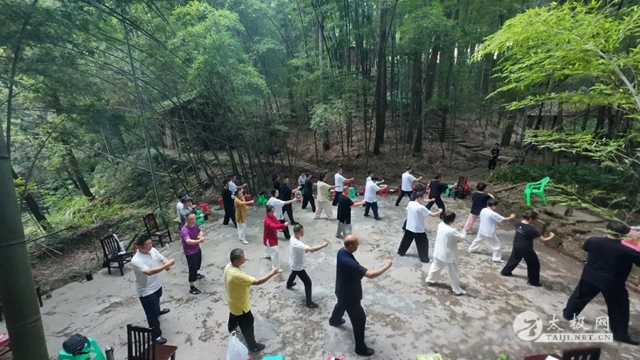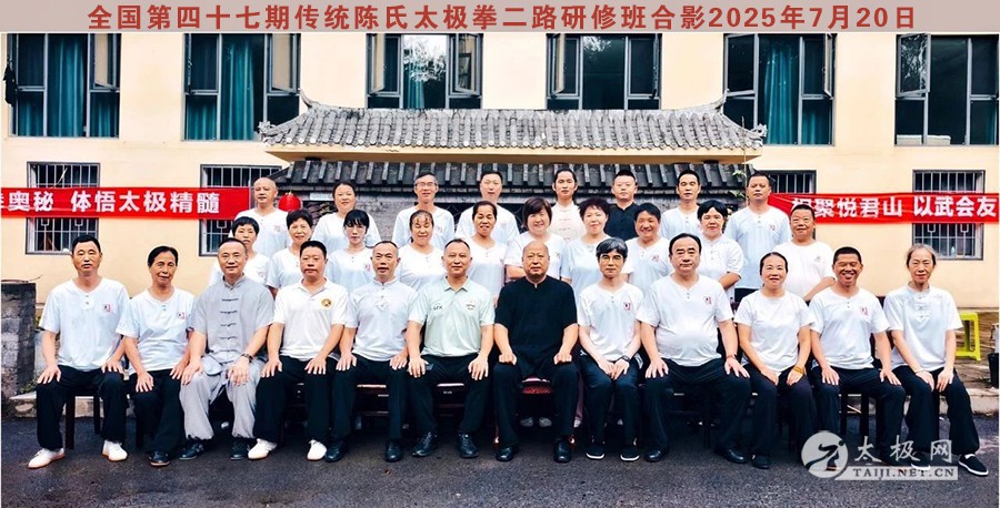 2025年7月21日,全国第四十七期传统陈氏太极拳二路炮锤及推手研修班在悦君山顺利开班并圆满结业。来自河北、江苏、江西、云南、四川、甘肃、陕西、安徽、浙江及重庆市九龙坡、开州、云阳、垫江、万州等地的三十余名拳友齐聚云雾缭绕的君山之巅,于清风晨雾中站桩养气,在松涛蝉鸣里缠丝走圆;二路炮锤爆发如龙,推手化发似浪,彼此以拳会友,共悟松沉弹抖之劲。十日研修,汗水与笑声交融,结业非终点,乃新程之始;愿悦君山十日之得,化作每日拳架里的一缕晨曦、一声松沉,与山河同脉,与岁月同频。 晨练·桩功 清晨阳气升,站桩养丹田,松沉固本,一日精神稳。桩功晨练通过静立松沉,可促进气血循环、增强下肢力量与关节稳定;调节自律神经,改善睡眠与情绪;培补丹田元气,提升免疫力;矫正体态,缓解颈腰疼痛,长期坚持使身心稳静、精力充沛。 每天清晨5:30左右,杨合发院长开始带领拳友们站桩,体悟循序渐进的过程。 晨练·缠丝功 晨曦初照,缠丝功起:立身中正,舌抵上腭,以腰脊为轴,小指领劲走螺旋;关节节节放松,顺逆圆转,劲如抽丝不断,意随气行,开胸沉裆,一圈一圈涵养丹田,周身通透,一日精神由此生。 晨练·陈式太极拳老架一路 日出练一路,松沉立身,缠丝贯劲;顶劲领、裆劲撑,步稳胯旋,式式绵缓如行云,开合呼吸合自然;百骸通达,气血匀和,心境澄明,一日清朗自拳生。 晨练·陈式太极拳老架二路 晨曦练二路,松活蓄弹抖;腰脊瞬旋,肩胯齐炸,劲如炮发;步沉身灵,势势连环,开合如雷,一身阳气随拳爆燃,精神振发,全天应变迅捷。 二路71式炮锤研修班 这期二路炮锤研修班,每日由学员列队始,班长口令一声“敬礼”,全体并步立身行礼;随即开启当日内容的学习。杨院长精讲了71式每个招式的动作要领和细节,课堂习练时穿梭于学员行间,托肘调胯,示范疑难点,学员之间互学互检,慢镜比照,纠肘、调胯、圆裆。夕照收势,班长再令“敬礼”,全体并步立身,拳抱丹田,礼毕方散。 传统陈氏太极拳二路71式炮锤(杨合发先生分动领练) 推手研修,悟“松、听、化、合、发”五字:搭手如秤准,听劲细若丝;身松胯沉,化劲于无形;不顶不丢,合在骨缝;丹田一震,发于毫厘。推手即推心,胜己始胜人。