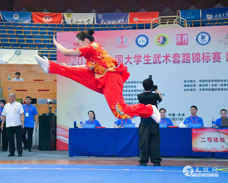 以武育人启新程,青春托举强国梦 2025年中国大学生武术套路锦标赛在津开赛 (特邀记者钱承飞)7月27日至31日,2025年中国大学生武术套路锦标赛(甲乙组)在天津市武清区盛大举行,来自全国各地241所高校的2000余名运动员、教练员齐聚一堂,共同参与这场武术盛会,参赛人数创下历史新高。 本次锦标赛由中国学生体育联合会主办,中国学生体育联合会大学武术分会执行,天津市武术协会承办。 27日上午开幕式在庄严的国歌声中拉开帷幕。出席开幕式的领导和嘉宾有:国家体育总局拳击跆拳道运动管理中心党委书记、主任张智,教育部学生体育协会联合秘书处工会主席、中国空手道协会副主席王晓毅,中国学生体育联合会大学武术分会主席、天津开放大学校长杜长有,中国学生体育联合会空手道分会主席、保定学院党委书记胡连利,中国学生体育联合会纪律监督委员会主任蓝涛、中国学生体育联合会大学武术分会秘书长、国际武医联合会执行主席苏长来教授,天津市教育委员会副主任郝奎刚、天津市武清区区委副书记、区长许颖悟,天津市武清区体育局党组书记、局长张迎新,天津市武清区办公室主任王国成等人。 中国学生体育联合会大学武术分会主席杜长有致欢迎辞说,武术作为中华民族的传统瑰宝,承载着深厚的文化底蕴和民族精神。希望运动员们能传承武术精神,展现青春风采。天津市教育委员会副主任郝奎刚讲话中强调了赛事对于推动武术运动在高校普及、弘扬中华优秀传统文化的重要意义。天津市体育局二级巡视员王欣也致辞表示祝贺。 运动员代表、中国人民公安大学学生杨济源,裁判员代表、世界武术冠军马灵娟分别宣誓,承诺遵守比赛规则,秉持公平公正、顽强拼搏的精神。随后,天津市武清区人民政府区委副书记、区长许颖悟宣布比赛开幕。 本届赛事竞赛监督委员会主任苏长来、仲裁委员会主任花妙林、总裁判长徐彩桐。拥有国际级、国家级武术裁判证书,包括多名世界武术冠军、亚运会武术冠军的裁判员队伍。比赛项目涵盖了传统武术与现代武术的多个类别,包括长拳、刀术、剑术、棍术、南拳、南刀、南棍、太极拳、太极剑等全能项目,以及形意拳、八卦掌、八极拳等丰富多样的传统拳术和器械项目。在项目设置上有所创新,为了更好地传承和推广中华传统武术文化,比赛特别增设了二十四节气和主动健康等健身养生功法,旨在引导大学生们关注身心健康,体验传统武术在养生保健方面的独特魅力。这些功法动作柔和缓慢,注重呼吸与动作的配合,既能够强身健体,又有助于调节身心、缓解压力,非常适合大学生群体学习和练习。同时,唐手拳首次被纳入本次锦标赛的比赛项目。它起源于中国武术,后传入琉球并结合当地武术发展而成。它以掌法为主,擒拿见长,腿法暗藏,拳法肘法辅助攻击。此次唐手的亮相,不仅为赛事增添了独特的文化色彩,也为大学生们提供了一个了解和接触这一古老武术流派的宝贵机会,有助于推动唐手在高校中的传播与发展。浙江越秀外国语学院学生黄天一赛后接受媒体采访时说:“我之前主要练竞技太极拳,这次练唐手拳感到新奇,它的一些动作和发力与其他传统武术拳种既有通性也有不同。在比赛中我也看到了很多练习唐手拳的高手,学到了很多技巧。” 中国大学生武术套路锦标赛是国内大学生武术领域的顶级赛事,不仅为广大武术爱好者提供了一个切磋技艺、展示自我的平台。 (陈九志/摄影) |