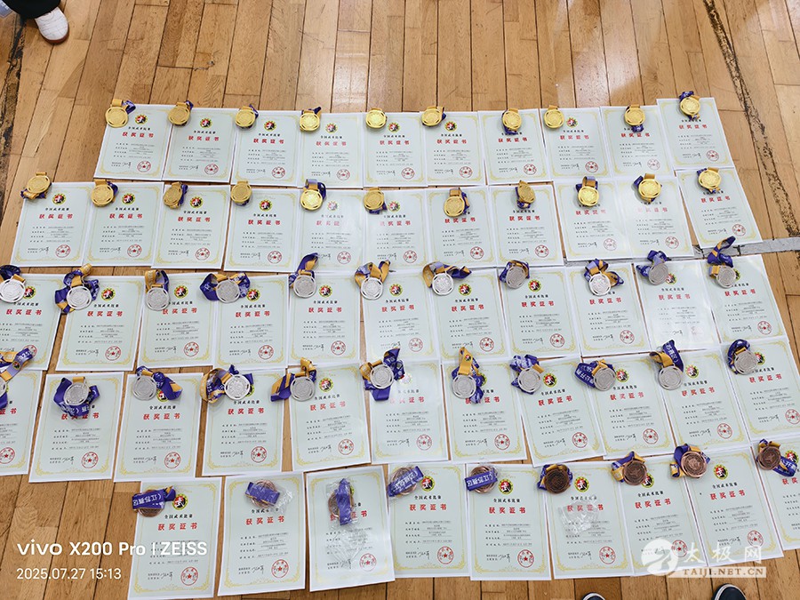 2025 年 7 月 26 日上午,全国太极拳公开赛(江苏赛区)开幕式在江苏师范大学体育馆隆重举行,来自全国各地的 91 支代表队、1200 余名太极拳爱好者齐聚徐州。经过为期两天的交流比拼,7 月 27 日,赛事圆满落下帷幕。 蔡俊玉大汉太极推广中心代表队表现抢眼,成为赛场焦点。该代表队此次共派出 29 名运动员参赛。经过两天的激烈角逐,队员们凭借扎实的功底与稳定的发挥,最终收获颇丰:一举夺得金牌 24 枚、银牌 25 枚、铜牌 9 枚,以 206 分的团体总分位居前列,同时将集体太极拳一等奖收入囊中。