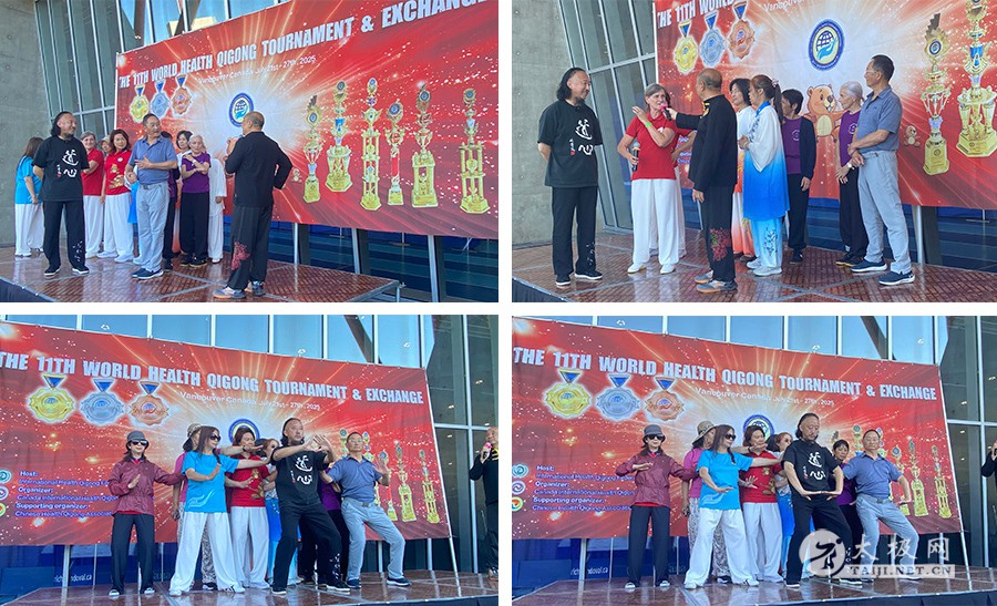 2025年7月21日至27日,由国际健身气功联合会主办,加拿大国际健身气功协会承办,中国健身会功协会支持,第十一届世界健身气功交流比赛大会在加拿大温哥华奥林匹克体育中心成功举行,国家级非遗青城武术传承人刘绥滨作为国际健身气功联合会专家受邀出席。 刘绥滨与梁守渝(國际武道朕盟創会主席,加拿大國家武術隊第一任总教練,加拿大全國武術团体联合总会第一位永遠荣誉主席)、杨柏龙(中国健身气功九段)、张明亮(国际健身气功联合会专家委员会主任) 与厦门大学李仁松教授(左1)、加拿大国际健身气功协会主席刘劲铮(左2)、加拿大领先移民集团总裁严丹红 与加拿大三星太极文化学院院长李蓉、美国太极健身气功协会主席陈思坦、意大利健身气功协会主席徐浩共聚加拿大李蓉武术气功保健中心 在温哥华大会期间的7月24日,是大赛期间唯一向公众免费开放的日子,开放时间集体展示和国际合作挑战赛后,公益分享,邀请中国健身气功九段杨柏龙教授、国际健身气功联合会专家委员会张明亮主任,中国健身气功八段雷斌副教授和刘绥滨四位老师教大家实用的气功小妙招——气功处方。 刘绥滨与钟顺美(右一,阿根廷健身气功协会主席)、韩劲松(右2,澳大利亚太极拳学院院长)、叶志威(右3,英国健身气功协会副主席)、李晖(右5,国际健身气功联合会副主席)、李雪莲(左1,黑龙江省武术协会主席)、陈峰(右2,国际健身气功联合会副主席)、徐浩(右3,意大利健身气功协会主席)、王海矛(英国健身气功联合会主席)等交流 刘绥滨向现场200余名各国选手介绍了世界三大遗产之城中国都江堰青城山,带领大家习练国家级非遗青城武术中独特的肩颈养护妙招 —— 寿龟环肩,大家练下来均说效果明显,一身轻松,刘绥滨向大家阐示了招式背后传递的中国文化,刘绥滨还带大家体验了青城太极内功导引术,更将气氛推向了高潮。 7月26日,大会开幕式拉开帷幕,邀请到中加两国政界、侨界、体坛的众多重要领导与嘉宾莅临现场。加拿大总理卡尼及各级政要向第十一届世界健身气功交流比赛大会发来贺电,来自中国、加拿大、美国、英国、法国等21个国家300多名运动员参加活动。 刘绥滨作为大会贵宾出席,接受大会媒体访问,并集体合影。在加期间,与多国武术、太极、健身气功、政界、侨界、企业界、传媒界知名人士进行了交流。 本站责编/宋丽丹 |