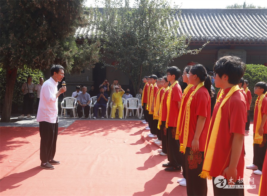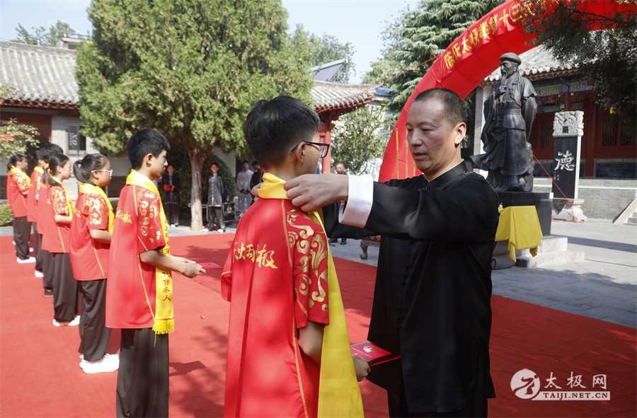 (太极网讯)2025年8月17日,一场意义非凡的收徒传承仪式在太极拳发源地温县陈家沟太极拳祖祠举行,来自河南周口的陈氏太极拳第十三代传人、陈家沟国际太极院扶沟分院院长刘军伟一行70名太极拳爱好者奔赴至此,通过传统拜师仪式,49名大、中、小学生等正式拜师刘军伟,成为陈氏太极拳第十四代传人。 陈氏太极拳国家级代表性传承人、陈家沟国际太极院院长陈炳,太极网总编李超,周口市太极拳协会副会长胡二玲,少林功夫非遗传承人万冬冬,陈家沟国际太极院鄢陵分院院长李建军等嘉宾出席活动,仪式由闫忙种主持。 收徒仪式在庄重肃穆的氛围中拉开帷幕。刘军伟向太极拳始祖陈王廷上香祭拜,告知收徒传承。新弟子们依次上前行礼,向师父递交拜师帖,刘军伟为新弟子回帖并披挂绶带,象征着他们正式成为陈氏太极拳传承人。 刘军伟老师对新弟子们提出了殷切期望。他强调,太极拳不仅是一种武术,更是一种文化传承,蕴含着中华民族的智慧与精神。他要求弟子们牢记“学好拳、教好拳、做好人”的师门训诫,在今后的学习中,要勤奋刻苦,尊师重道,传承良好的武德风尚;要积极传播太极拳文化,让更多人受益于这项人类非遗。 作为刘军伟的恩师,陈氏太极拳国家级代表性传承人陈炳对刘军伟收徒表示热烈祝贺,对众多再传弟子们加入太极传承队伍表示欢迎。他鼓励新弟子们珍惜机会,共享太极,弘扬国粹。 新弟子代表刘芳菲发言,表达了对师父的感激之情以及传承太极的坚定信念。她表示十分受益于七年的练拳经历,即将步入中国人民大学的她,勉励同门在今后的学习中,应以师父为榜样,努力学习太极拳技艺,锻炼身心,并呼吁大家共同携手弘扬太极文化。 收徒仪式后,刘军伟老师带领全体新弟子在祖祠前进行了精彩的太极拳表演。行云流水的动作、刚柔并济的发力,充分展现了陈氏太极拳在各地传承推广的丰硕成果和勃勃生机。此次收徒仪式,为太极拳的传承注入了新的活力和动力。相信在刘军伟老师的悉心教导下,这些新弟子将肩负起传承与弘扬太极拳文化的使命,让太极拳在新时代绽放更加绚丽的光彩。 太极档案:刘军伟,1975年生,河南省周口市扶沟县人,陈氏太极拳国家级代表性传承人陈炳老师入室弟子,陈氏太极拳第十三代传人,国家级社会体育指导员,全国首批国家级武术短兵裁判,陈家沟太极拳协会副会长,周口市太极拳协会副会长,扶沟县太极拳研究会会长,扶沟陈炳太极院院长。2009年创立扶沟陈炳太极院,迄今为止,扶沟陈炳太极院是周口市规模最大的少儿陈氏太极拳和武术短兵培训机构。 责编:小七 |