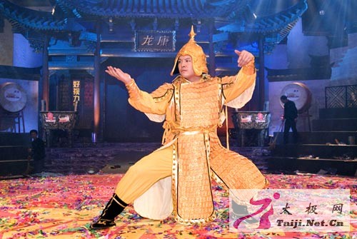 [page] 他创造了两项中国电视吉尼斯纪录 2000年11月,中央电视台体育频道向全国观众播出一期节目,名字叫“中国电视吉尼斯大绝技绝活”。但见一位身穿蓝色唐装的小伙子走上台来,稍作活动,便躺在红色的地毯上,当他连续几次吸气呼气之后,肚子愈胀愈大,他随即将一块亚铃片放在肚子上,缓缓收腹,骤然用力一弹,亚铃片蹦起二尺多高,落在三尺之外。观众无不击节赞叹,全场气氛热烈。不过,表演的仍未结束,放在小伙了肚子上的亚铃片愈加愈重,直到第四块重达1250克,仍然被他默默运气,用丹田内劲弹出三尺多远。 主持人当场宣布:丹田弹物1250克,创造了中国电视吉尼斯纪录。 这个小伙子就是王战军。他的肚皮弹物并不是刻意练出来的。他躺在床上练功,行意导气,周身运转,复归丹田,逐渐感到腹部鼓胀,内中有物,忽然想起前人有丹田弹抖的说法,便顺手拿本书放在肚子上,竟然弹出去了,他玩上了兴趣,弹水杯,弹茶叶筒,渐渐成了习惯,他没觉得这有什么稀奇。他有个朋友叫陈上党,头上顶物可达180公斤,创造了中国电视吉尼斯纪录。在焦作国际太极拳年会期间,两人碰面了,陈上党见他躺在床上玩肚子弹抖烟灰缸,说:“你这是绝活呀,可以上中央电视台。”他将王战军的演示录下来,寄给中央电视台。不久,中央电视台邀请王战军进京献技。 表演成功了。主持人笑着问:“你还有什么绝活呢?“王战军说:“我站个弓步,10个人来推,我双脚移动就算输。”主持人一声招呼,哗啦啦上来10个彪形大汉。观众个个睁大了眼睛,流露出怀疑的神色。但见10个大汉依次排开,后者推着前者的后背,组成一道人墙。主持一声喊:“开始!”10个大汉一齐用力,王战军的双脚却像在地上扎了根一般,纹丝不动。观众席上骚动了,有人说:“这怎么会推不动呢?”话音未落,王战军手没动脚没动身子没动,10个大汉却“扑扑通通”,莫名其妙地倒在台上。 “太棒了!”主持人尖着嗓子叫,“又一个中国电视吉尼斯纪录诞生了;站弓步10人推不动!” 随着内功的增长,王战军丹田弹抖的物件愈来愈重。他两次应邀参加香港武林群英会,两次在香港最热闹的去处――黄大仙庙旁的腾龙墟大笪地中央舞台,表演丹田弹抖。足足五公斤重的大铁饼,他内劲一运,弹飞一米多远,轰动了整个香港。香港《太阳报》两次不惜版面,予以报道,说王战军:“弹功惊人掌声如雷,令在场市民叹为观止。” 2003年,应“新加坡全国国术总会”的邀请,王战军访问新加坡。新加坡大部分是华裔,非常热爱太极拳,听说中国太极拳界的“常胜将军”要来表演,容纳6000人的体育馆爆满!王战军依次向人们展示了陈式太极拳各种套路和器械,又和同伴演练了定步、活步、花脚步等等五种推手。台下时而雅雀无声,时而掌声雷动。当王战军最后表演“丹田弹物”和“站弓步10人推不动”绝技时,观众的情绪达到了高潮,大家齐声喊着王战军的名字,暴风雨般的掌声,一浪高过一浪。人们赞叹:“真正的太极功夫,还是在中国。”
