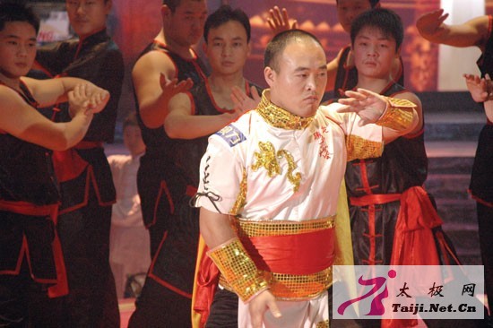 温县入围十六强拳师在武林大会现场合影  总擂主王战军 周擂主陈三虎 周擂主李天金 周擂主樊帅鑫 2008年4月1日晚22点20分,康龙央视武林大会陈式太极拳全国总决赛进入最后的总擂主之争,在亿万观众的瞩目中,囊括此次大会四个周擂主的温县太极拳师王战军、陈三虎、李天金、樊帅鑫开始群龙争霸,最终,陈家沟武术院执行院长、武术总教练王战军一举拿下总擂主之位,不仅在他20多年武术生涯中刻下最为荣耀的一段历史,而且也淋漓尽致地向全世界展示出陈式太极拳独特的技击魅力。 就如央视武林大会主持人宇东在博客中所言:“中央电视台武林大会陈式太极拳总决赛已于近期录制完成了……这应该是武林大会立擂以来,所有拳种门派里面,收视率最高的一个了!!!打得实在是太漂亮了!惊为天人……” 对于陈式太极拳技击的威力,不仅许多像宇东一样的大会参与者感觉为之一震,来自全国各地的太极拳爱好者也感觉份外神奇,这素日公园老年人练的太极拳果真有如此威力。震撼之余,他们开始关注陈家沟,王战军所在的陈家沟武术院网站点击率也直线上升,想到该院学拳的咨询电话更是蜂拥而至,王战军一时成了太极拳乡最引人瞩目的“焦点”。 近日,当笔者采访王战军时,这位捧回总擂主之位的拳师却没有表现出太多的狂喜,谈及此赛的幕后故事,他的脸上总是呈现出如释重负的轻松与惬意。在他看来,能在央视擂台上和众多拳师们一起展示出太极拳的技击魅力,改变大家对陈式太极拳只强身健体、不具备技击攻效的片面看法,就是对自己负重参赛的最大慰藉。 王战军在太极拳界有“常胜将军”之称。在他的太极生涯中,结缘最深的一个词汇便是“蝉联”。从1991年到2001年连续10年蝉联河南省太极拳推手比赛冠军;从1995年到1997年连续三年蝉联全国武术锦标赛太极拳、剑、推手比赛桂冠;在国际太极推手比赛中,他的冠军纪录不止于4届……不仅如此,他在中央电视台表演的“丹田弹物”和“站弓步10人推不动”绝技,创造了两项中国电视吉尼斯记录;2006年6月9日,他在“2006年《武林风》拳王争霸赛”上,一举战胜了日本相扑第一高手曙太郎。 就在他决定“隐退江湖”不再参赛,专心在父亲创办的陈家沟武术院培养太极新人时,2007年秋,由马鞍山市政府、中央电视台体育节目中心等共同主办的武林大会陈式太极拳全国选拔赛开始报名。消息传开,有人鼓励王战军参赛。作为发源地的太极拳师,自己理应为家乡争光,可是,自己年已34岁,几年未参加过比赛……此时,父亲王西安似乎看出了他的心思,语重心长地说:“太极原貌始散手,博大精深奥无穷。这次比赛是我们陈式太极拳散手威力第一次亮相,一定要拼一把,为发源地增光!”在父亲的鼓励下,王战军又说服陈家沟武术院教练李天金、樊帅鑫、宋三星以及自己师兄弟陈三虎,五人以王西安拳法研究会会员的身份报名参赛,最终技压群雄,全部入围十六强。 在马鞍山急训期间,王战军担任小组队长。一心想为拳乡争光的他每天刻苦训练,但因为长期未进行强度体力训练,感觉肌肉异常疼痛,只能靠每天针灸缓解疼痛。一天,训练营里一位外地选手找到王战军,想领教一下太极拳发源地的拳法。因为胳膊疼痛,王战军提出自己抱臂较量。两人刚试手,王战军便感觉对力量强大,将自己推至一步开外,就在这时,他腰一松,用挒劲便把对方摔了一跤。连续几次,对方都趔趄倒地。可几天后,对方似乎仍不解其中滋味,提出再试一试太极拳的擒拿技法。而这一次,王战军只用左侧肩靠,就让对方退出三米开外,直撞墙上,脊梁呈现一片黑紫色,对方这才抱拳连连称:服了!服了! 在央视武林总决赛中,王战军首先与曾在《武林风》打擂的知名拳师朱效振打头场比赛。这次,王战军仍只用了太极拳的擒拿加挒劲,便轻松将朱效振屡次打下擂台。为了迎合导演“动作要漂亮”的安排,王战军便临时加了个震脚的动作,这一震不要紧,竟把擂台震了个窟窿,让负责修理擂台的师傅大惊:“这擂台上全国各地多少高手较量,还从来没有出现这种情况,陈家沟的拳师太厉害了!” 后来,王战军又连胜山东拳师闫西牛,并将复活赛中前来挑战的湖北拳师刘跃辉轻松打下擂台。整个赛事中,为了保护运动员,王战军几乎没打过瘾就被裁判判为优势获胜,最终与陈三虎、李天金、樊帅鑫分获周擂主。 陈家沟拳师竟然囊括四个周擂主,自然轰动拳界。而四个周擂主群雄较量,到底谁能拿下总擂主,则成为此次武林大会最大的看点,尤其当陈三虎战胜李天金与樊帅鑫,将与王战军争冠时,这最后的擂主之争更是万众瞩目。 为了怕两个师兄弟互相谦让,栏目组还暗地里给两人做思想工作,希望他们发挥出真正实力,也在亿万观众面前亮出太极拳散手最本真的面目。等两个平日里情同手足的师兄弟真正站在擂台上时,前几局与其他选手轻松较量的陈三虎显然憋足了劲,而王战军面对强手更是步步谨慎。但在前一场比赛中手指受伤的陈三虎最终逊色师兄一筹,让王战军夺走总擂主。至此,靠着不屈不挠的拼劲,靠着拳师肩负的责任,王战军和陈三虎、李天金、樊帅鑫终于不负重望,拿下四个周擂主、一个总擂主的最好成绩。 回首武林大会,王战军欣慰之余也陡添责任。太极拳最初尤其注重太极散手,多用它技击防身,进行实战,从古至今,名家代出,但由于当今人们更注重太极拳的健身功