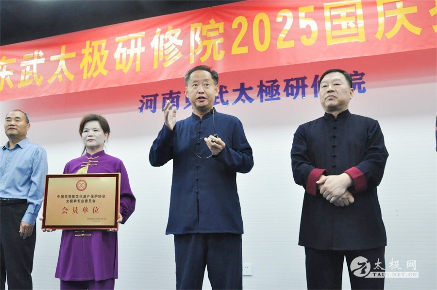 10月2日,在国庆与中秋双节同庆的美好时节,东武太极研修院第二十四届陈式太极拳高级培训班开班典礼举行。中国非物质文化遗产保护协会副会长、太极拳专业委员会主任姜继鼎,中国非遗保护协会太极拳专委会副主任崔玉山、副秘书长王彤宇,张东武老师,徐勤兰老师,东武太极研修院办公室主任张晓力等领导、嘉宾及教练出席典礼,与来自全国各地的太极拳学员齐聚一堂,共同开启这场非遗文化研修之旅。 典礼伊始,主持人张宇欣向全场介绍出席活动的领导、嘉宾与教练团队。除核心嘉宾外,东武太极研修院建德培训基地主任邓林林,老架一路提高班主教练李卫波,56 式提高班主教练张宇浩,推手班教练王超峰、张雷、王雨等一众资深教练也悉数到场 —— 他们均为张东武老师弟子,兼具深厚武学功底与丰富教学经验,将为本次高级培训班提供专业指导。全场以热烈掌声,向远道而来的学员与深耕太极传承的嘉宾、教练致以诚挚欢迎。 作为本次培训班总教练、东武太极研修院院长,张东武老师在欢迎词中首先向支持太极传承的各级领导、嘉宾及学员表达欢迎与感谢。他指出,中国非遗保护协会太极拳专委会是当前官方主导太极拳发展的最高专业机构,在姜继鼎主任的带领下,始终为太极拳非遗传承注入强劲动力;2020 年 12 月 17 日太极拳正式列入世界非物质文化遗产名录,更标志着这项中华传统技艺迈入 “全球共享” 的新征程。他表示,本次高级培训班将聚焦陈式太极拳核心技艺,从老架一路、56 式到太极剑、推手,通过 “名师带教、精准指导” 帮助学员突破技术瓶颈,同时希望学员们在研修中体悟太极 “以柔克刚、内外兼修” 的文化内涵,成为非遗传承的 “践行者” 与 “传播者”。 中国非遗保护协会副会长、太极拳专委会主任姜继鼎在发言中,对东武太极研修院的传承成果给予高度肯定。他指出,太极拳专委会正全力推动太极文化保护与传承,而东武太极研修院无疑是其中的 “中坚力量”—— 从 “太极之家” 的家风传承,到全国化、国际化的布局拓展,再到专业细致的教学体系,均展现出研修院对非遗传承的热忱与担当,“‘会员单位’的授予,东武太极研修院实至名归”。 同时,姜继鼎主任也对研修院提出期望:“这既是荣誉,更是责任与使命。” 他强调,未来东武太极需在 “年轻化、时尚化、数字化、国际化” 四大方向持续发力 —— 通过年轻化培养吸引更多青年群体,以时尚化表达贴近现代生活,用数字化手段扩大传播半径,借国际化平台讲好太极故事,真正成为 “太极拳非遗保护传承的主力军”。此外,他还鼓励在场学员珍惜研修机会,在提升技艺的同时修身养性、提升素养,以自身行动为太极文化 “争光添彩”。 典礼现场举行了庄重的 “会员单位” 授牌仪式。姜继鼎主任代表中国非物质文化遗产保护协会太极拳专委会,向东武太极研修院正式颁发 “会员单位” 牌匾,张东武老师、徐勤兰老师共同接牌。这块牌匾不仅是对东武太极过往传承工作的认可,更标志着双方将在太极文化保护、技艺推广、人才培养等领域展开更深层次合作,为非遗传承注入更多资源与动能。全场掌声雷动,共同见证这一意义非凡的时刻。 授牌仪式后,全体人员奏唱《中华人民共和国国歌》,在激昂的旋律中抒发家国情怀;随后,领导、嘉宾、教练与全体学员共同拍摄集体合影,定格下这份 “因太极相聚、为传承同行” 的珍贵记忆。 典礼结束后,张东武老师随即开启本次高级培训班的首堂课程,围绕 “陈式太极拳习练要点” 展开细致讲解,从身法、步法到呼吸配合,以深入浅出的方式帮助学员夯实基础、领悟精髓,正式拉开为期数日的研修序幕。 据悉,本次东武太极研修院第二十四届陈式太极拳高级培训班,将通过 “理论 + 实践”“基础 + 进阶” 的教学模式,助力学员系统提升太极技艺;同时,研修院也将以此次开班为契机,持续深化非遗传承实践,让太极拳这一 “世界非遗” 在新时代焕发出更耀眼的文化光芒。 |