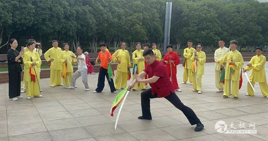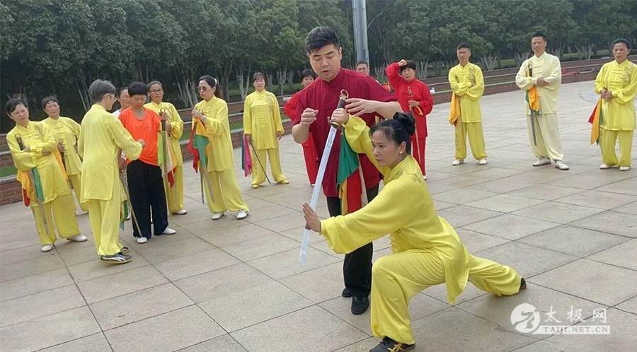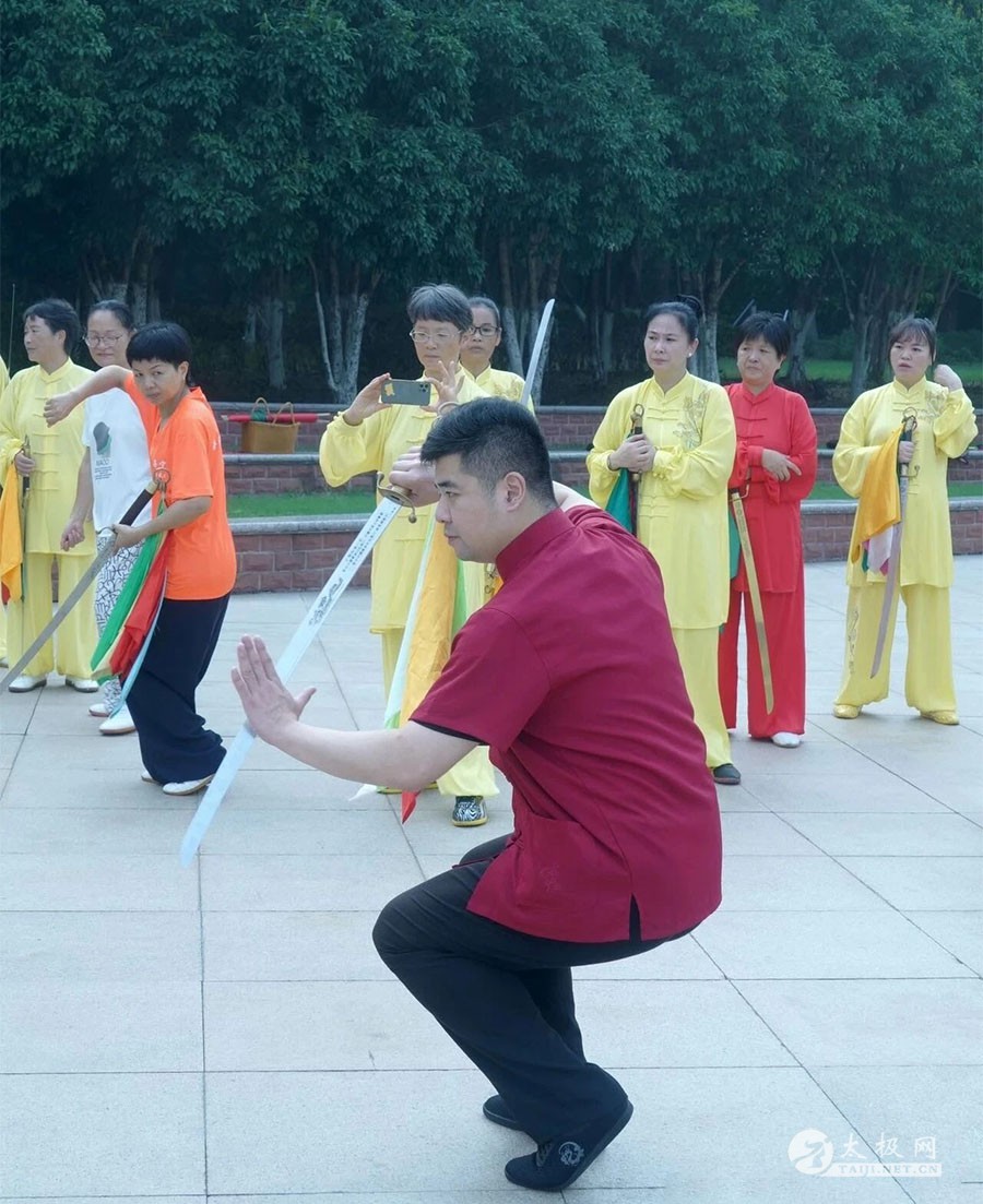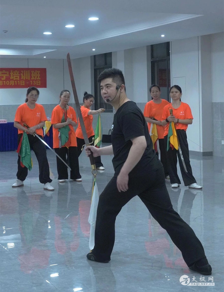 巡刀过程中,丁老师穿梭在学员之间,针对行刀细节及时点拨,其一举一动间,都传递出对学员学好太极刀的殷切期望。