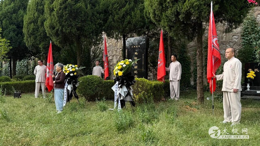 随后,队伍移至马虹恩师纪念碑前,杨合发先生诵读亲笔祭文:“当谨遵先生教诲,勤练拳艺,坚守武德,将陈氏太极之薪火代代相传,不负先生毕生心血,不负先生殷切嘱托”。语至动情处,全场低头致敬。郭彦芬女士寄语年轻一代“以拳载道,以德育人”,铿锵之声回荡碑前。 祭礼毕,弟子们在广场列阵,集体展演陈氏太极拳。松沉弹抖,开合有致,白衣翻飞如浪,拳风掠过松柏,仿佛向先师汇报最新答卷。 “每一次祭拜都是一次启程”。虹发太极将把今日肃穆化作明日动力,继续深耕公益教学、社区推广与国际交流,让马虹精神随拳势传遍五洲。 祝马虹先生拳魂长驻,愿将今日拳声,化明日传承,永护太极星火。